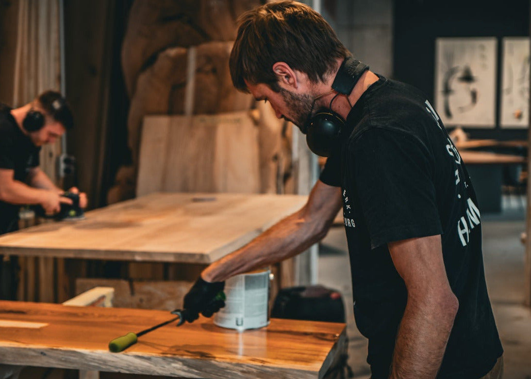 In unserer Manufaktur in Hamburg fertigen unsere erfahrenen Tischler deinen Tisch mit höchster Präzision und Liebe zum Detail.
