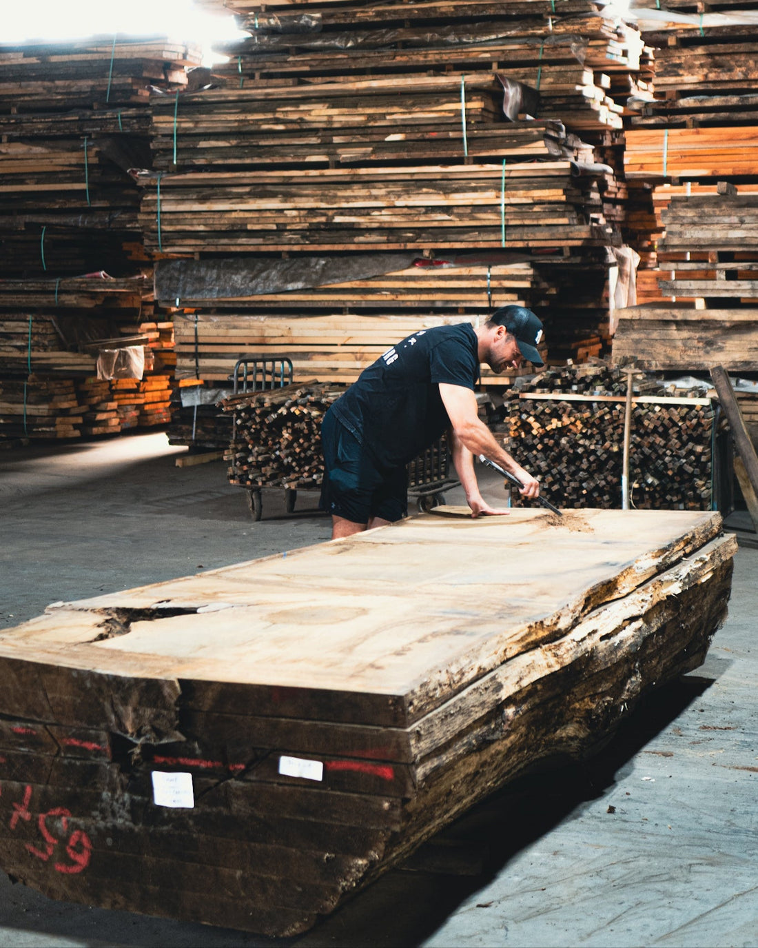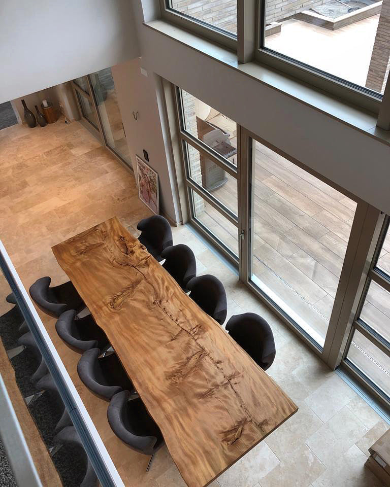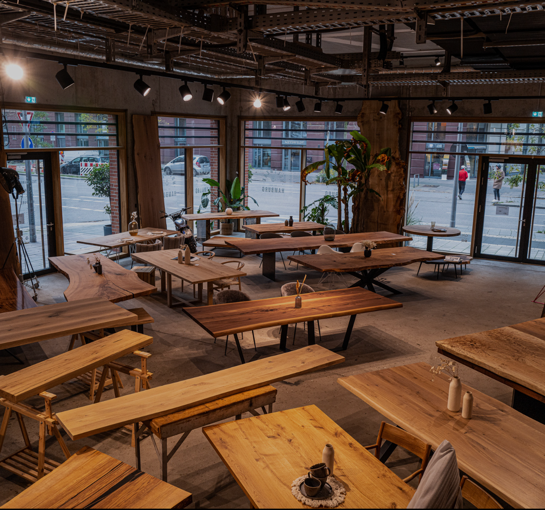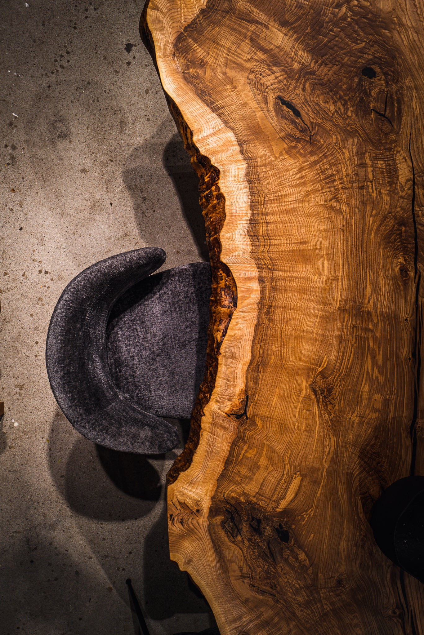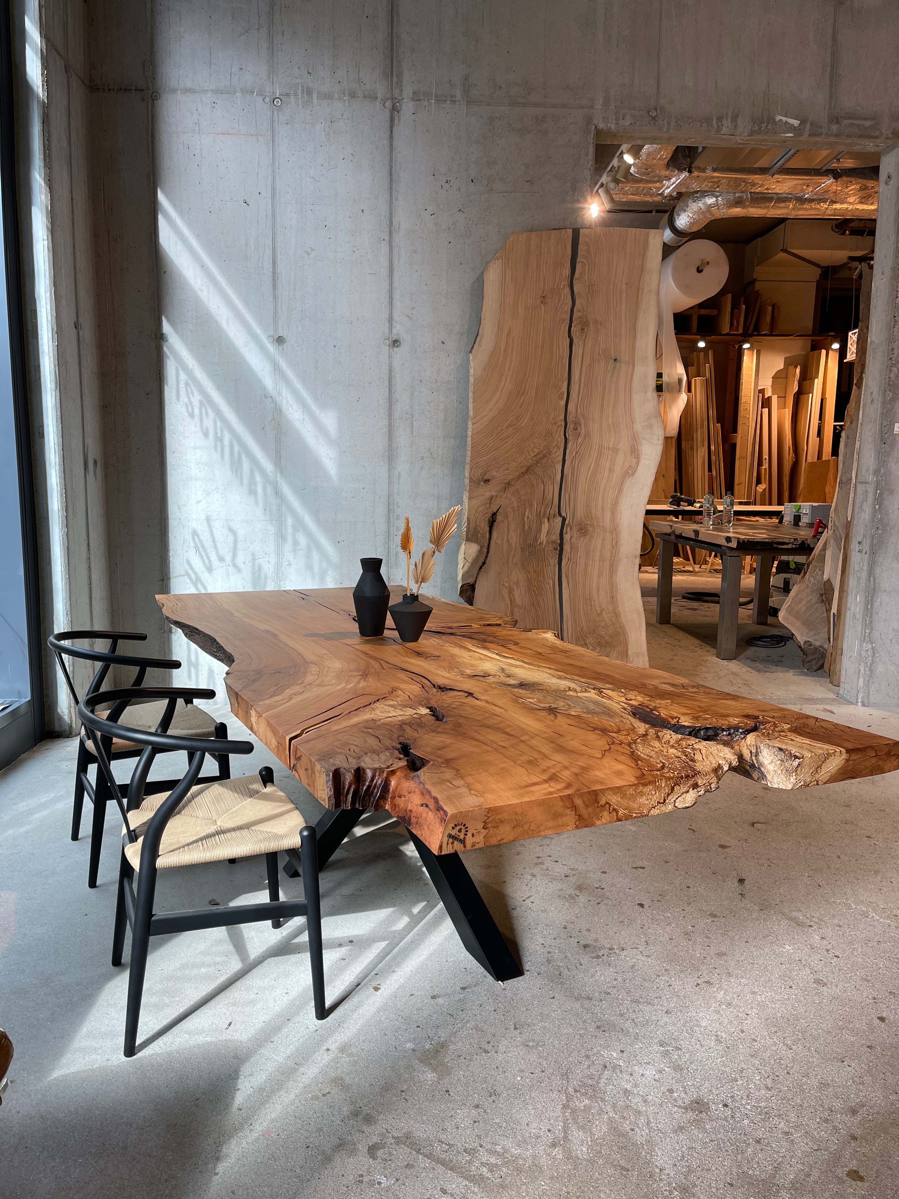 Alle Tische sind aus einem Stück gefertigt, ohne Leim, mit durchgehender Maserung – natürlich, kraftvoll, einzigartig.