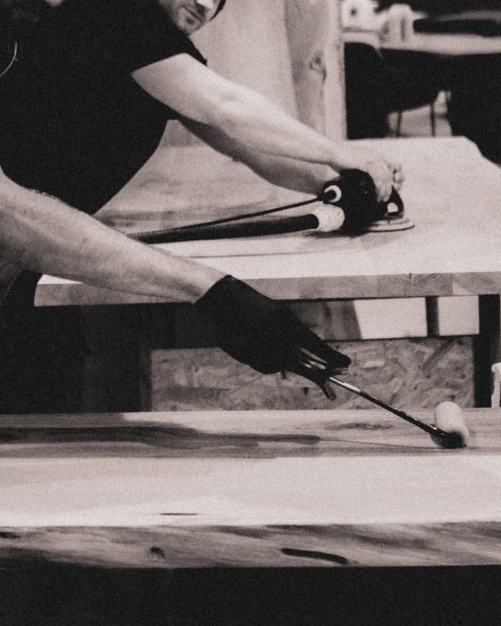Dein Rohling wird zum Möbelstück. Wir kürzen, fräsen, schleifen und veredeln – sorgfältig von Hand, mit dem Fokus auf Haptik und Harmonie.