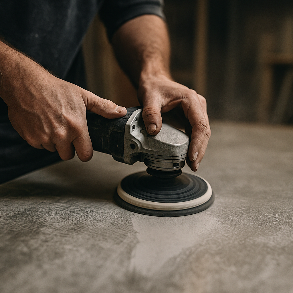 Ob samtig-matt oder leicht strukturiert – nach dem Aushärten wird jede Oberfläche geschliffen, bearbeitet und auf Wunsch versiegelt.