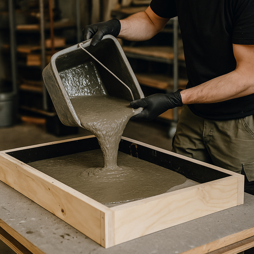 gegossen, geschliffen und versiegelt – individuell angepasst auf Plattengröße, Höhe und Proportionen.