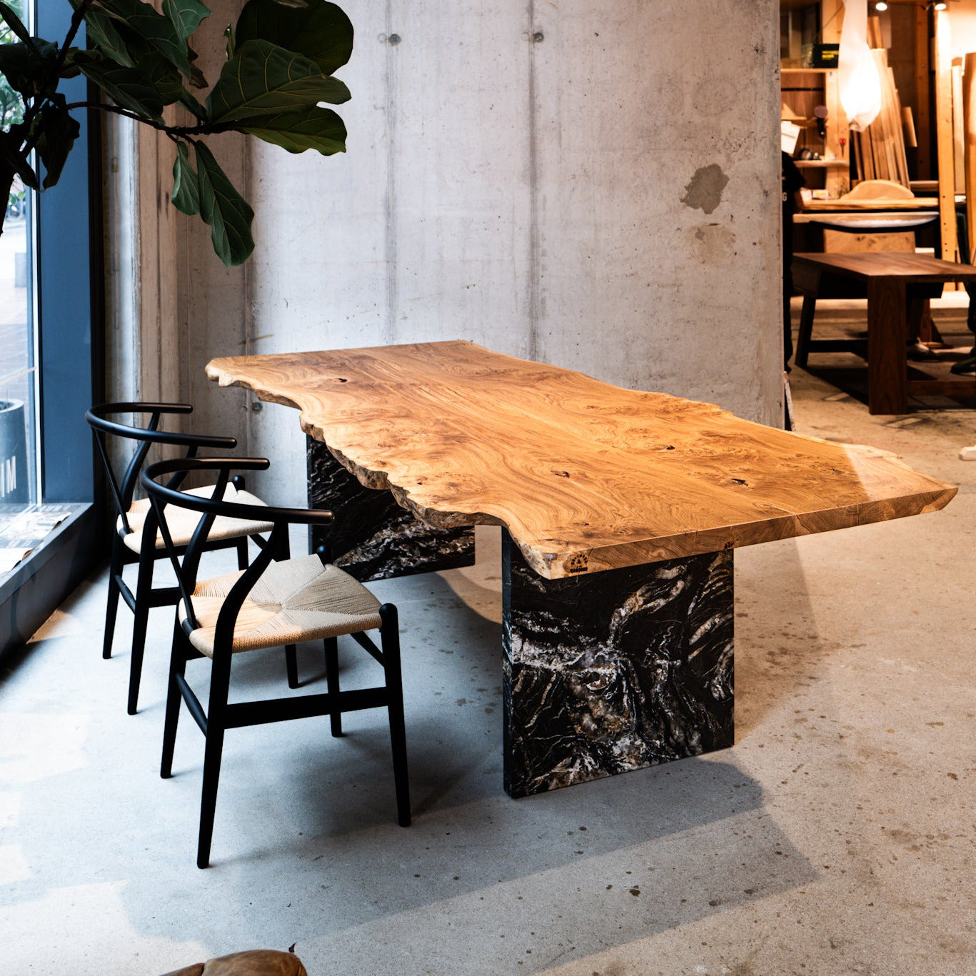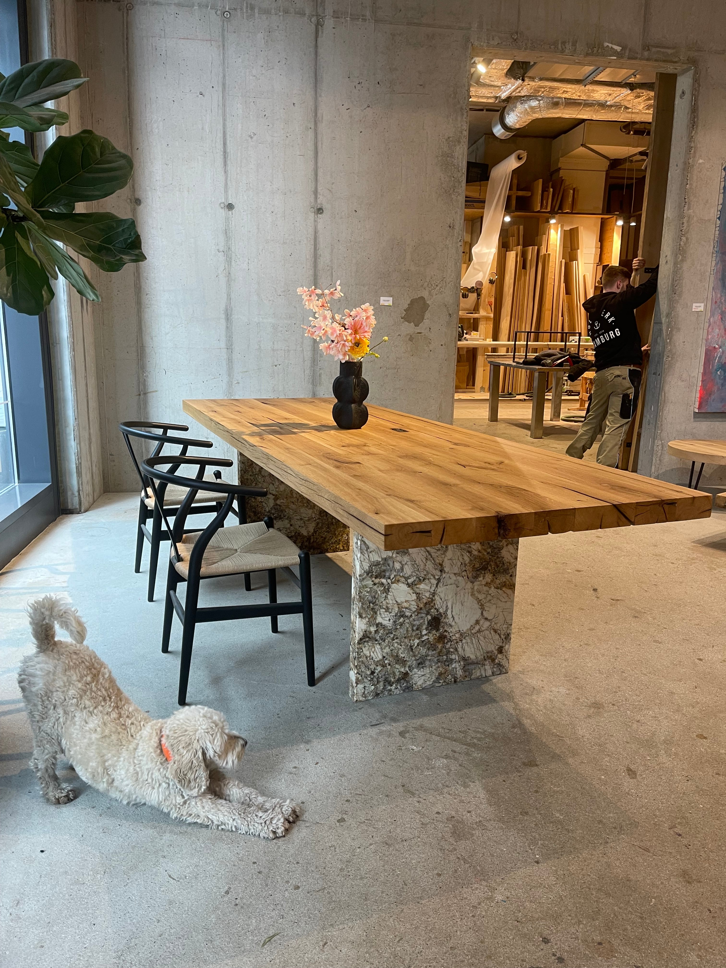 Esstisch Unikat Mamor und Holz | Massivholztisch mit Tischgestell aus Mamor