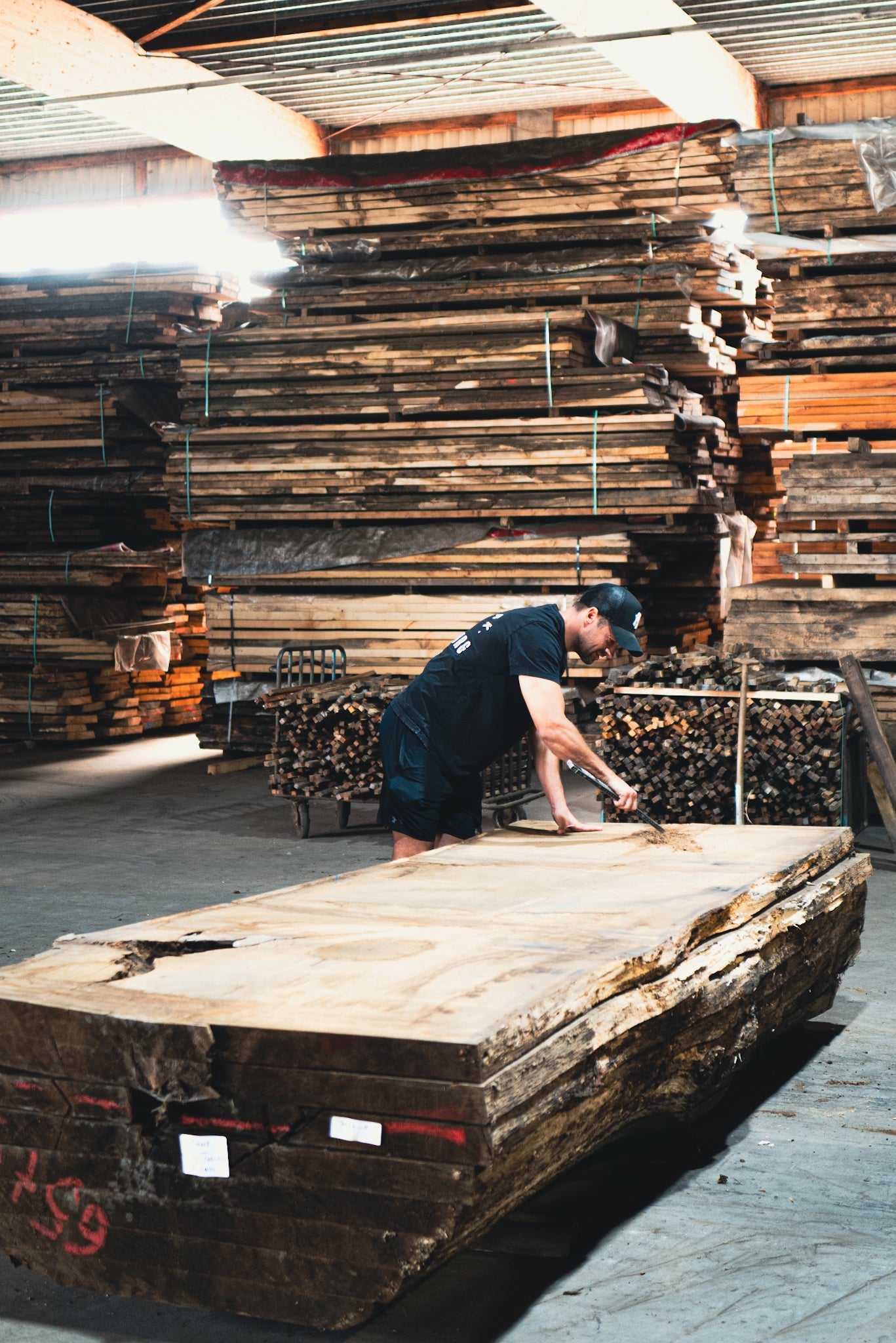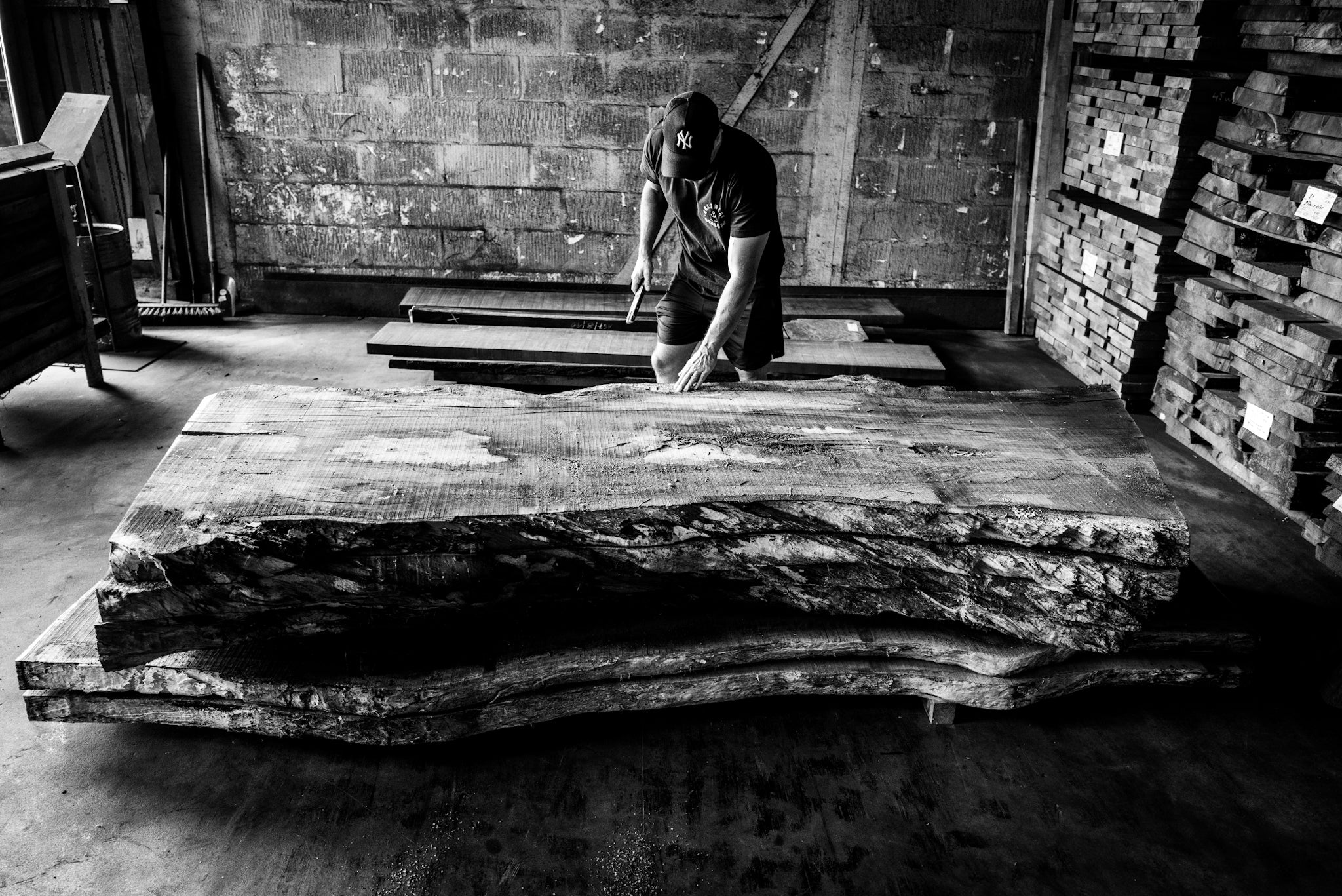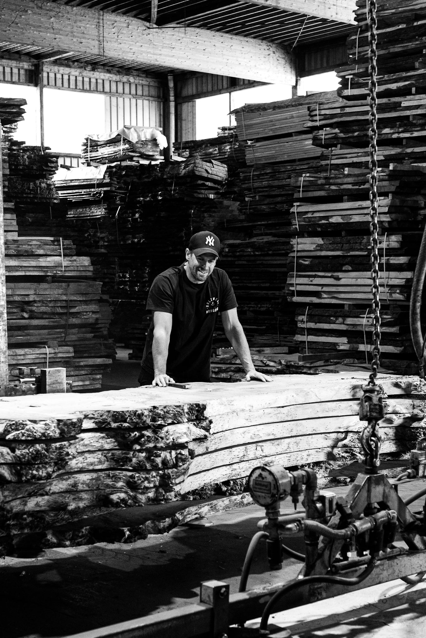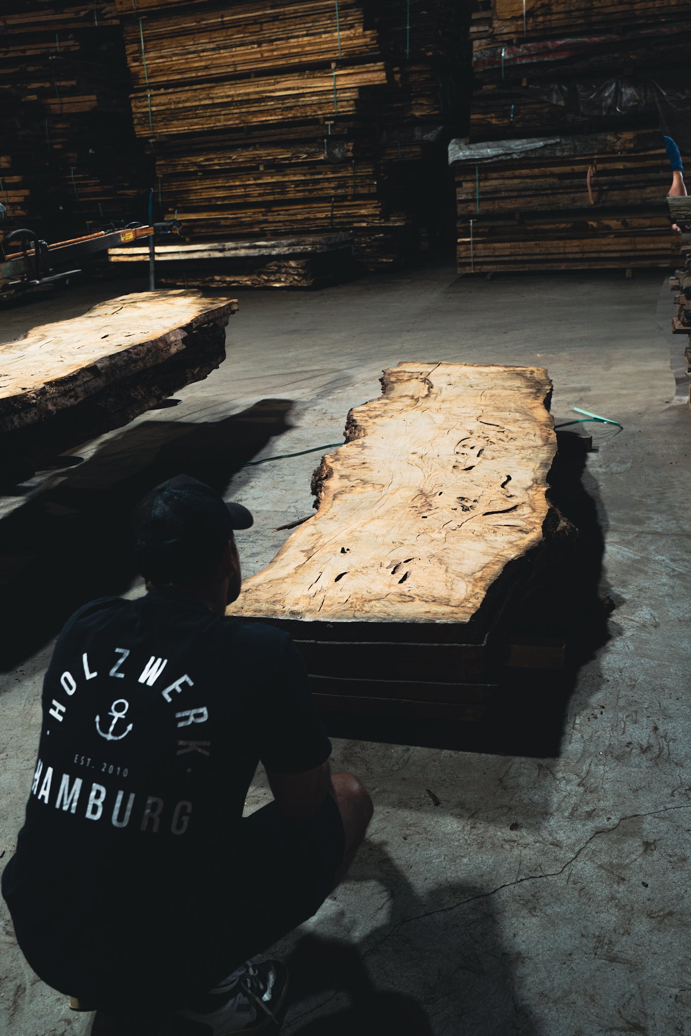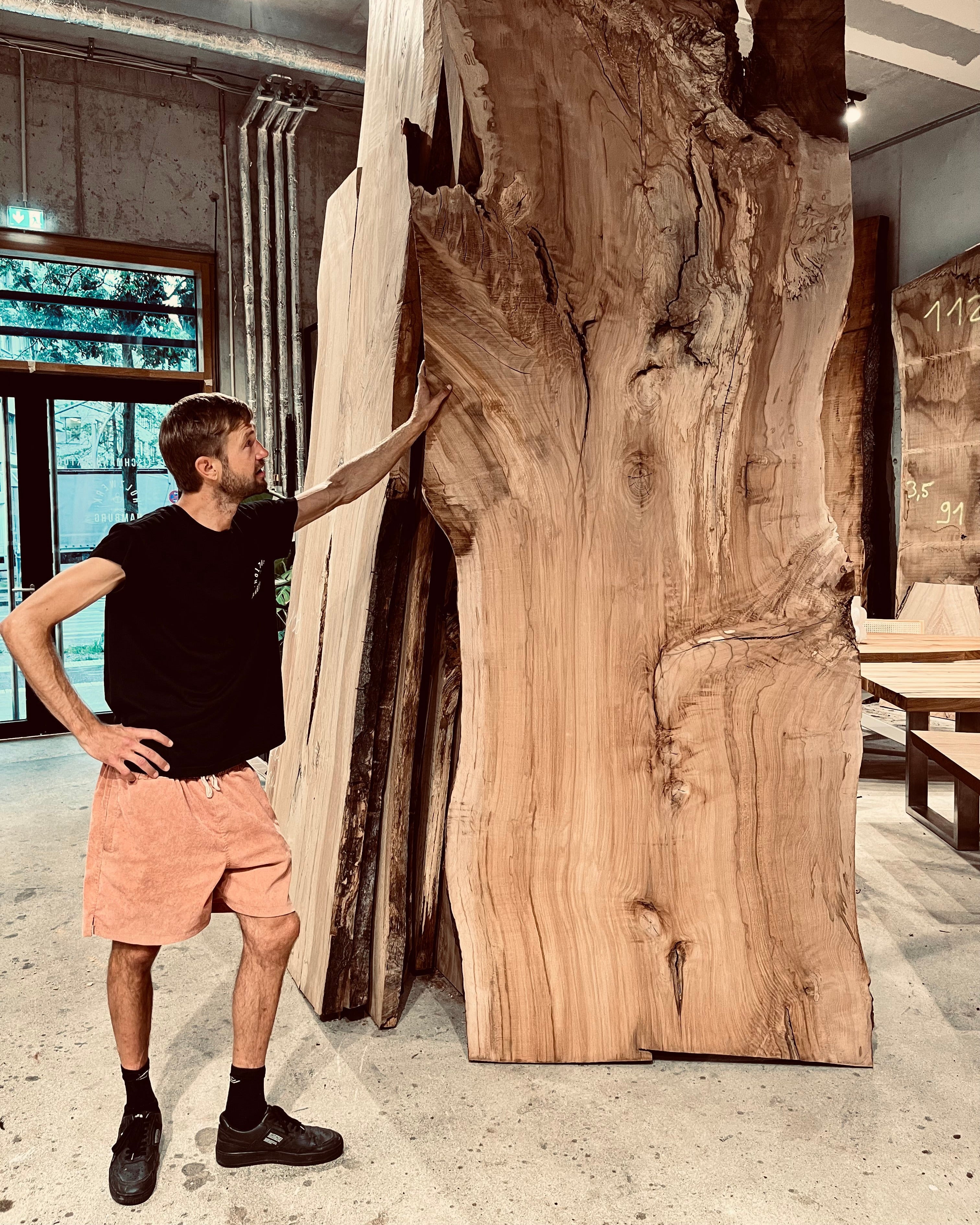 Wir arbeiten mit echtem Holz. Keine Imitate, kein Kompromiss. Bei uns findest du massive Bohlen, gewaltige Stämme und lebendige Maserungen.
