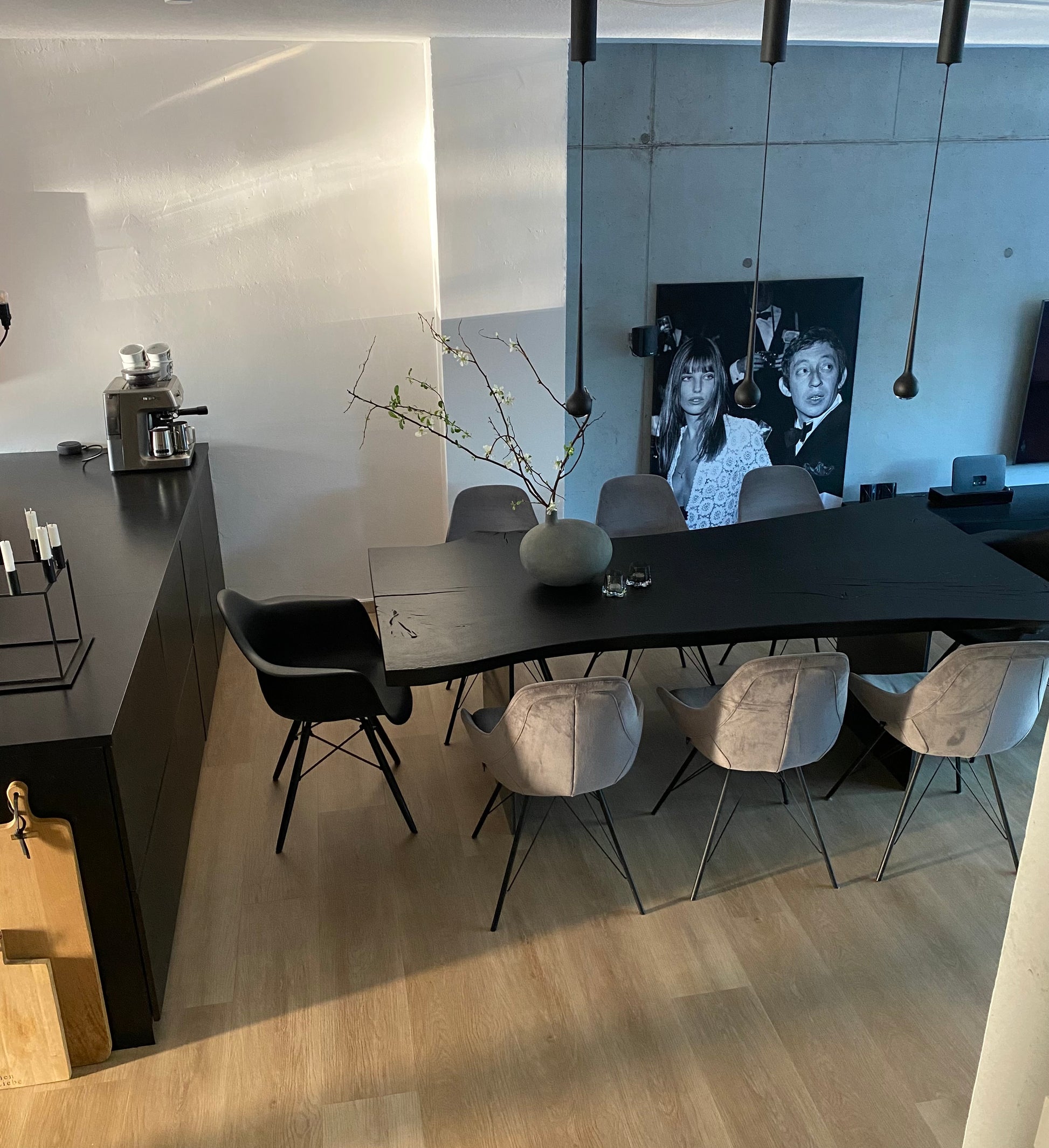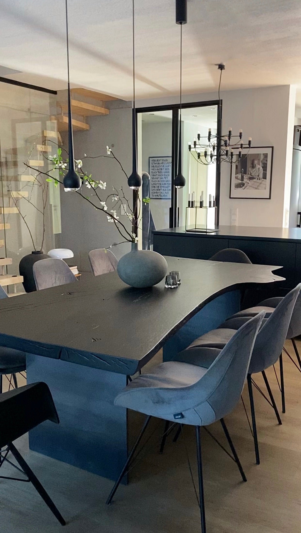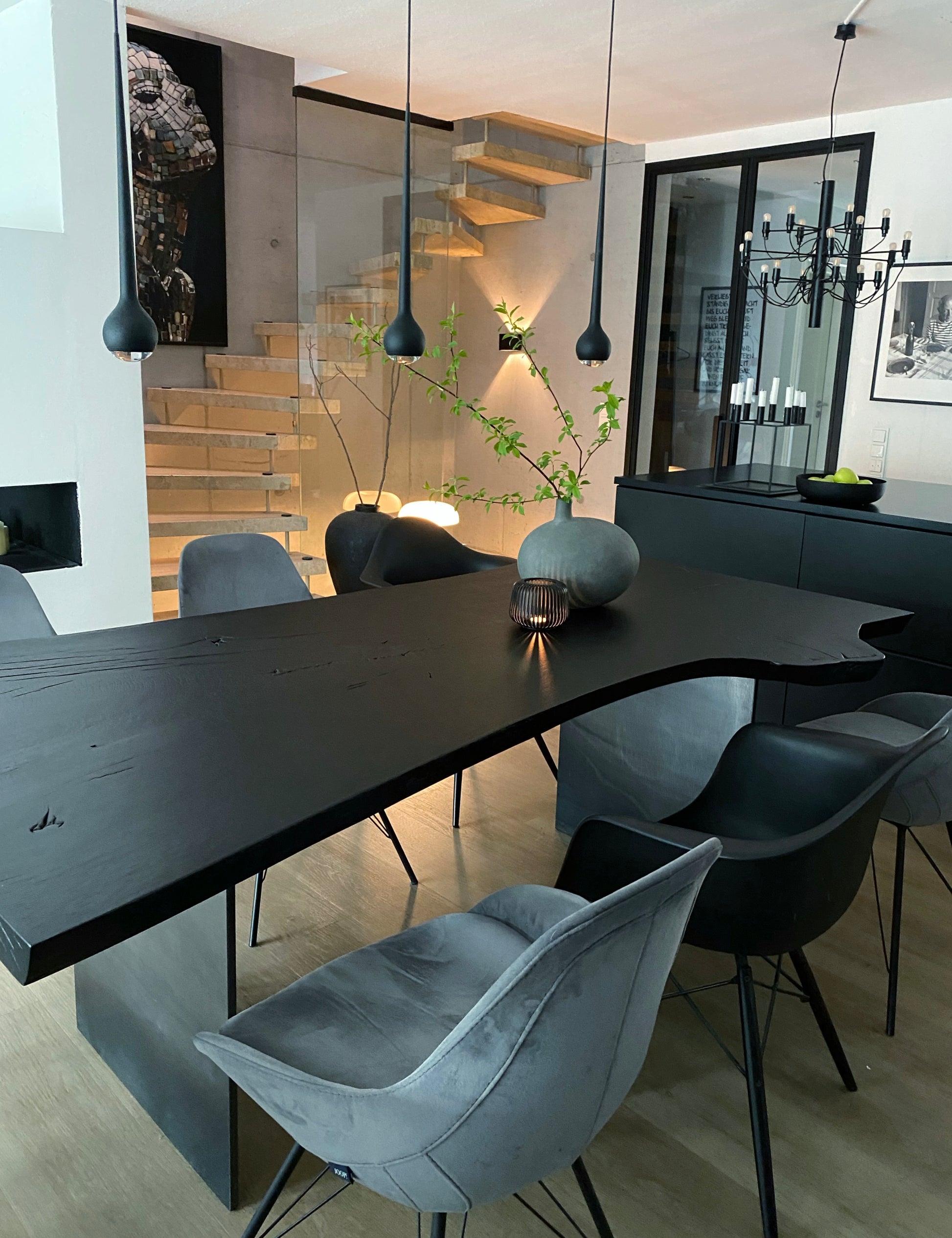 Erleben Sie den perfekten Blickfang für Ihr Esszimmer – unseren schwarzen Esstisch mit Baumkante aus einem Stück Massivholz. Jeder Tisch wird individuell nach Maß gefertigt und bietet somit nicht nur eine einzigartige Ästhetik, sondern auch optimale Funktionalität für Ihre Bedürfnisse. Unsere Monolith Tische zeichnen sich durch Stammbohlen aus einem Stück mit beeindruckenden Baumkanten aus, die jedem Modell einen besonderen Charakter verleihen.