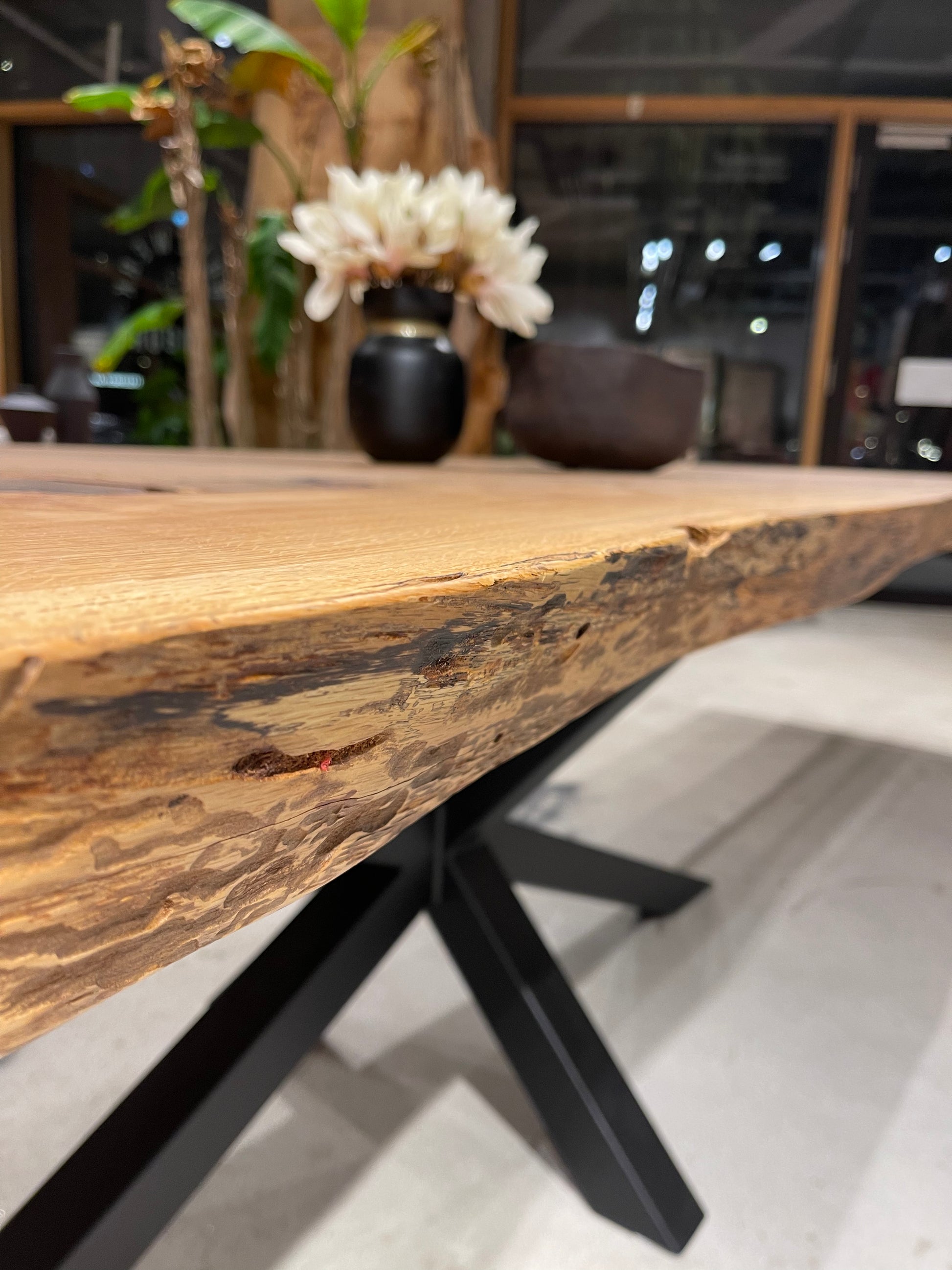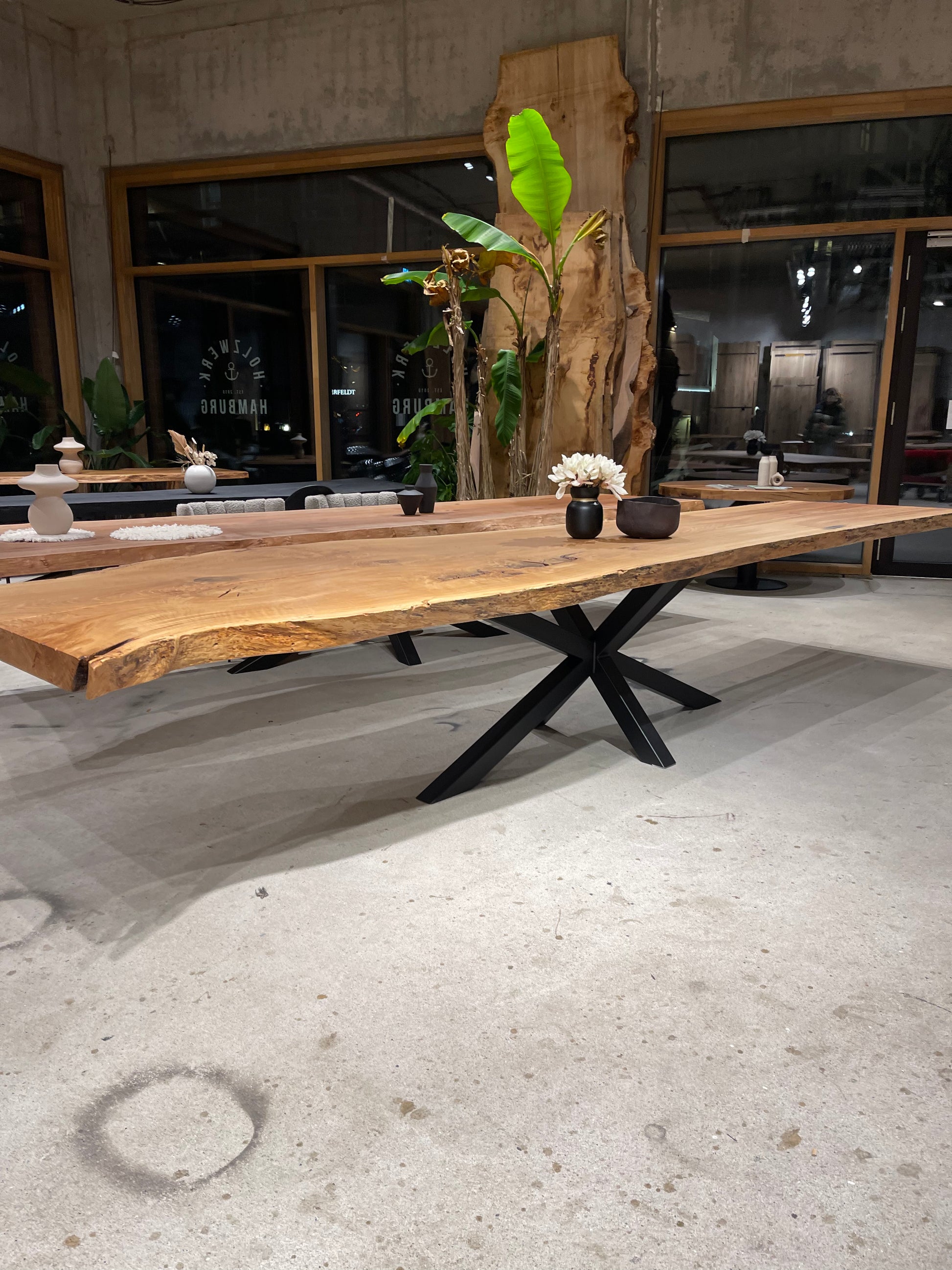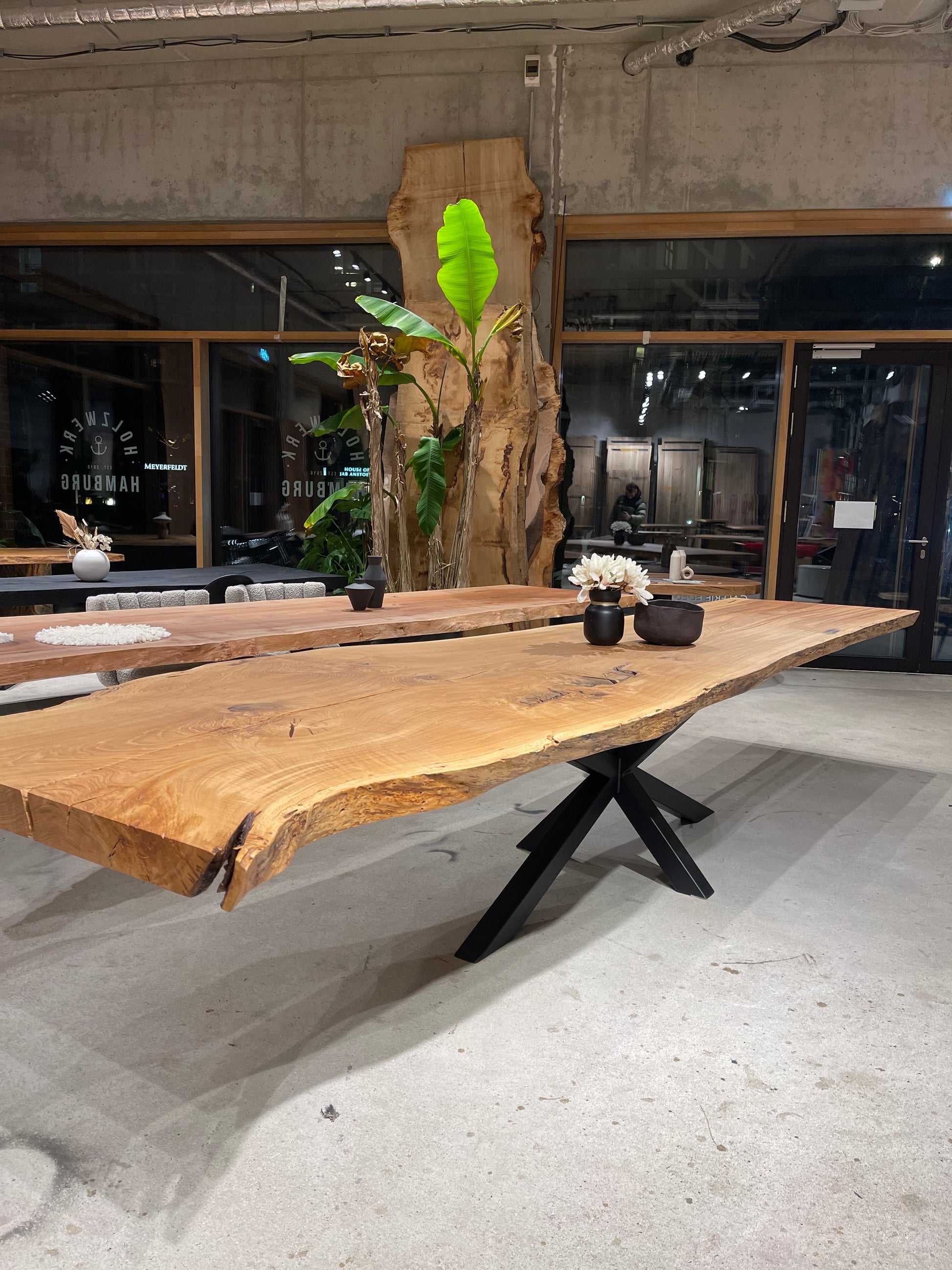 Dieser Tisch ist vorrätig und sofort lieferbar bei uns in der Ausstellung. Ein Massivholztisch, der durch seine Einzigartigkeit und Verarbeitung garantiert alle Blicke auf sich zieht und jedem Raum einen natürlichen Akzent verleiht.