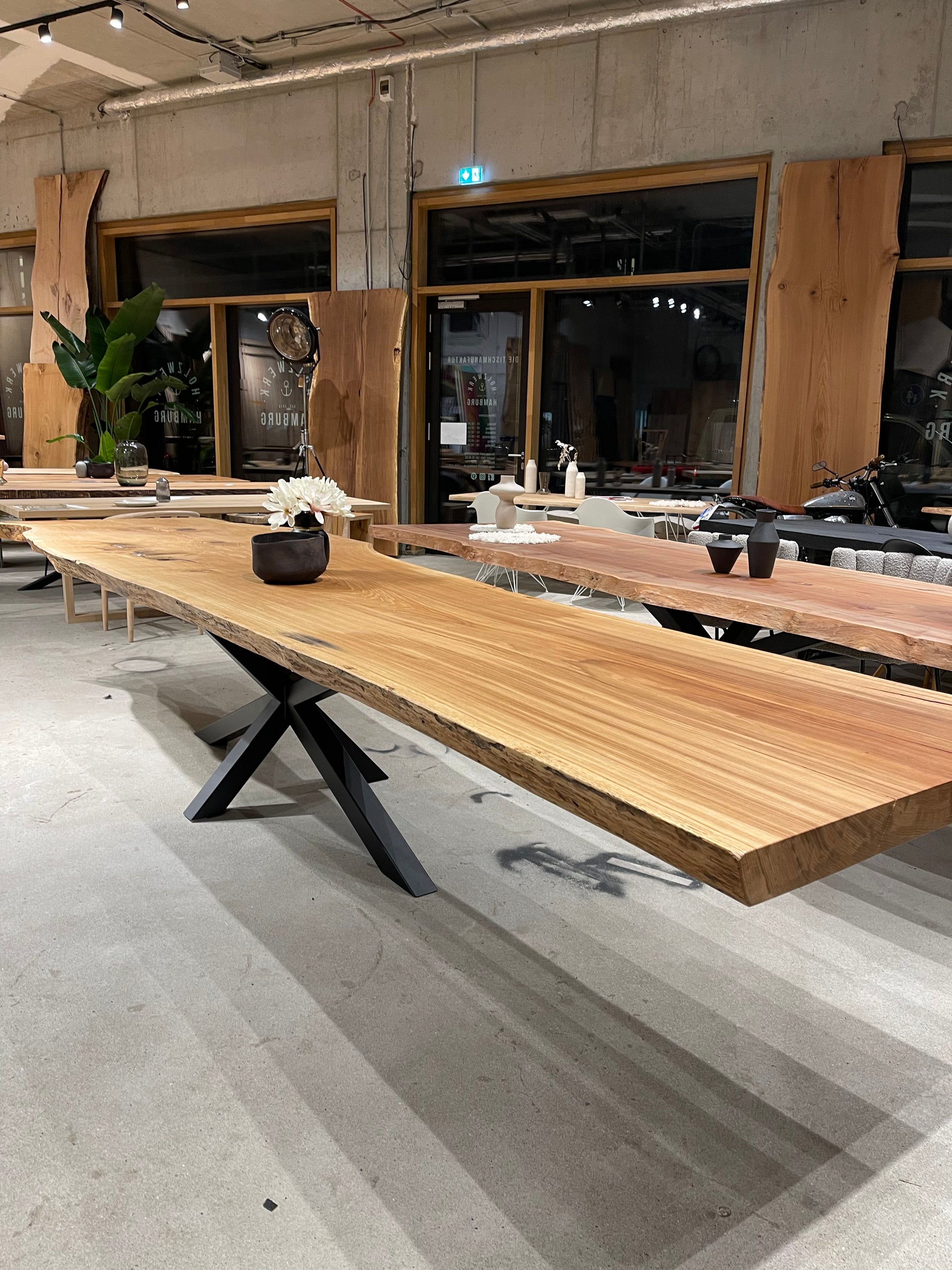 In unserer Ausstellung findest du über 50 sofort verfügbare Massivholztische sowie mehr als 200 Tischplatten zur Auswahl.