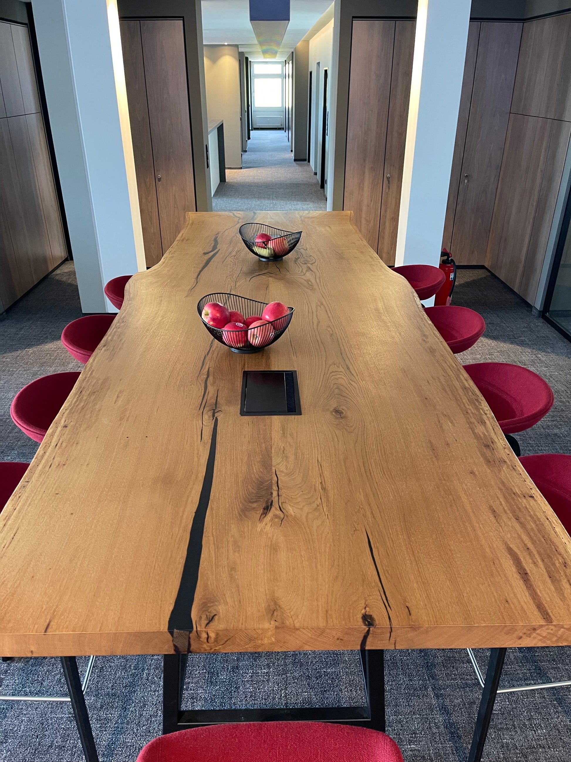 Unser Holz beziehen wir aus nachhaltiger Forstwirtschaft in Europa. Jede Tischplatte stammt aus einer massiven Stammbohle, wodurch jedes Stück ein Unikat mit eigener Geschichte ist.