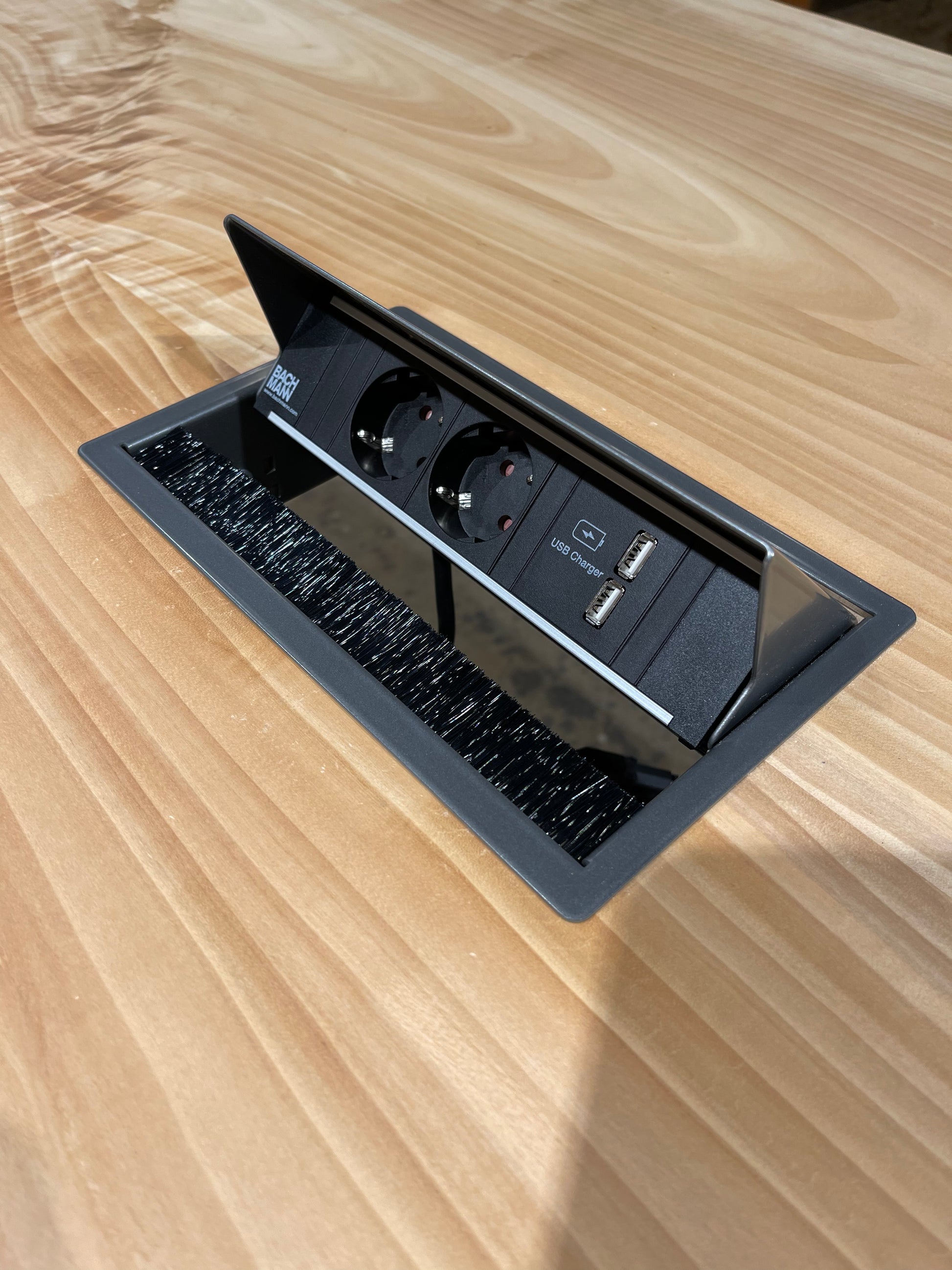 Für eine optimale technische Ausstattung verfügt der Tisch über integrierte Mediamodule und Tischanschlussfelder, die eine perfekte Kommunikation ohne störenden Kabelsalat ermöglichen. Individuelle Anpassungen sind jederzeit möglich. (Die Module sind nicht im Preis inbegriffen.)