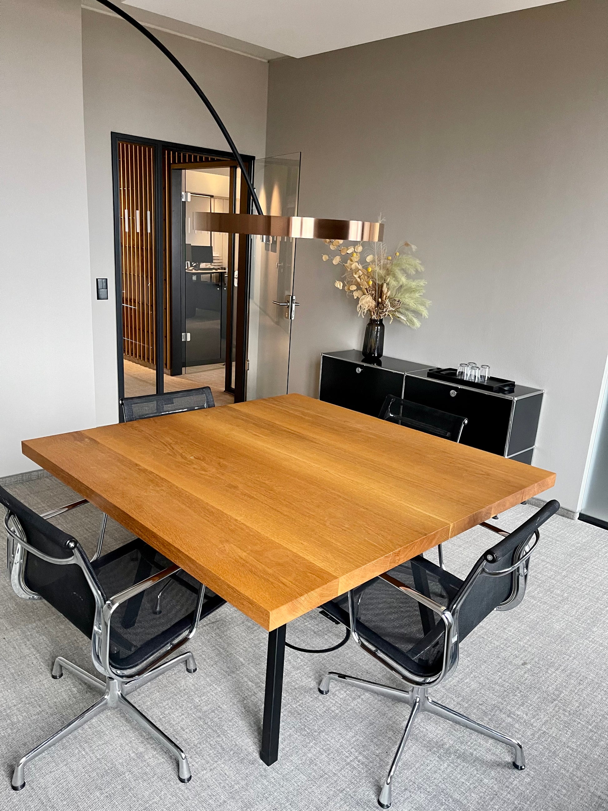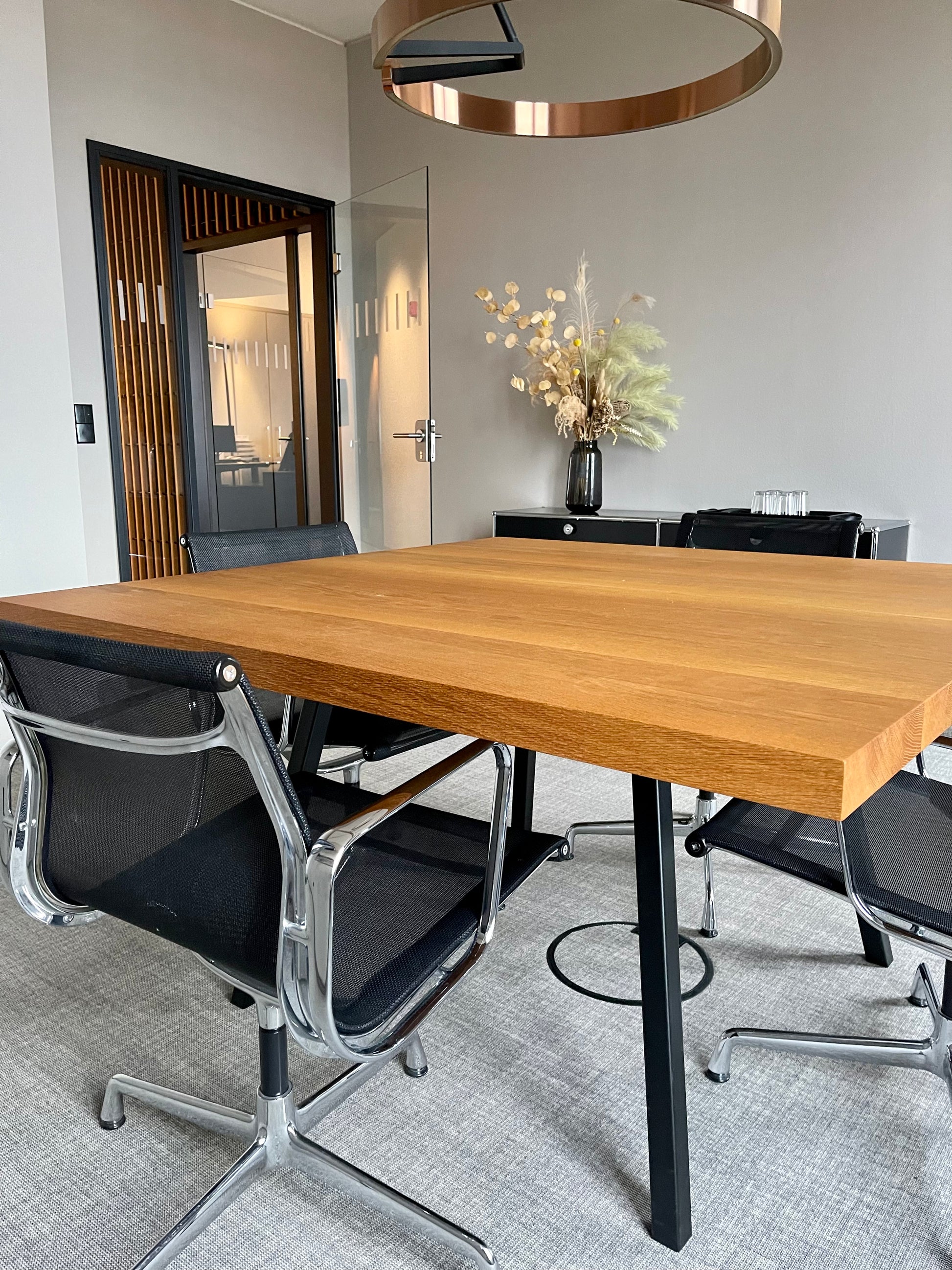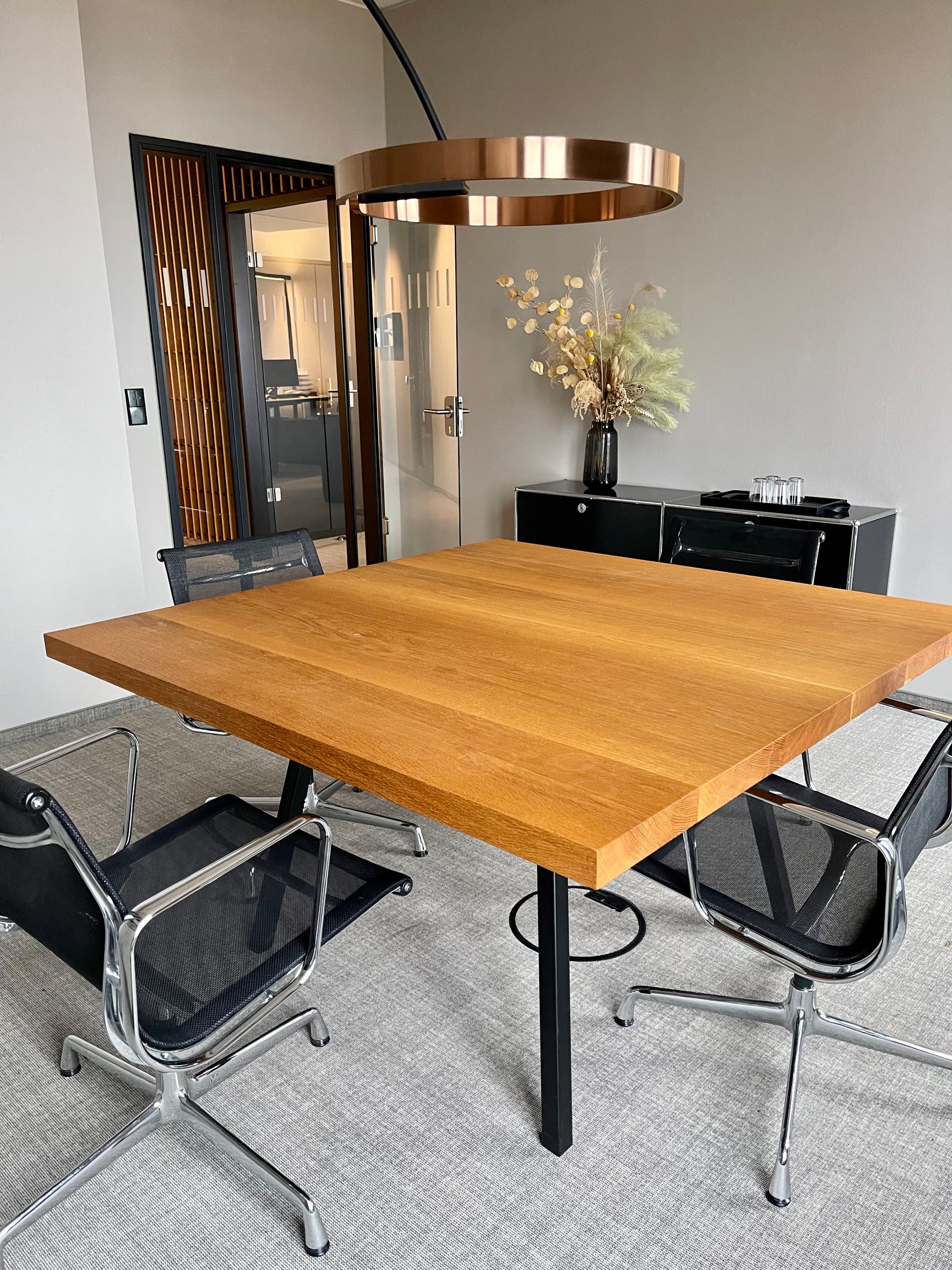 Quadratischer Schreibtisch | Konferenztisch aus massivem Eichenholz – maßgefertigt nach Wunsch