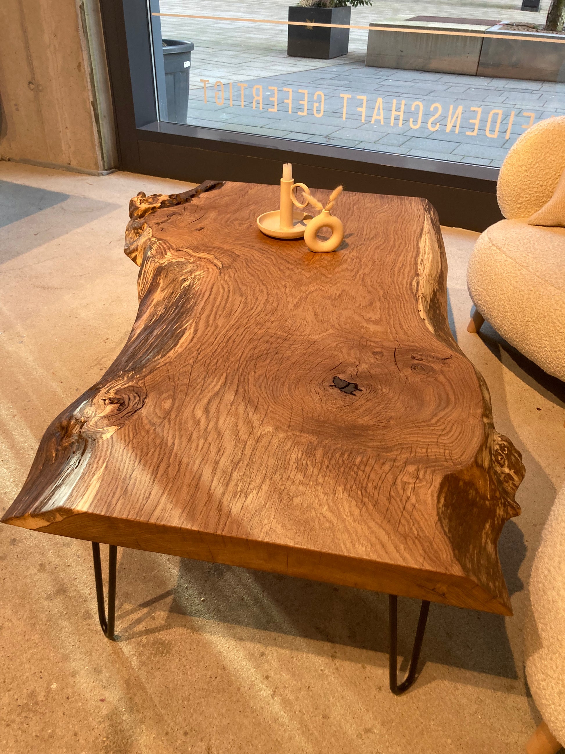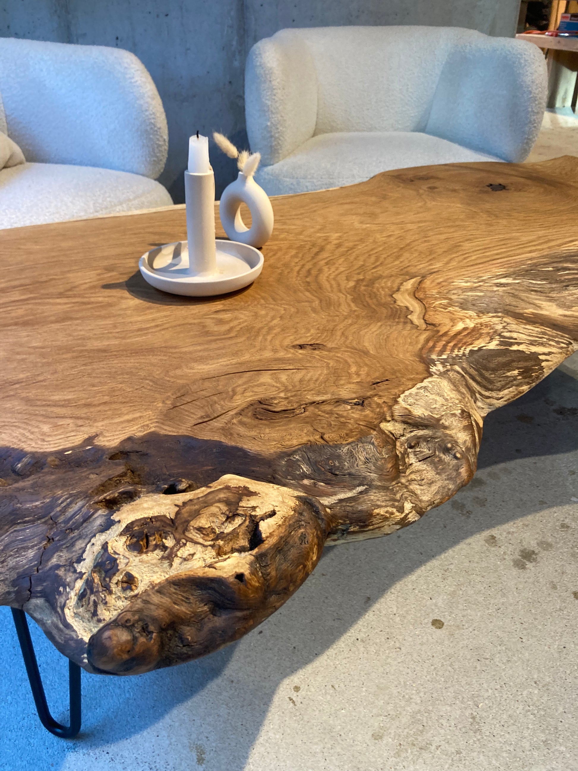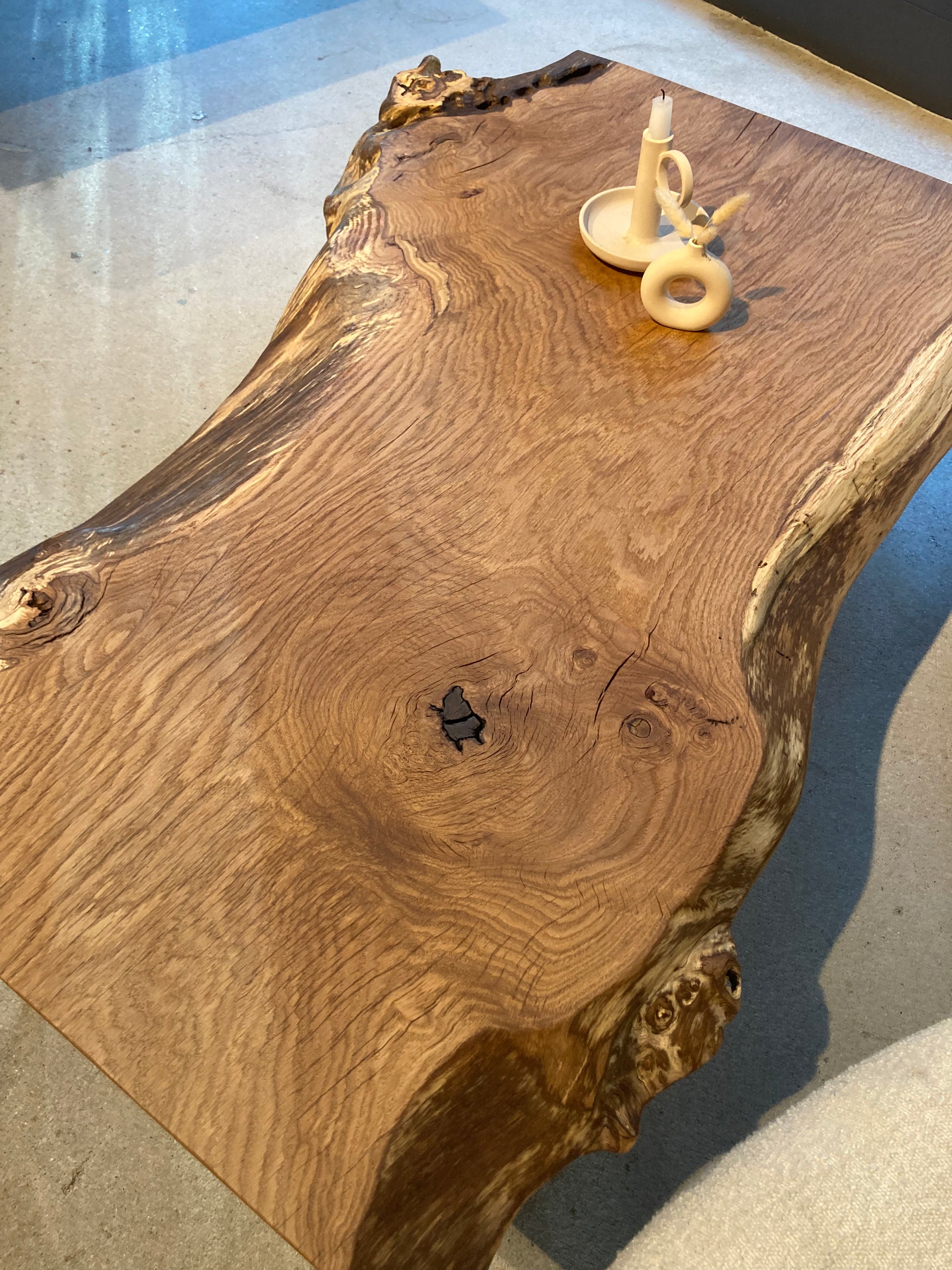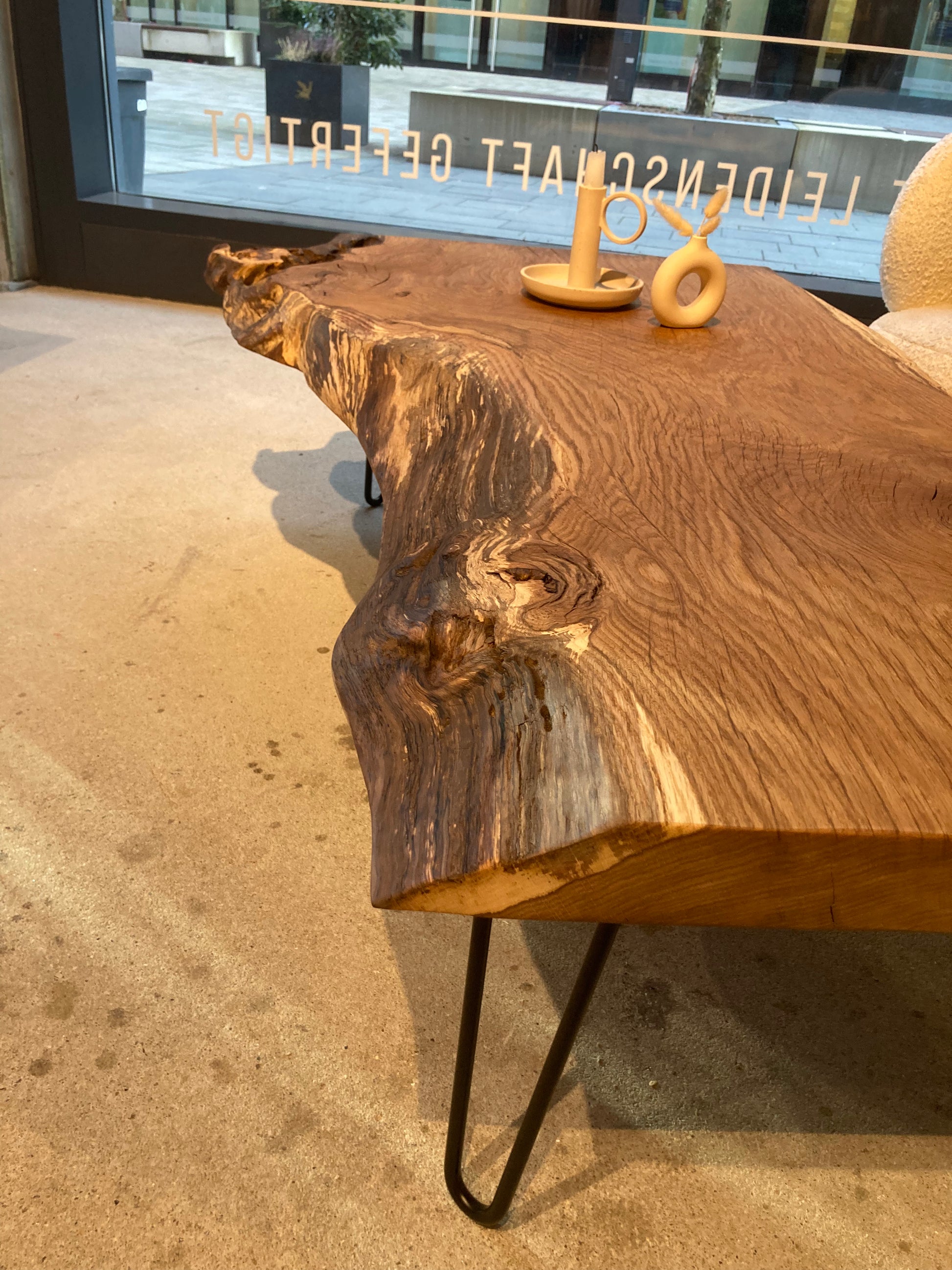 Couchtisch aus Eiche – einzigartige Baumscheibe mit Naturkante