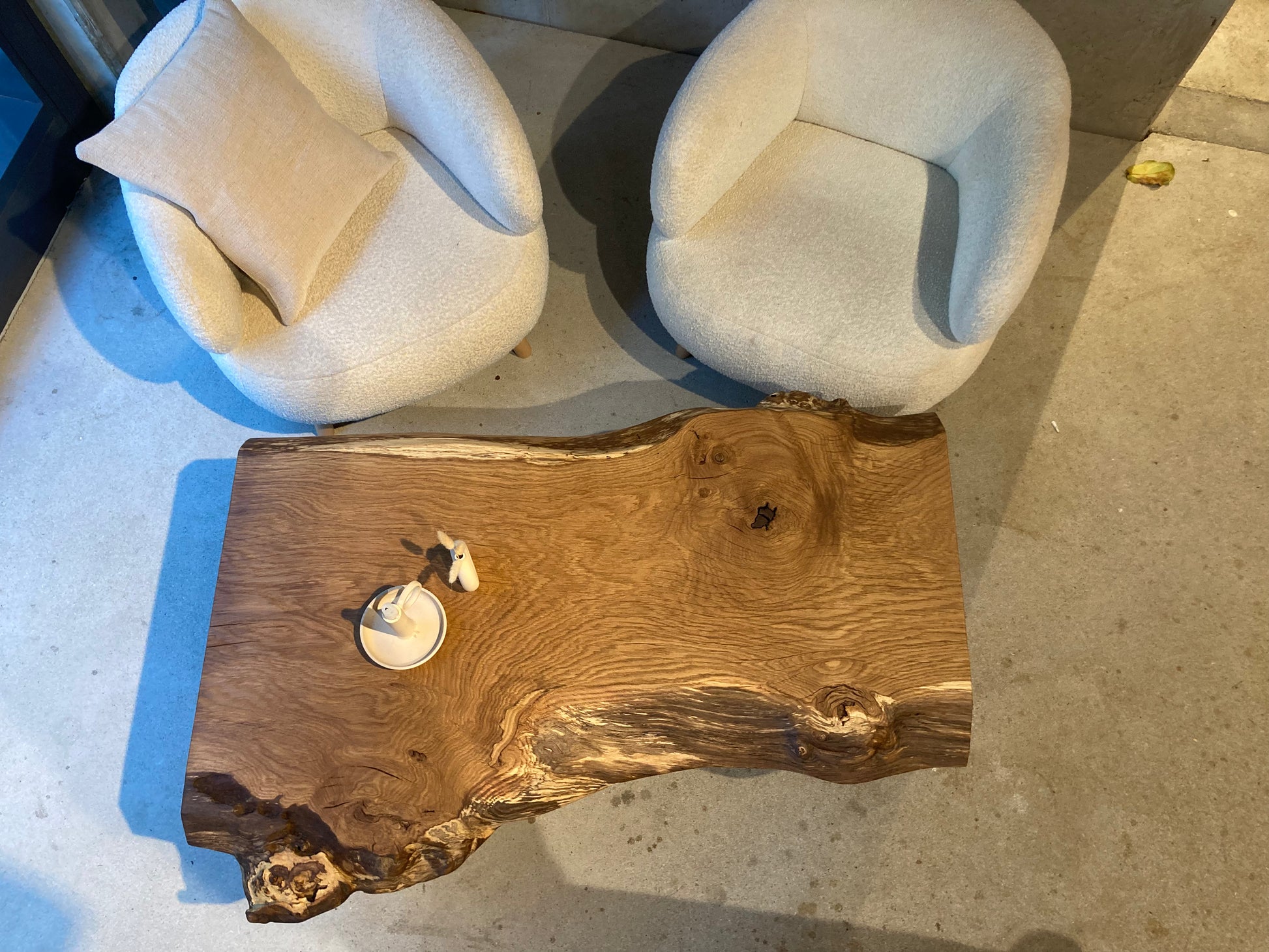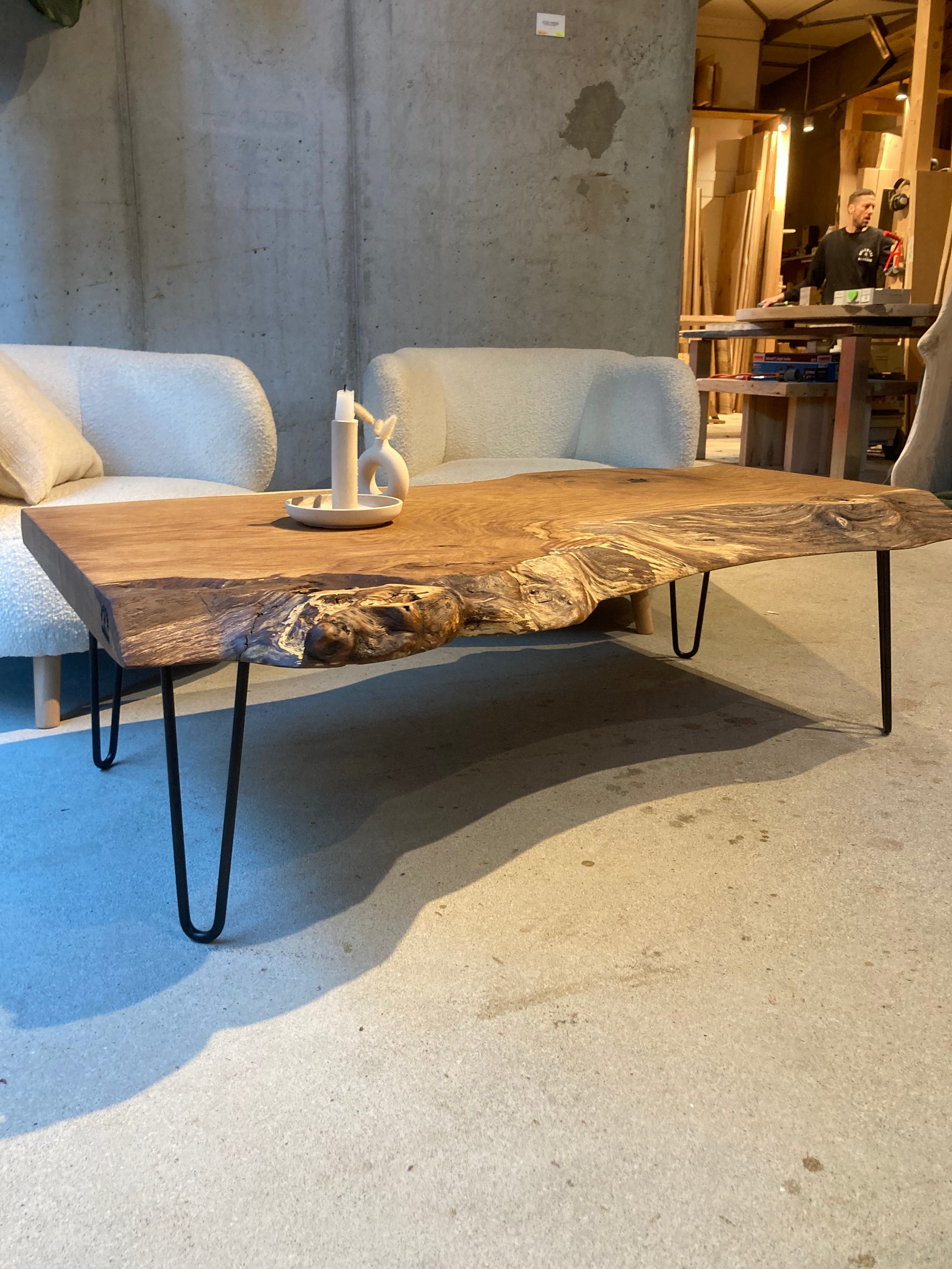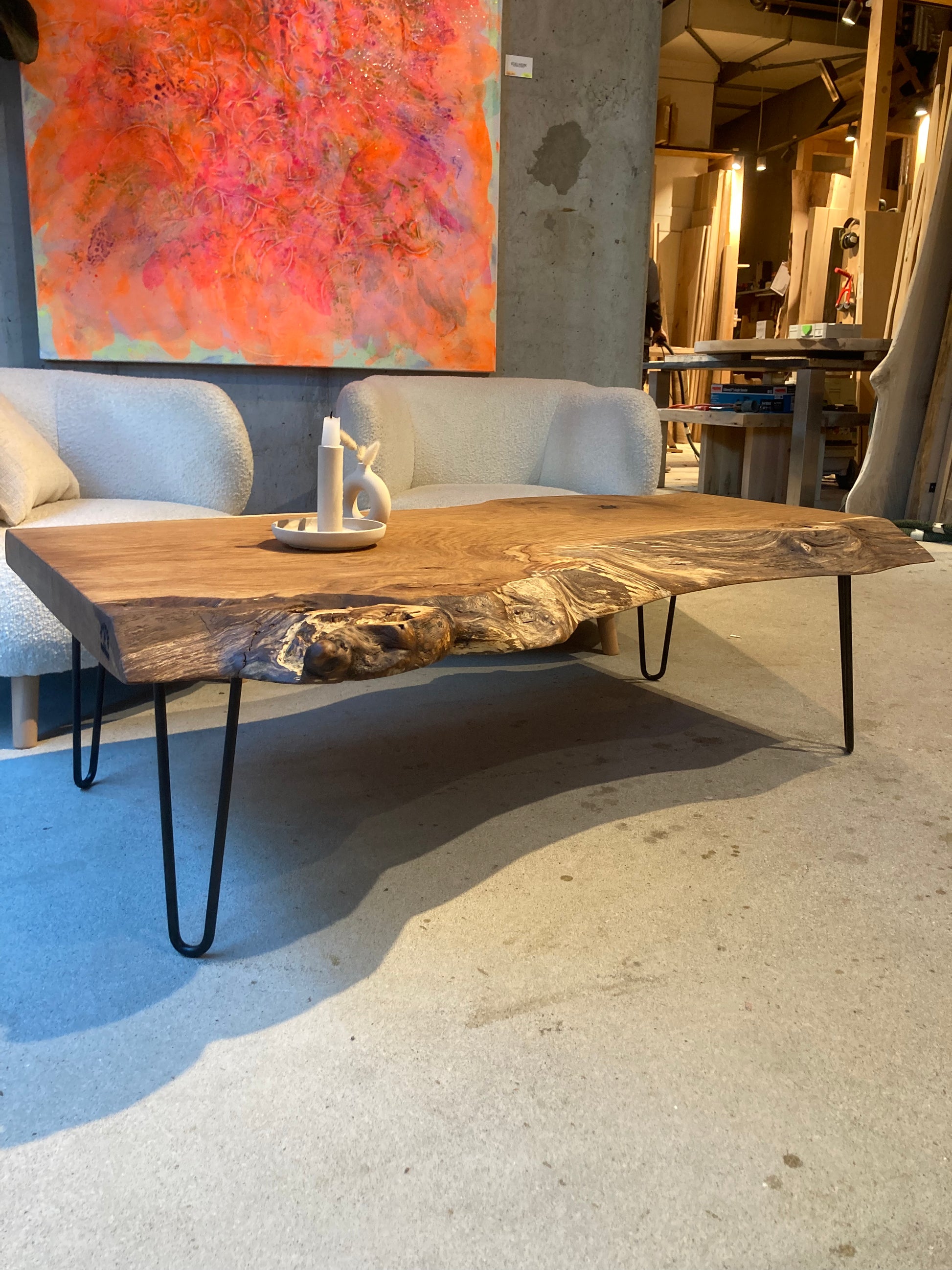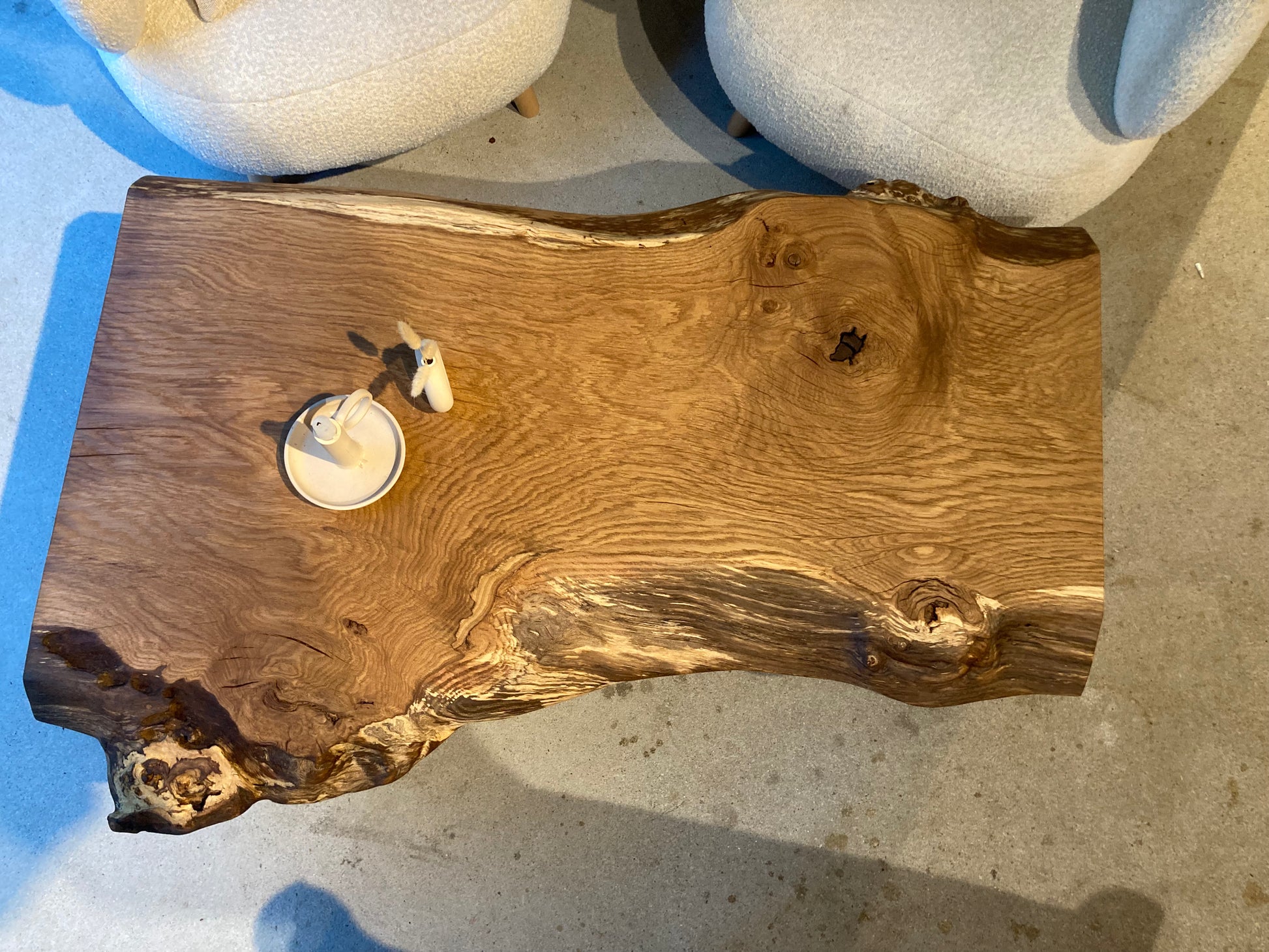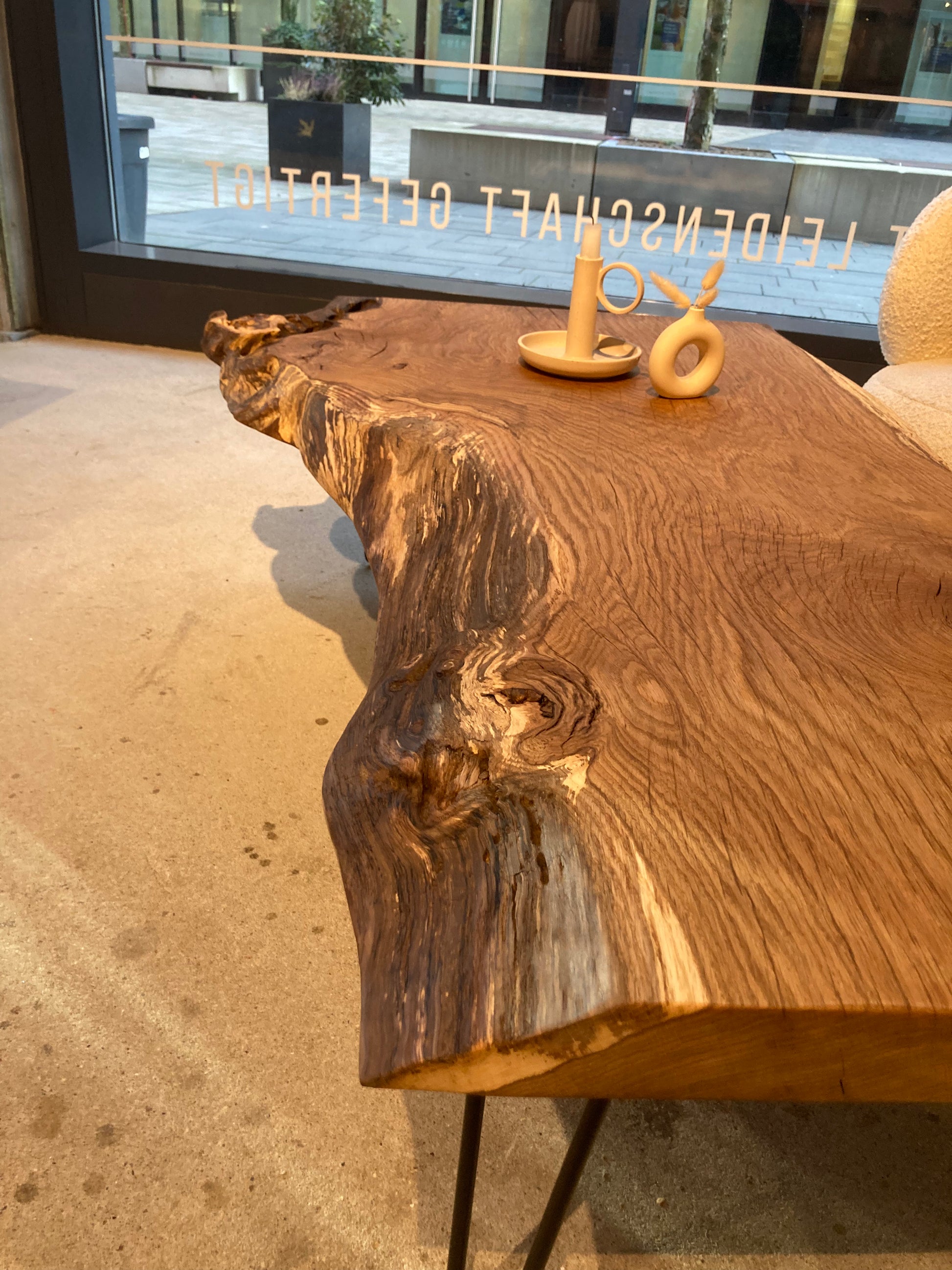 Couchtisch aus Eiche – einzigartige Baumscheibe mit Naturkante