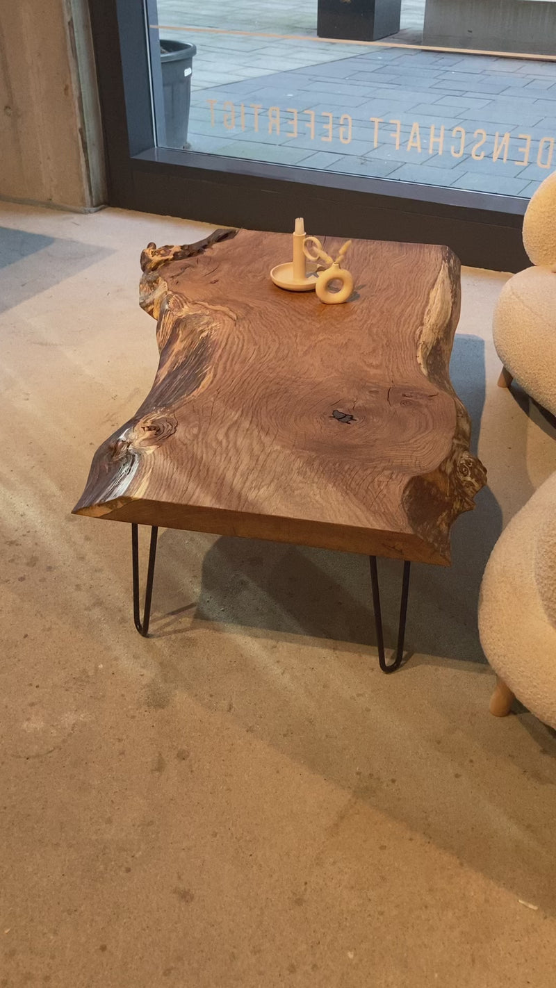 Couchtisch Eiche aus einem Stück Massivholz Monolith mit Baumkante