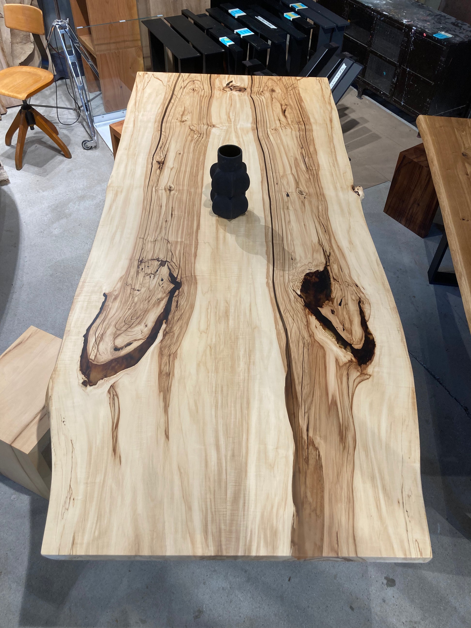 Weitere Tische und Tischplatten dieser Art aus Massivholz sind vorrätig, darunter auch Tischplatten mit Längen von über 4 Metern.