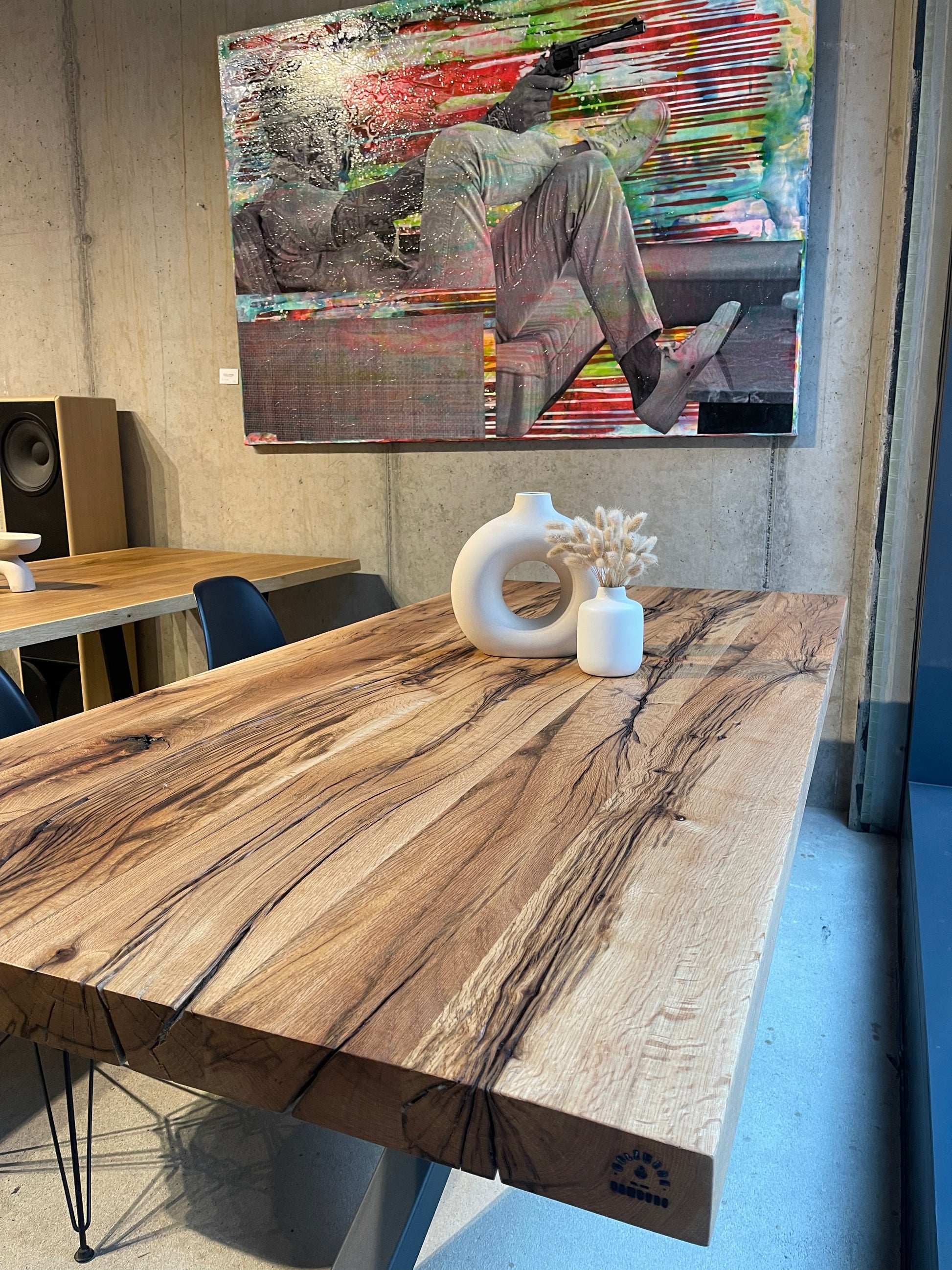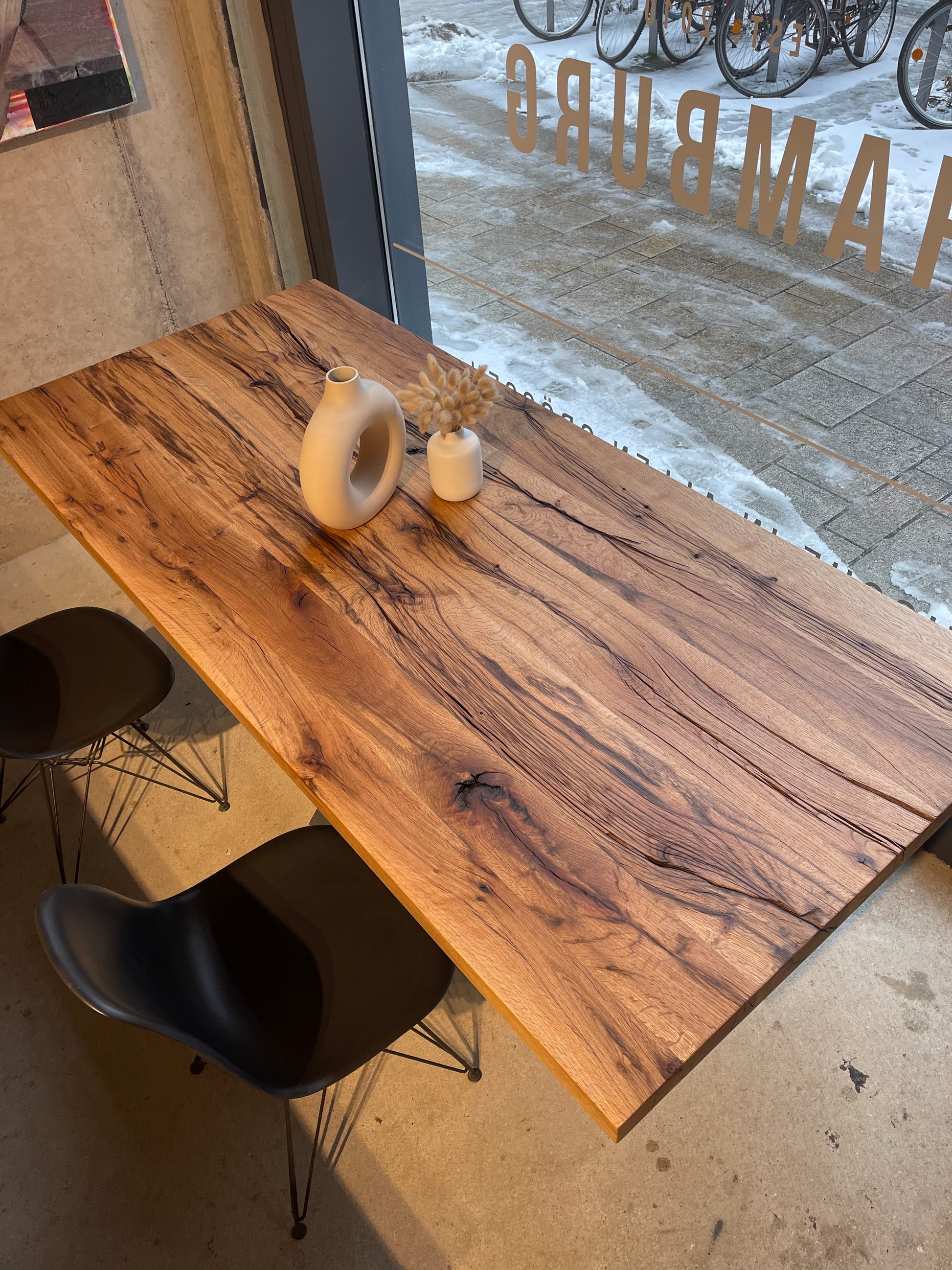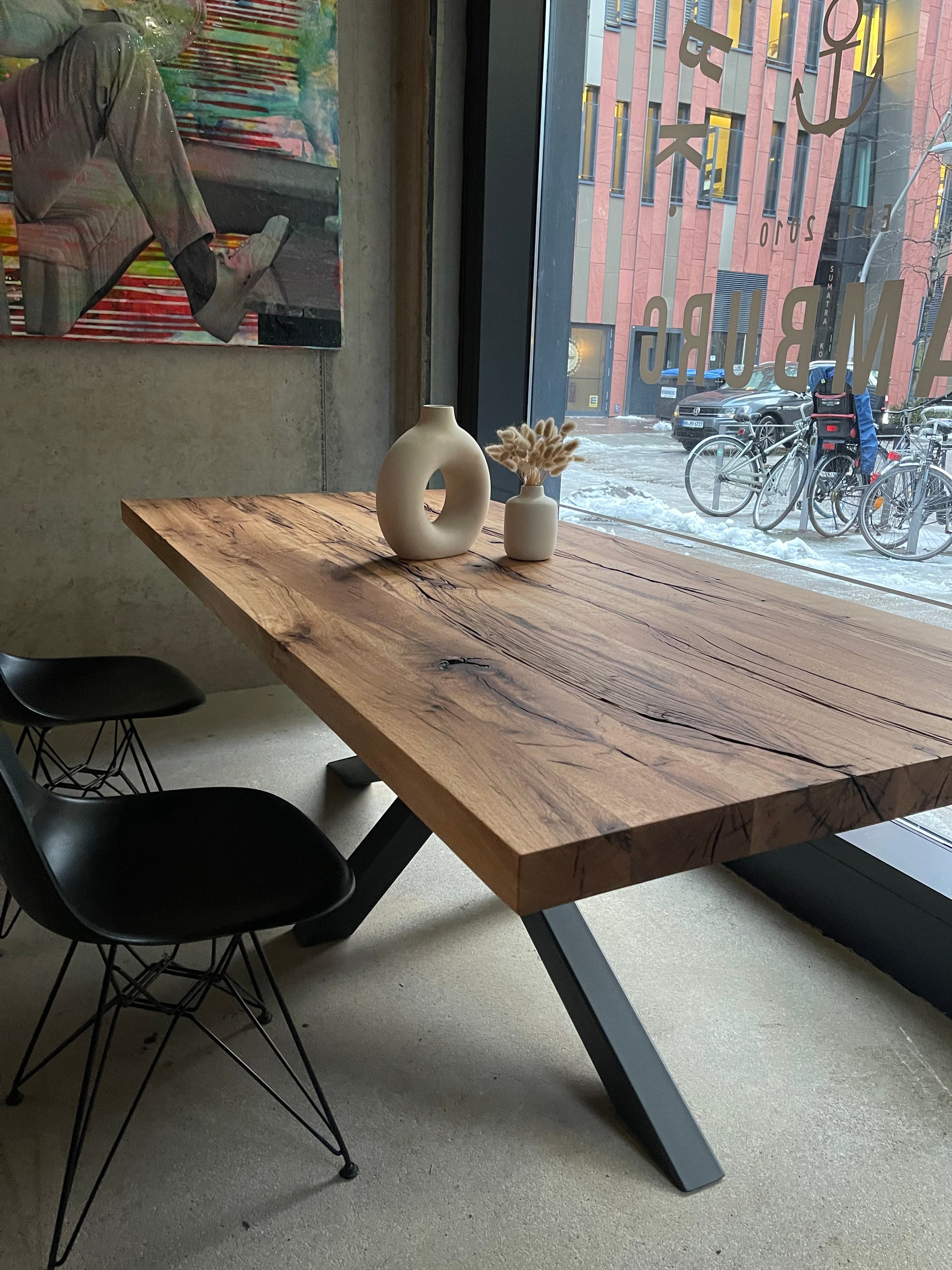 In der Hamburger HafenCity – voll mit Massivholztischen, Platten und persönlicher Beratung im Atelier-Flair. Live vor Ort oder per Video.