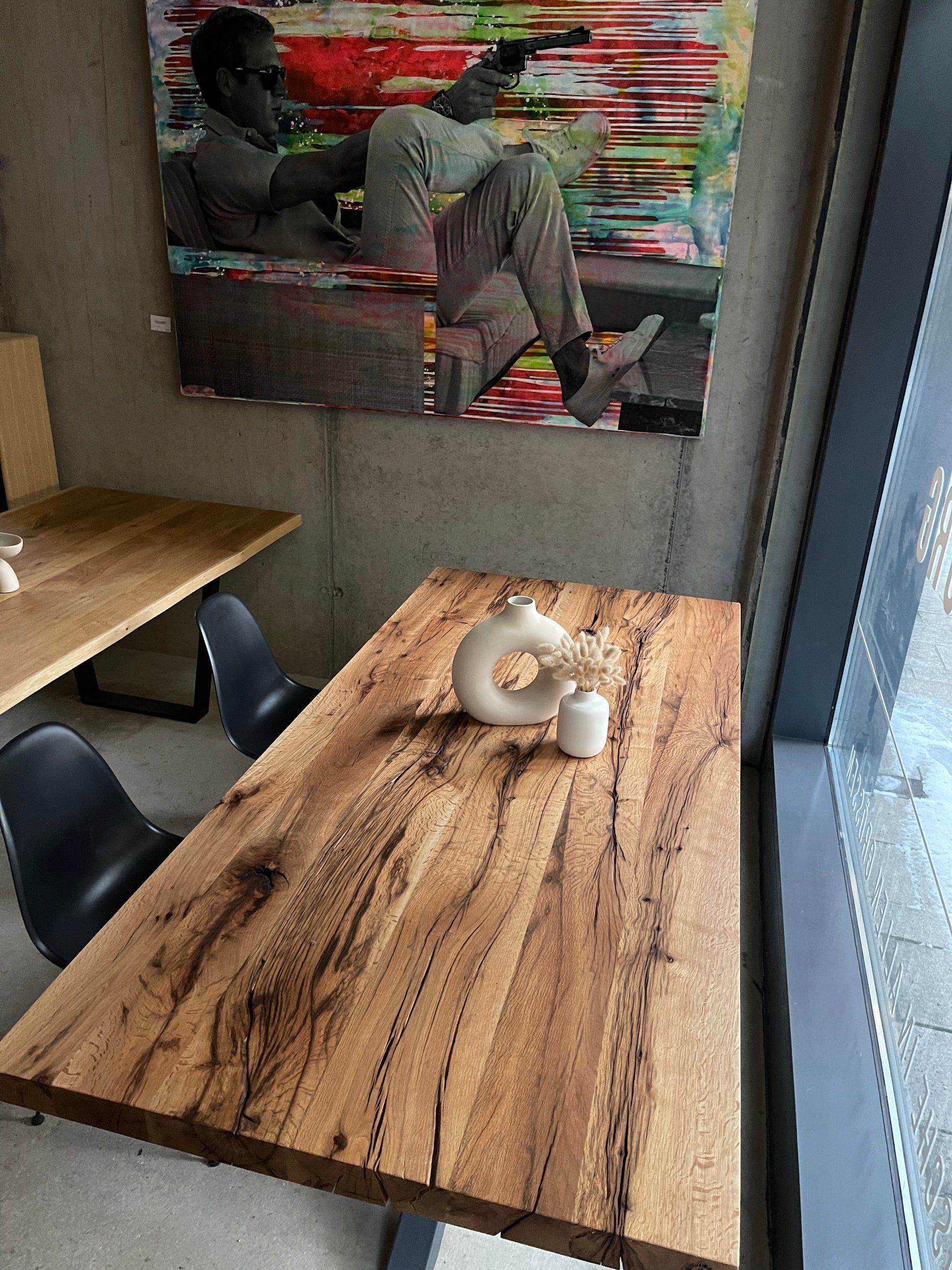 In unserer Ausstellung findest du über 50 sofort verfügbare Massivholztische sowie mehr als 200 Tischplatten zur Auswahl.