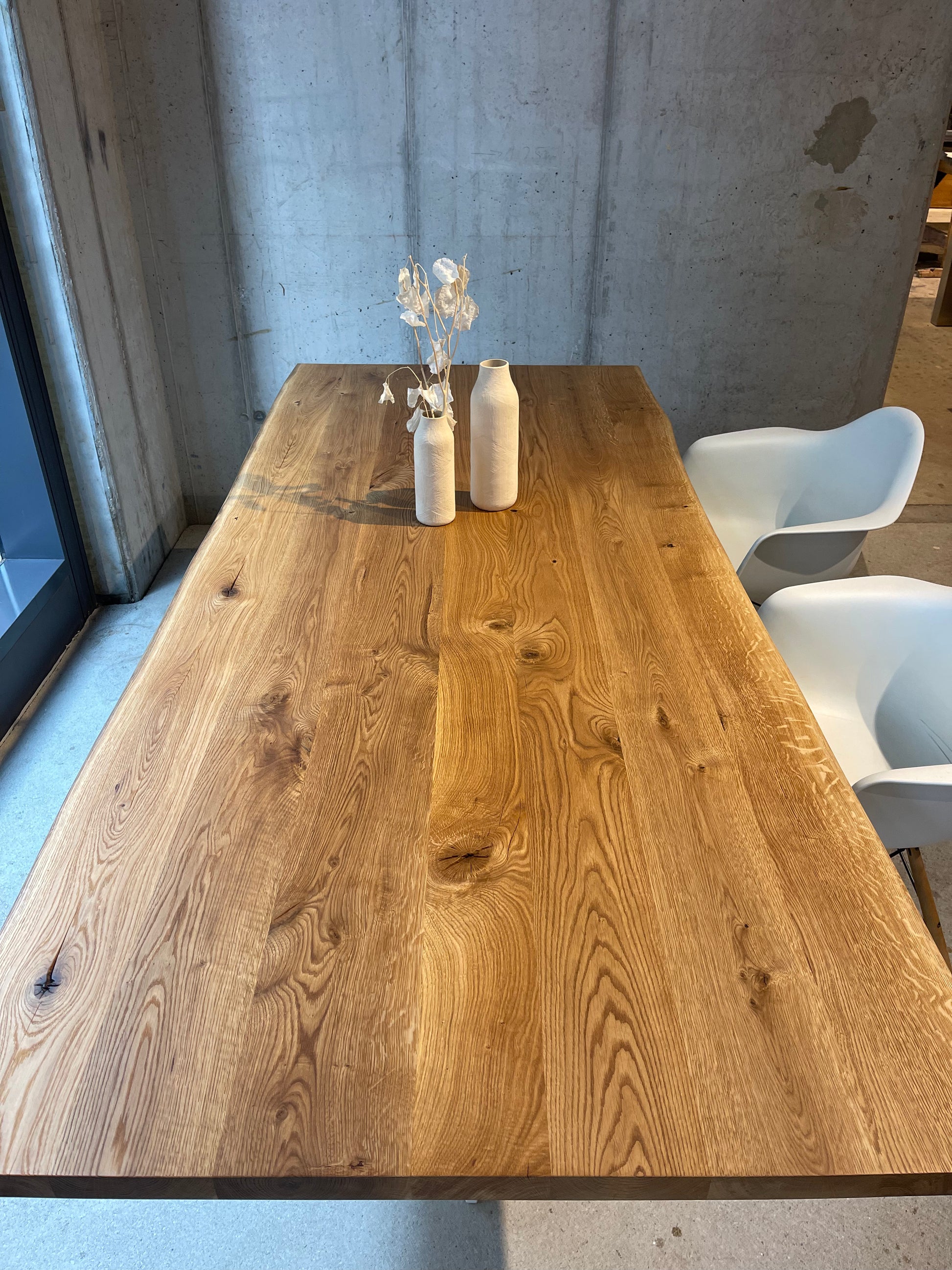 In unserer Ausstellung findest du über 50 sofort verfügbare Massivholztische sowie mehr als 200 Tischplatten zur Auswahl.
