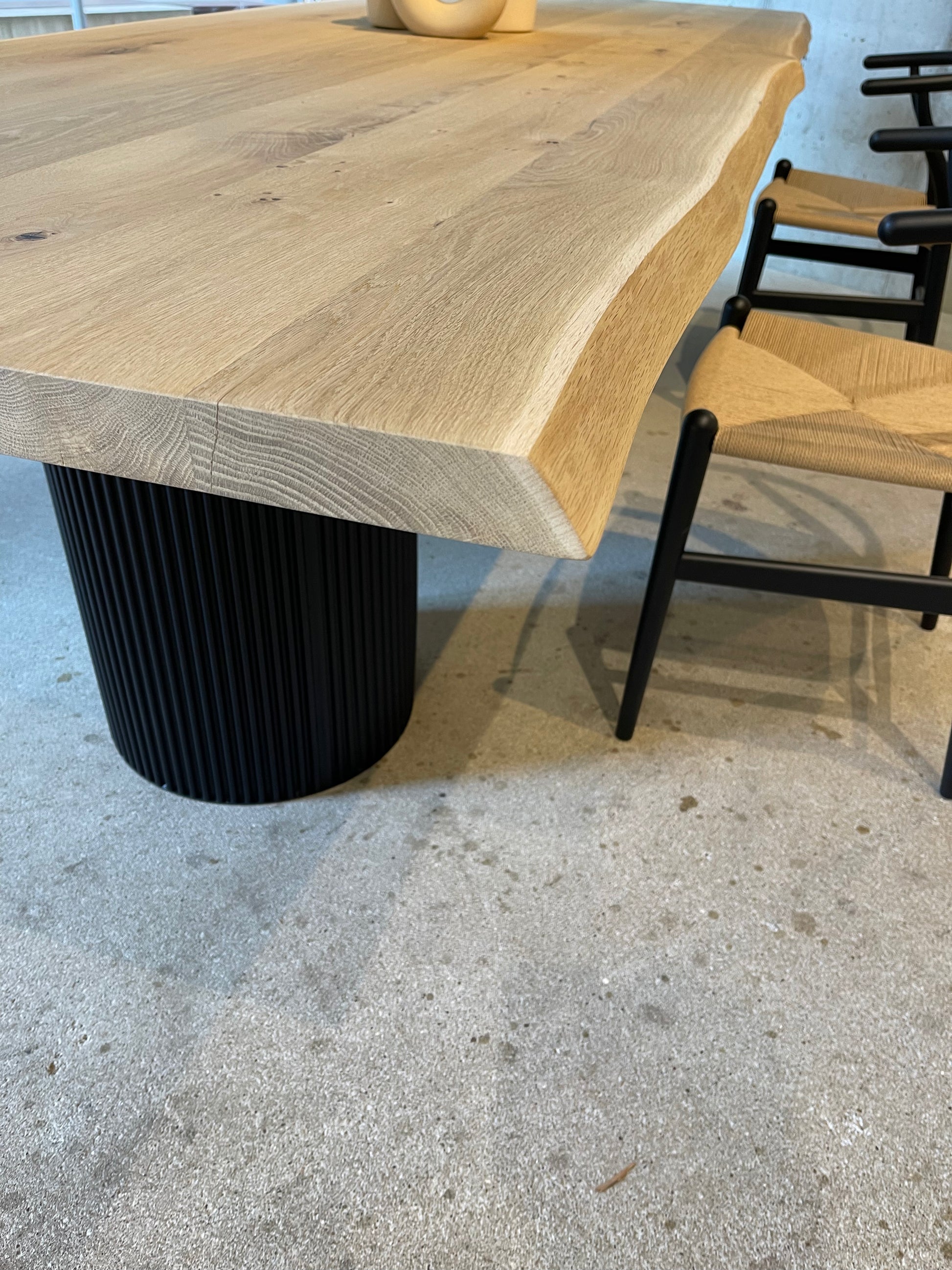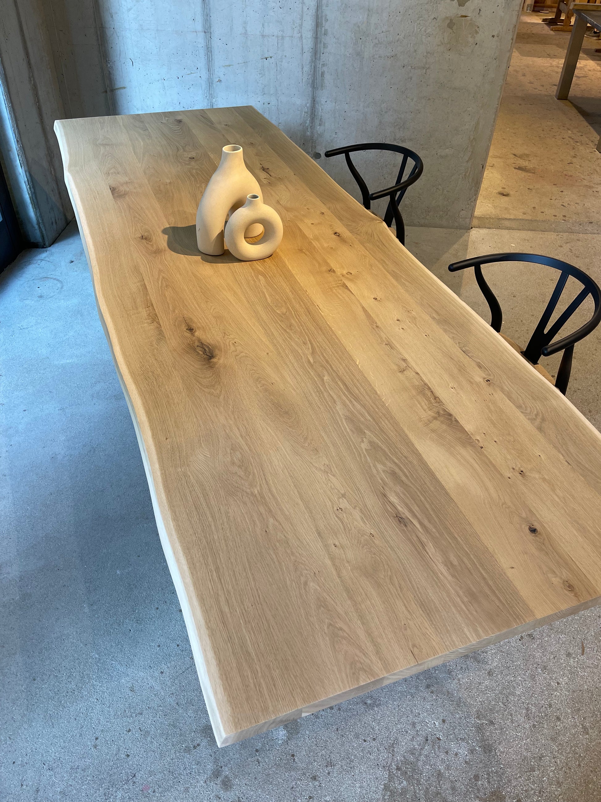 Massivholztisch aus Eichenholz mit natürlicher Baumkante – sofort verfügbar