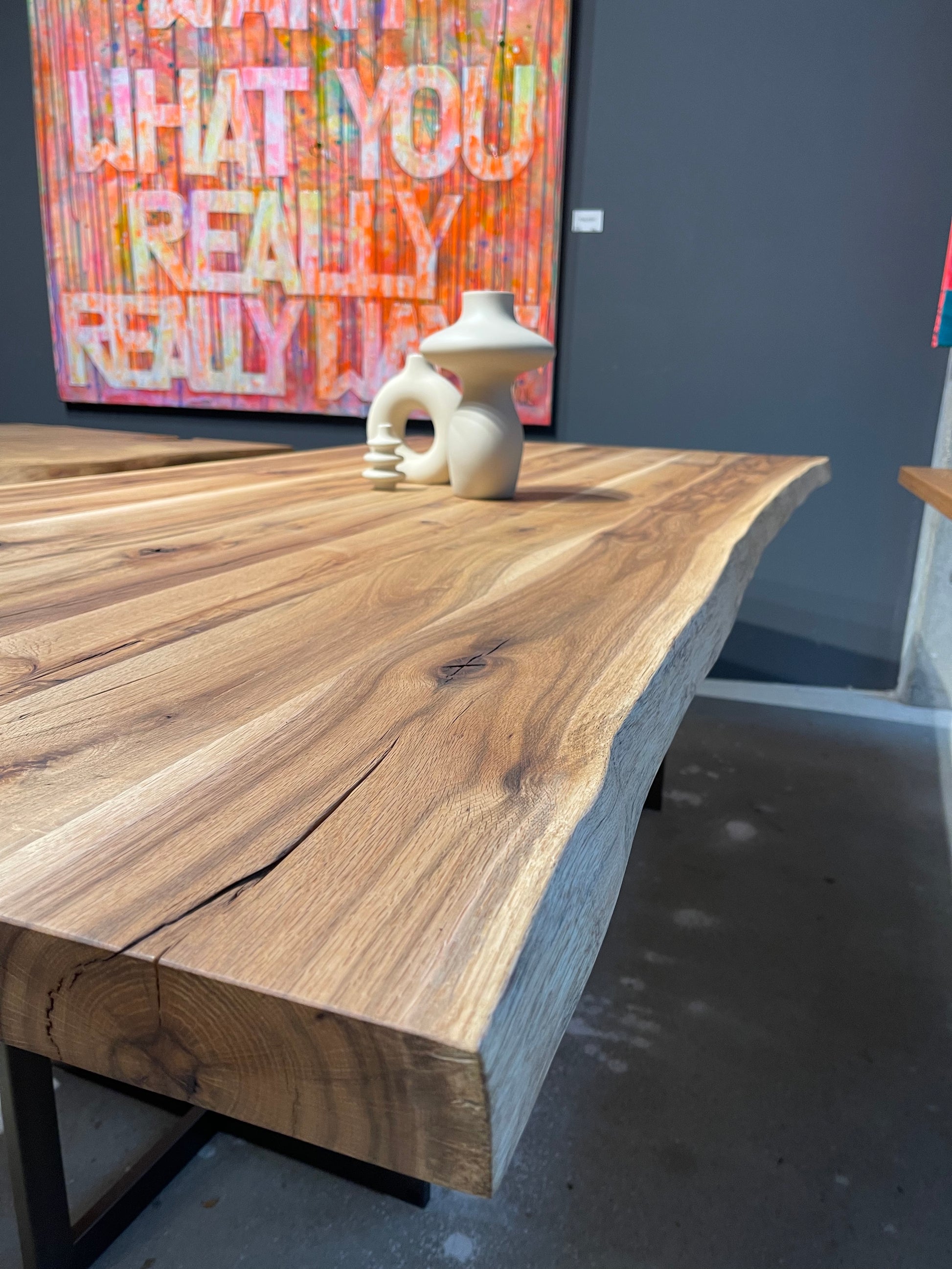In unserer Ausstellung findest du über 50 sofort verfügbare Massivholztische sowie mehr als 200 Tischplatten zur Auswahl.