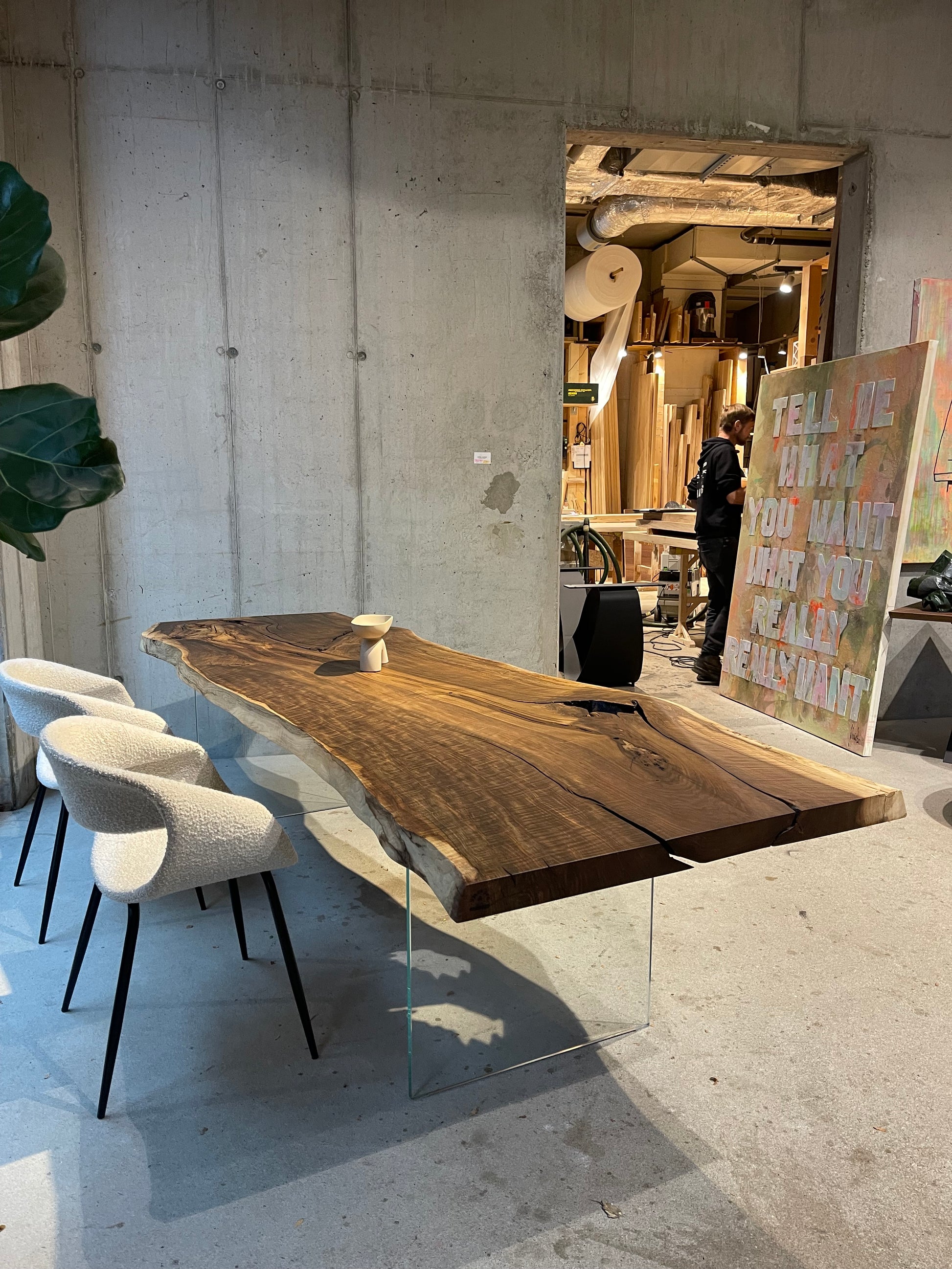 In unserer Ausstellung findest du über 50 sofort verfügbare Massivholztische sowie mehr als 200 Tischplatten zur Auswahl.