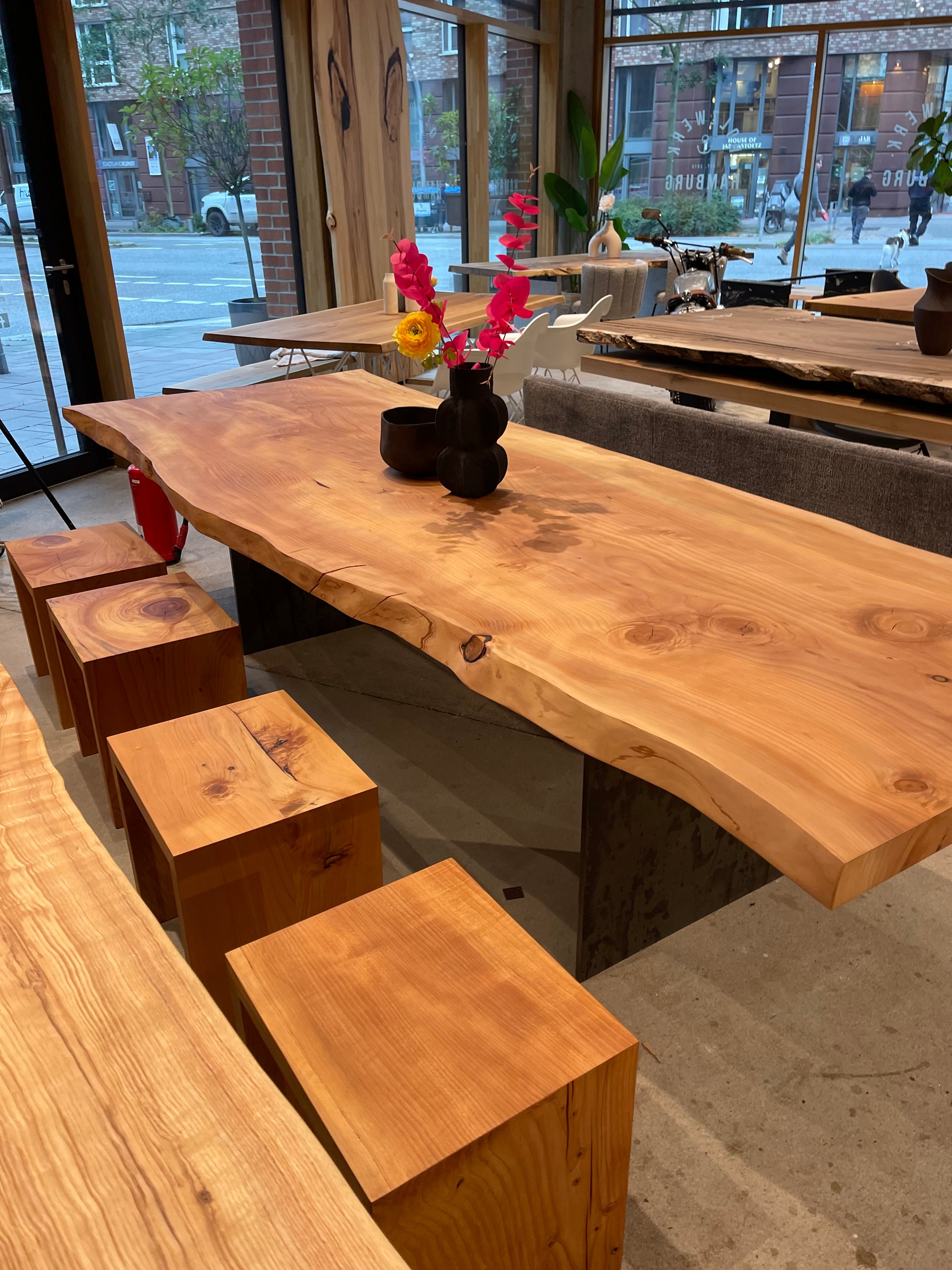 Unser Holz beziehen wir aus nachhaltiger Forstwirtschaft in Europa. Jede Tischplatte stammt aus einer massiven Stammbohle, wodurch jedes Stück ein Unikat mit eigener Geschichte ist.