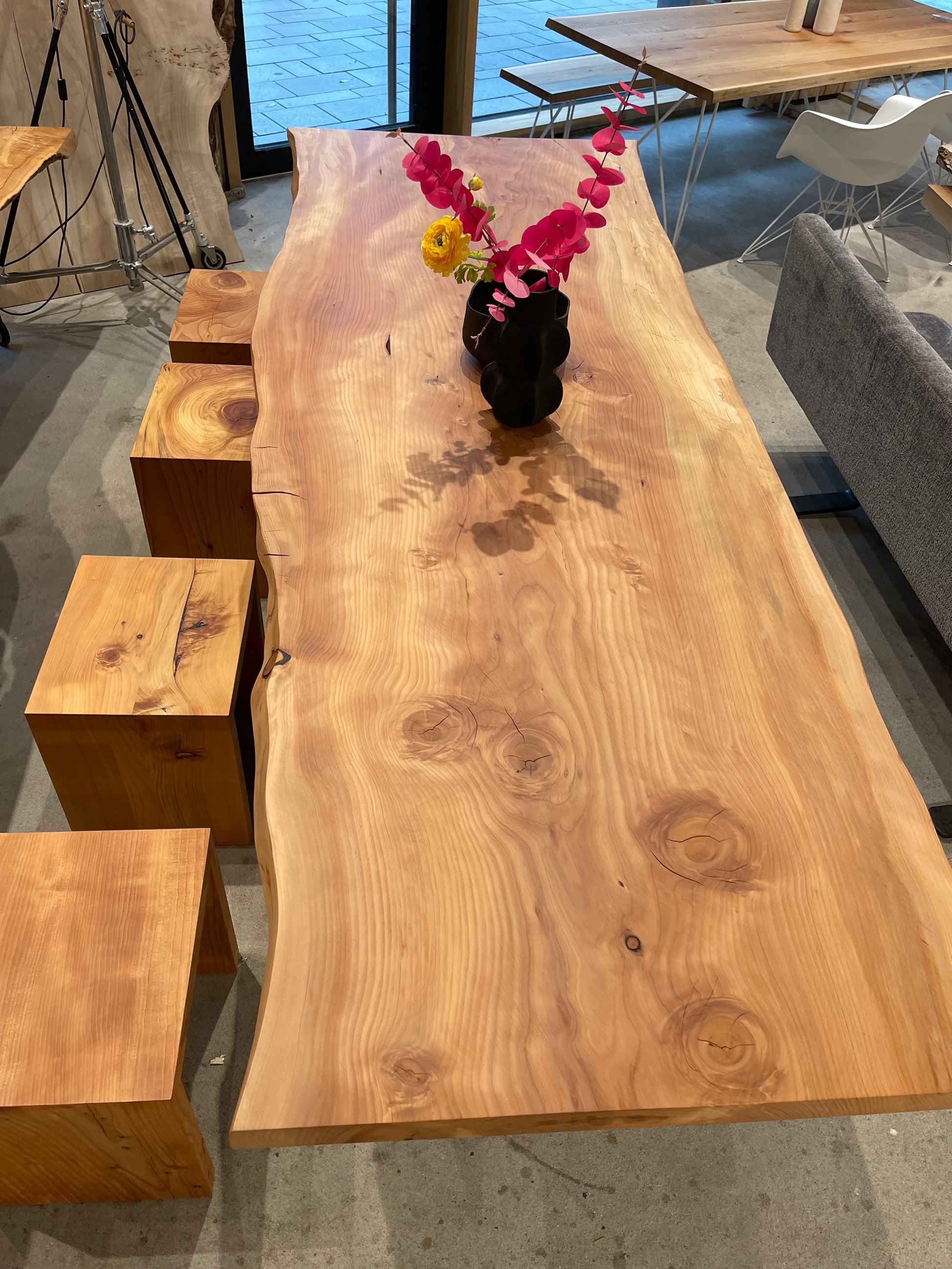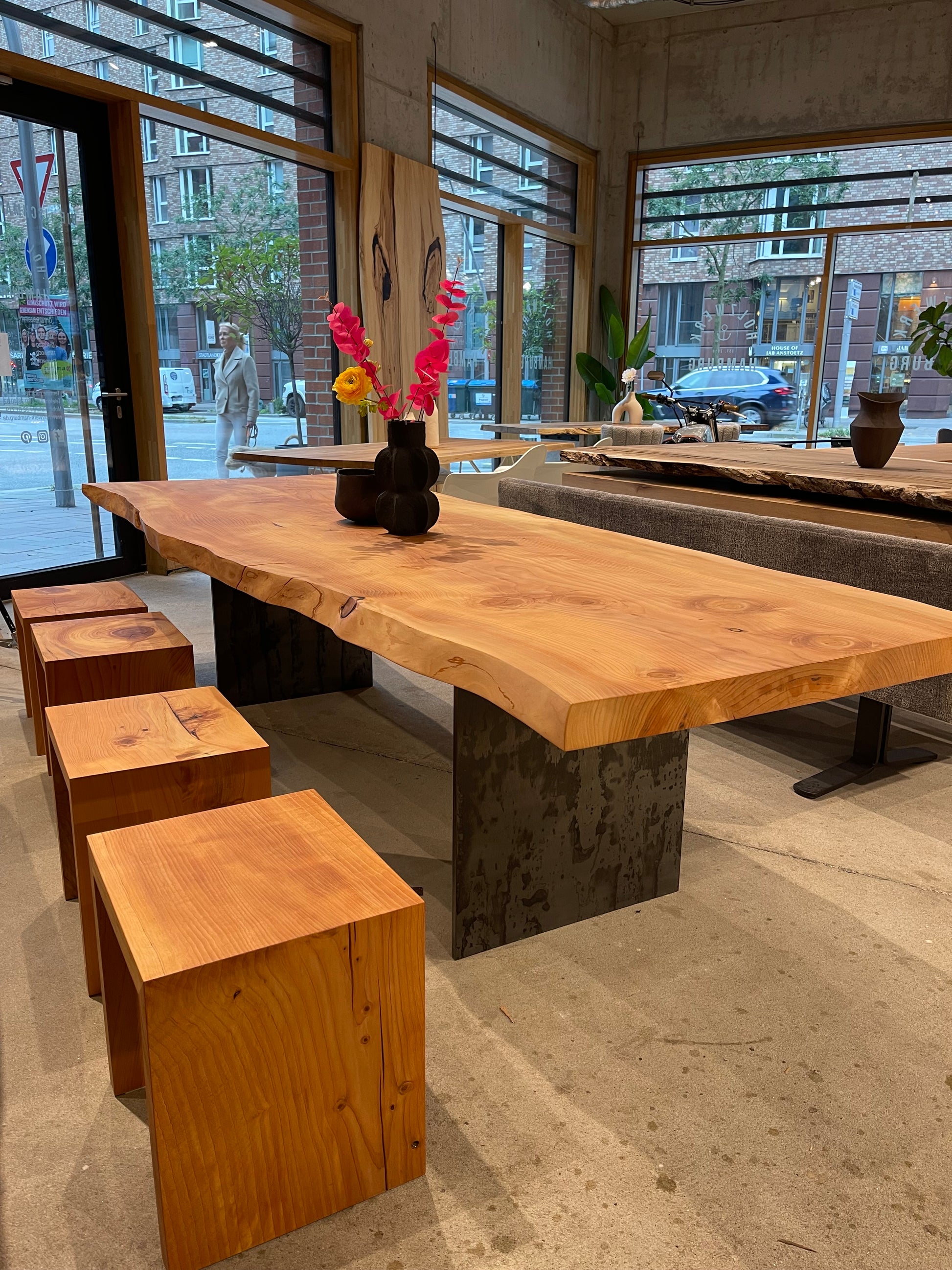 In unserer Ausstellung findest du über 50 sofort verfügbare Massivholztische sowie mehr als 200 Tischplatten zur Auswahl.