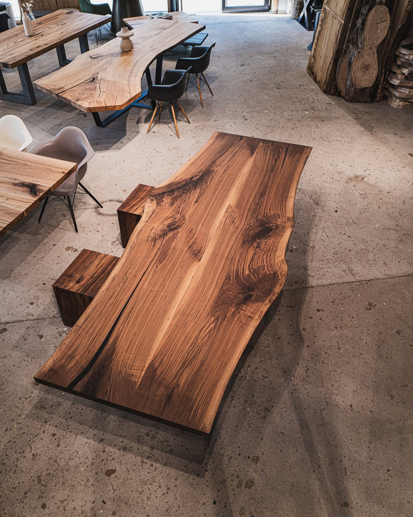In unserer Ausstellung findest du über 50 sofort verfügbare Massivholztische sowie mehr als 200 Tischplatten zur Auswahl.