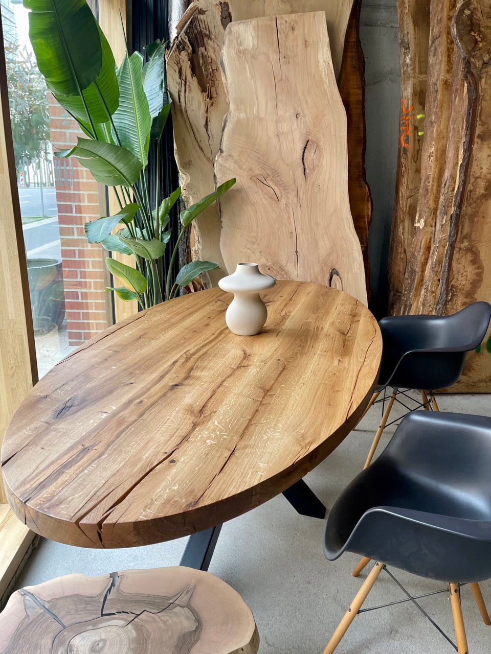 In unserer Ausstellung findest du über 50 sofort verfügbare Massivholztische sowie mehr als 200 Tischplatten zur Auswahl.
