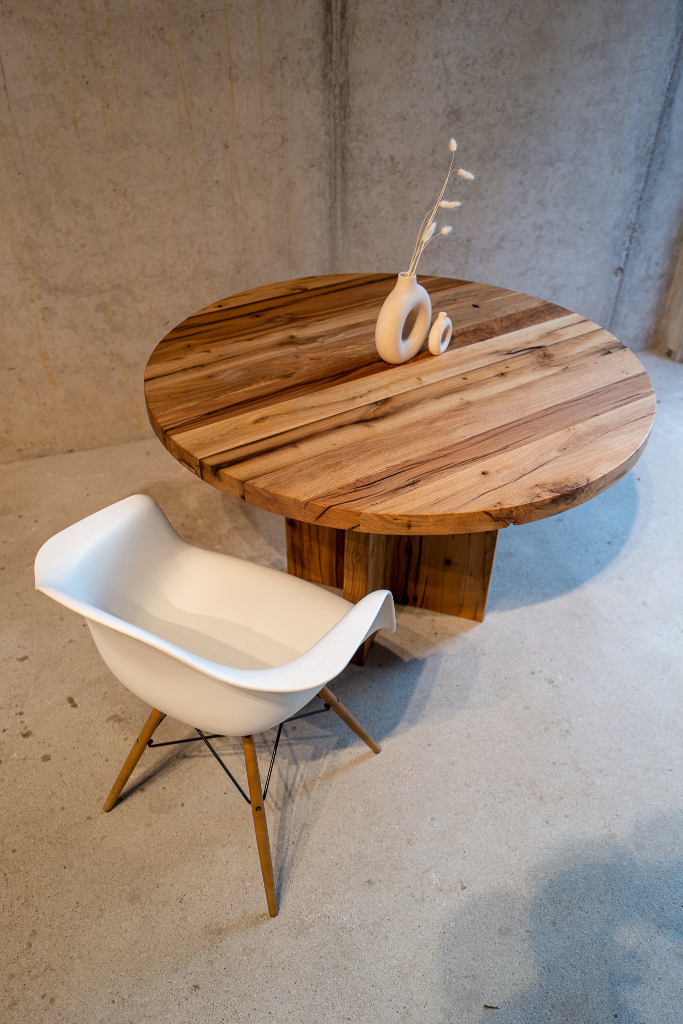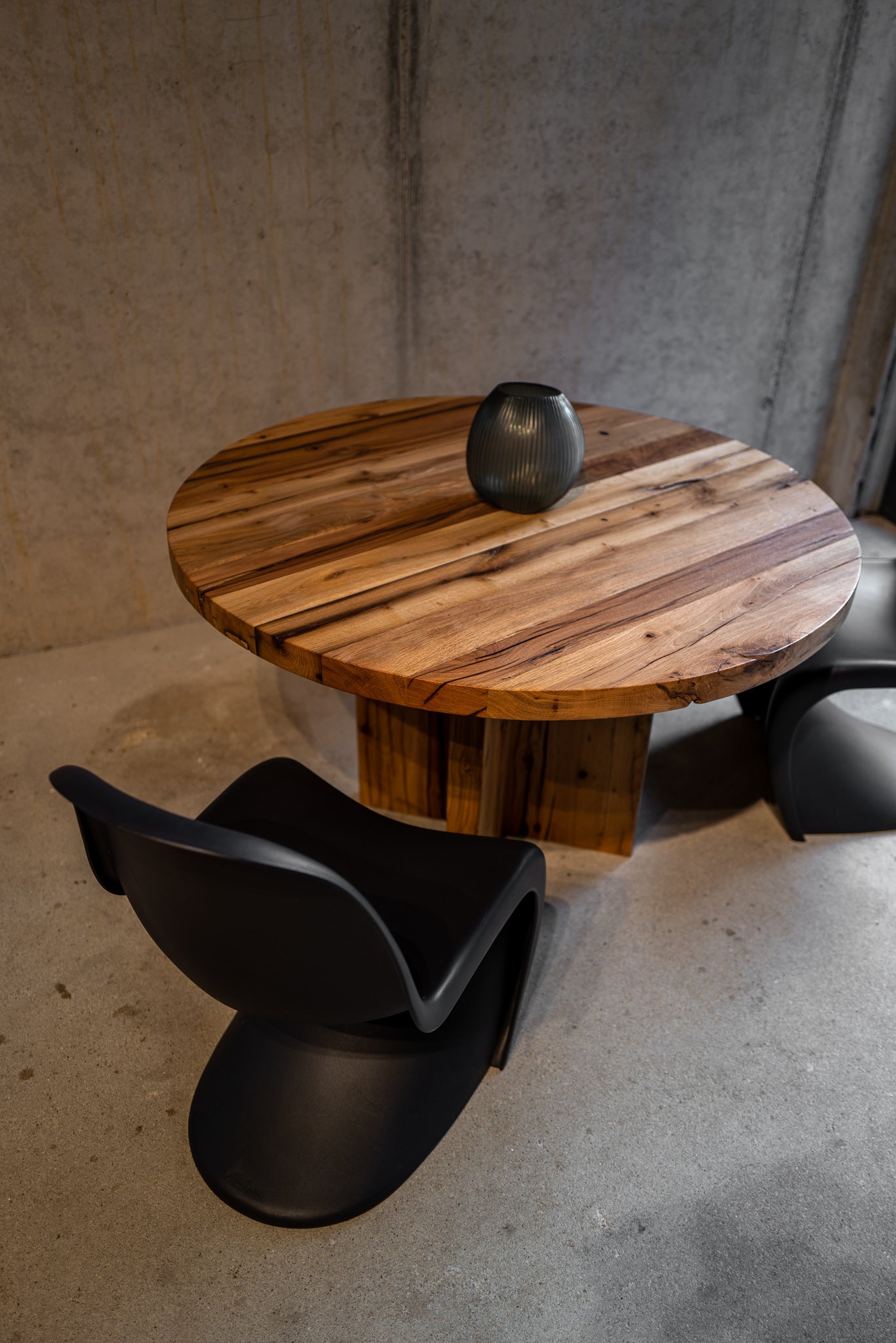 Runder Esstisch aus Massivholz Eiche Altholz | Wildeiche