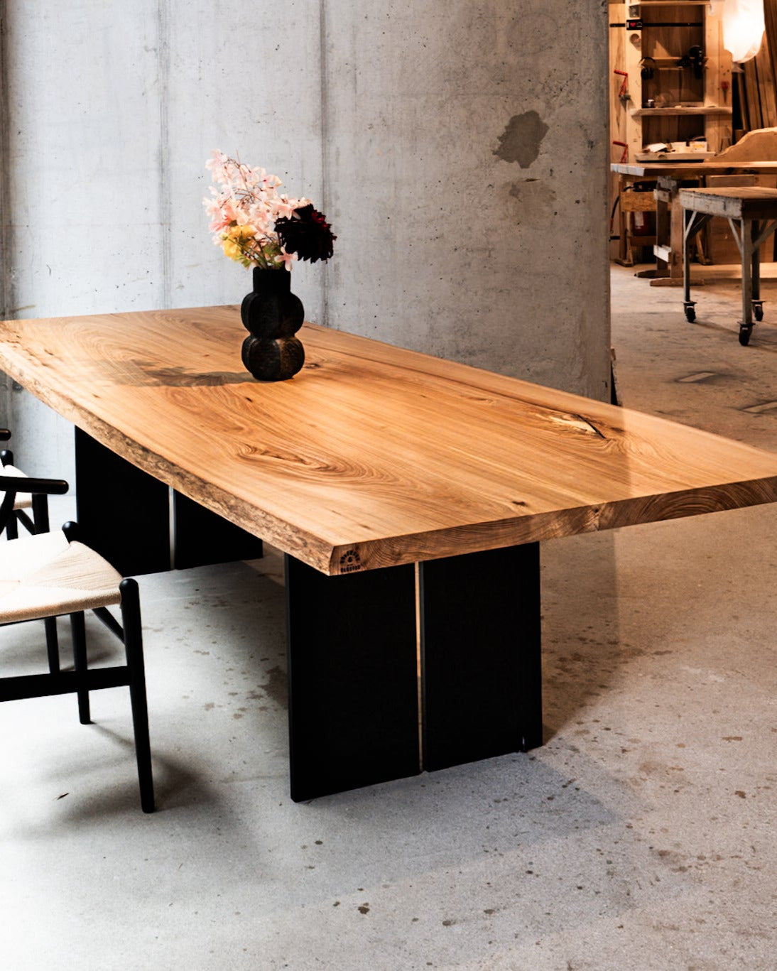 Unser Holz beziehen wir aus nachhaltiger Forstwirtschaft in Europa. Jede Tischplatte stammt aus einer massiven Stammbohle, wodurch jedes Stück ein Unikat mit eigener Geschichte ist.