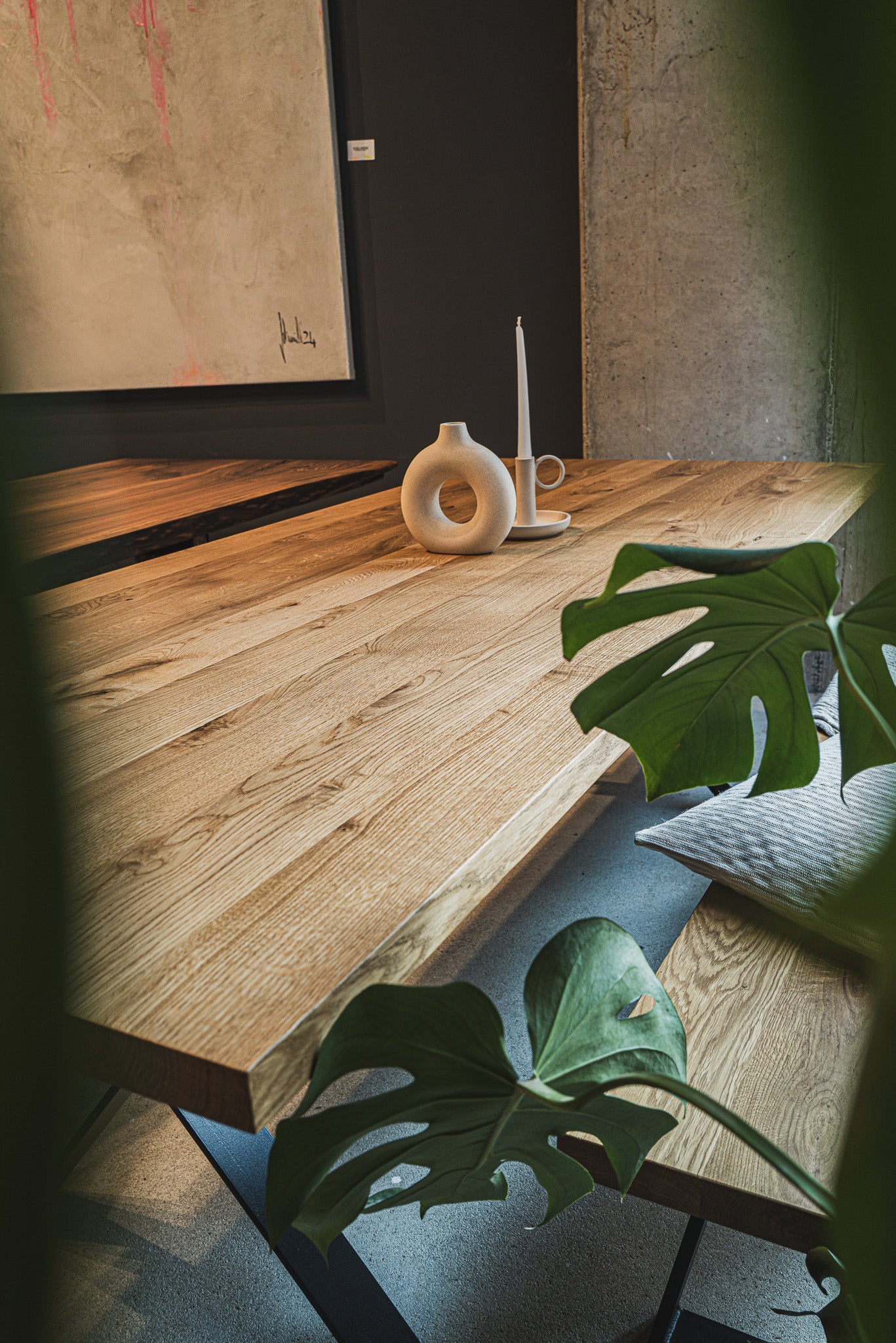 Unser Holz beziehen wir aus nachhaltiger Forstwirtschaft in Europa. Jede Tischplatte stammt aus einer massiven Stammbohle, wodurch jedes Stück ein Unikat mit eigener Geschichte ist.