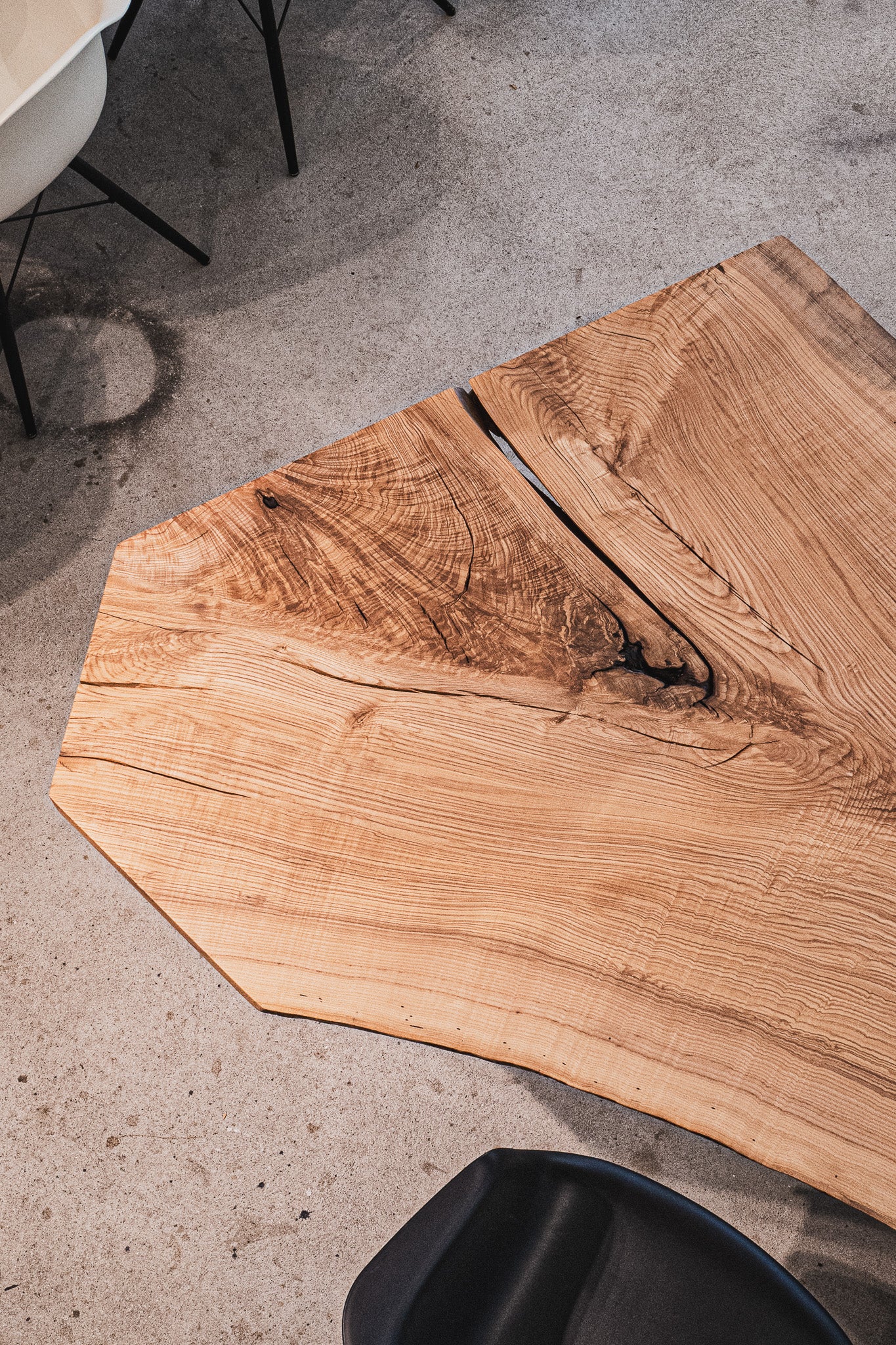 Unser Holz beziehen wir aus nachhaltiger Forstwirtschaft in Europa. Jede Tischplatte stammt aus einer massiven Stammbohle, wodurch jedes Stück ein Unikat mit eigener Geschichte ist.