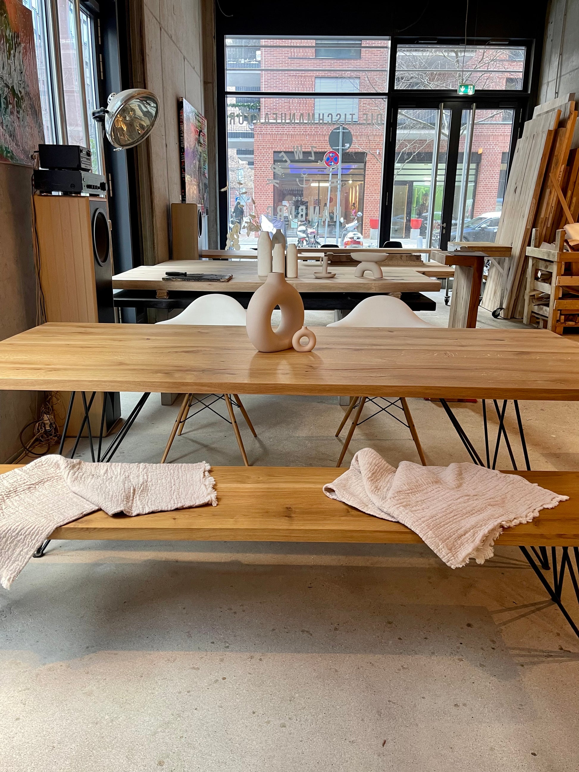 In unserer Ausstellung findest du über 50 sofort verfügbare Massivholztische sowie mehr als 200 Tischplatten zur Auswahl.