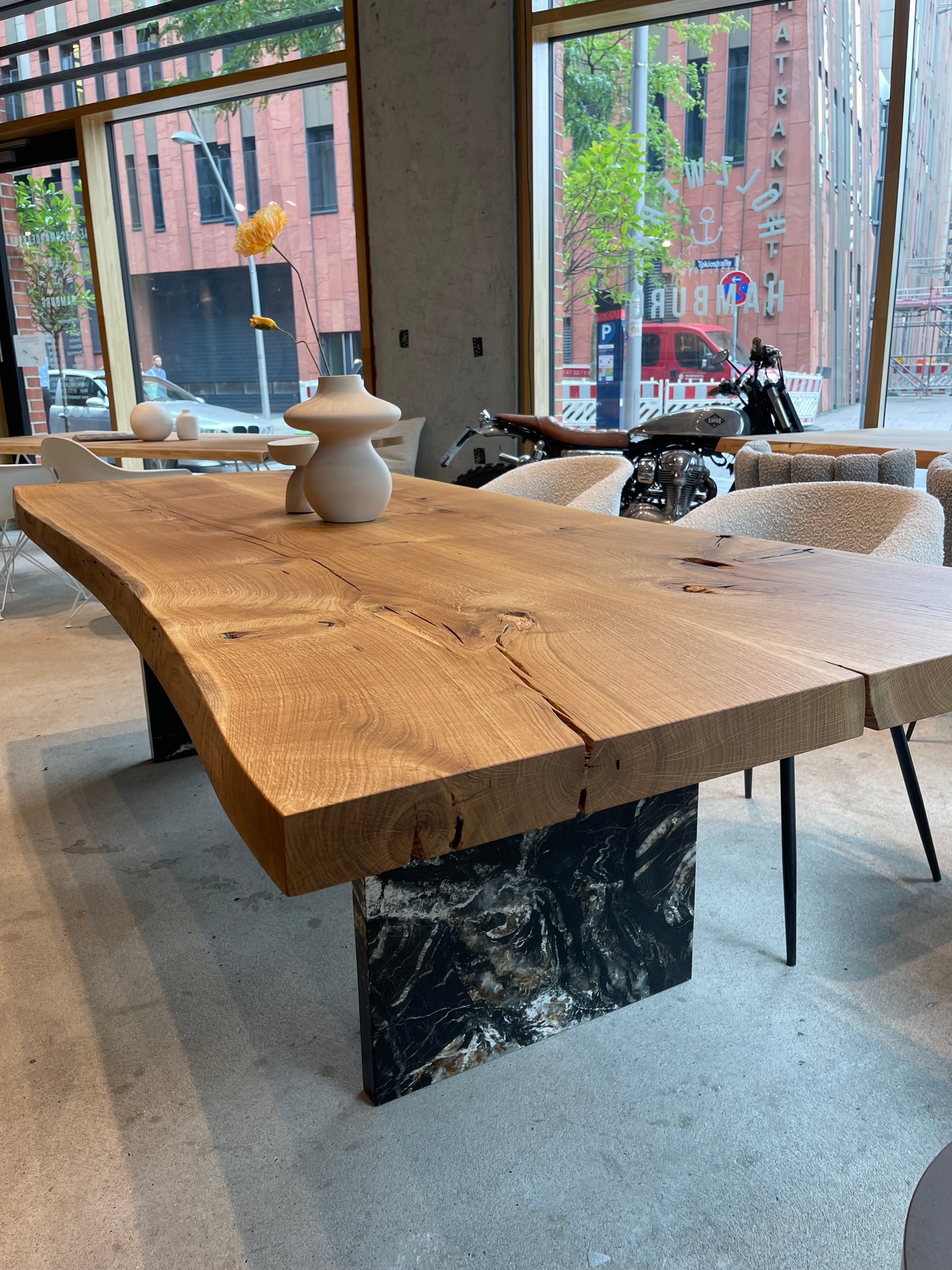 In der Hamburger HafenCity – voll mit Massivholztischen, Platten und persönlicher Beratung im Atelier-Flair. Live vor Ort oder per Video.