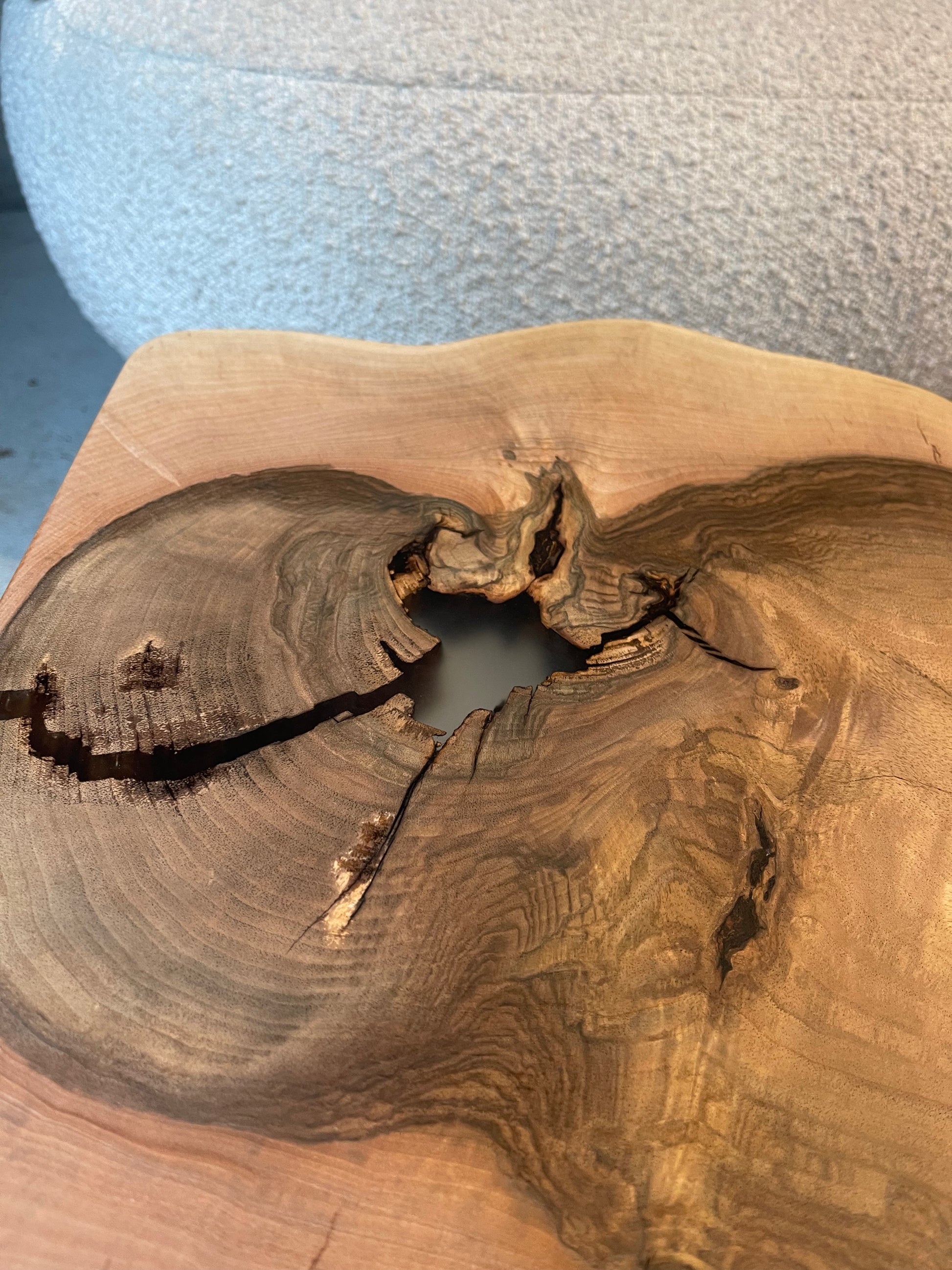 Einzigartiger Baumscheiben-Couchtisch aus europäischem Nussbaum