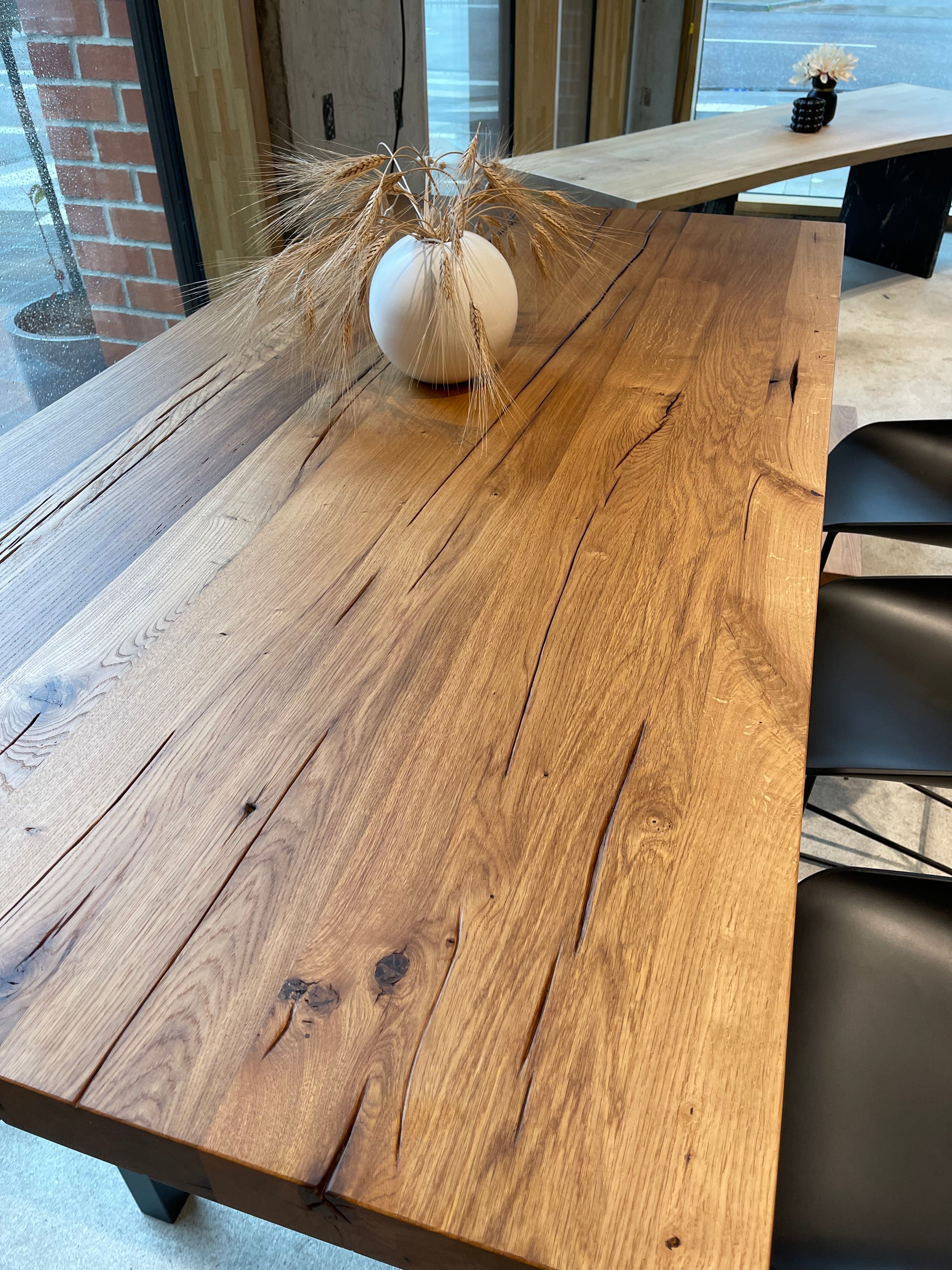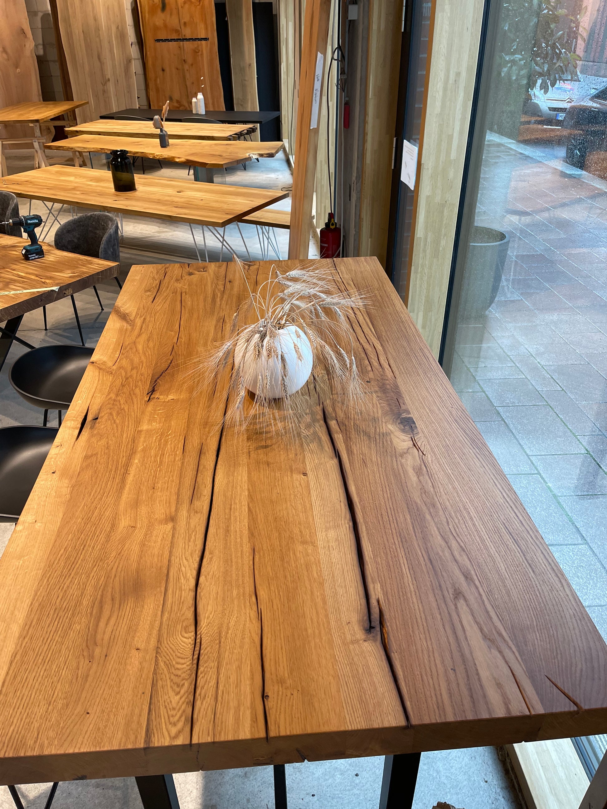 In unserer Ausstellung findest du über 50 sofort verfügbare Massivholztische sowie mehr als 200 Tischplatten zur Auswahl.