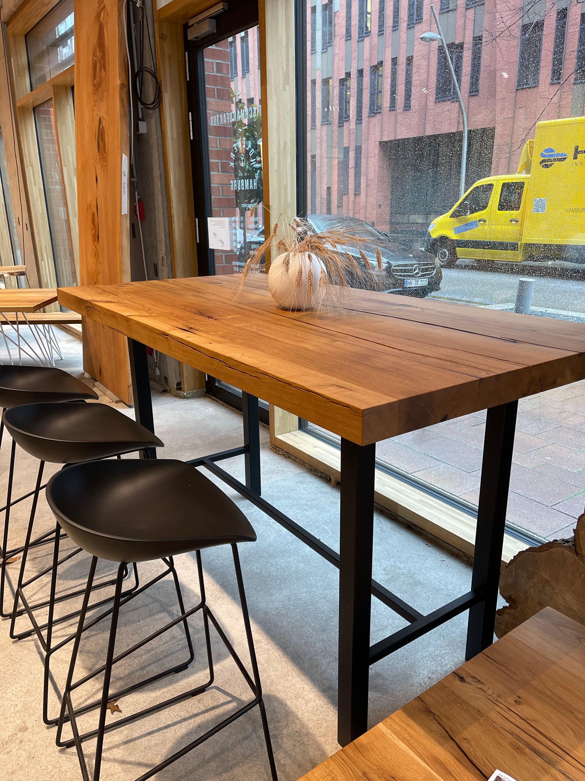 In der Hamburger HafenCity – voll mit Massivholztischen, Platten und persönlicher Beratung im Atelier-Flair. Live vor Ort oder per Video.
