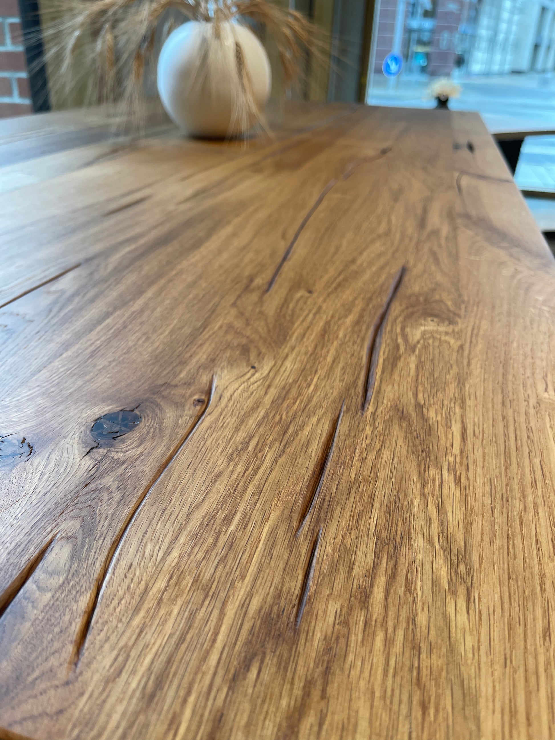 Unser Holz beziehen wir aus nachhaltiger Forstwirtschaft in Europa. Jede Tischplatte stammt aus einer massiven Stammbohle, wodurch jedes Stück ein Unikat mit eigener Geschichte ist.