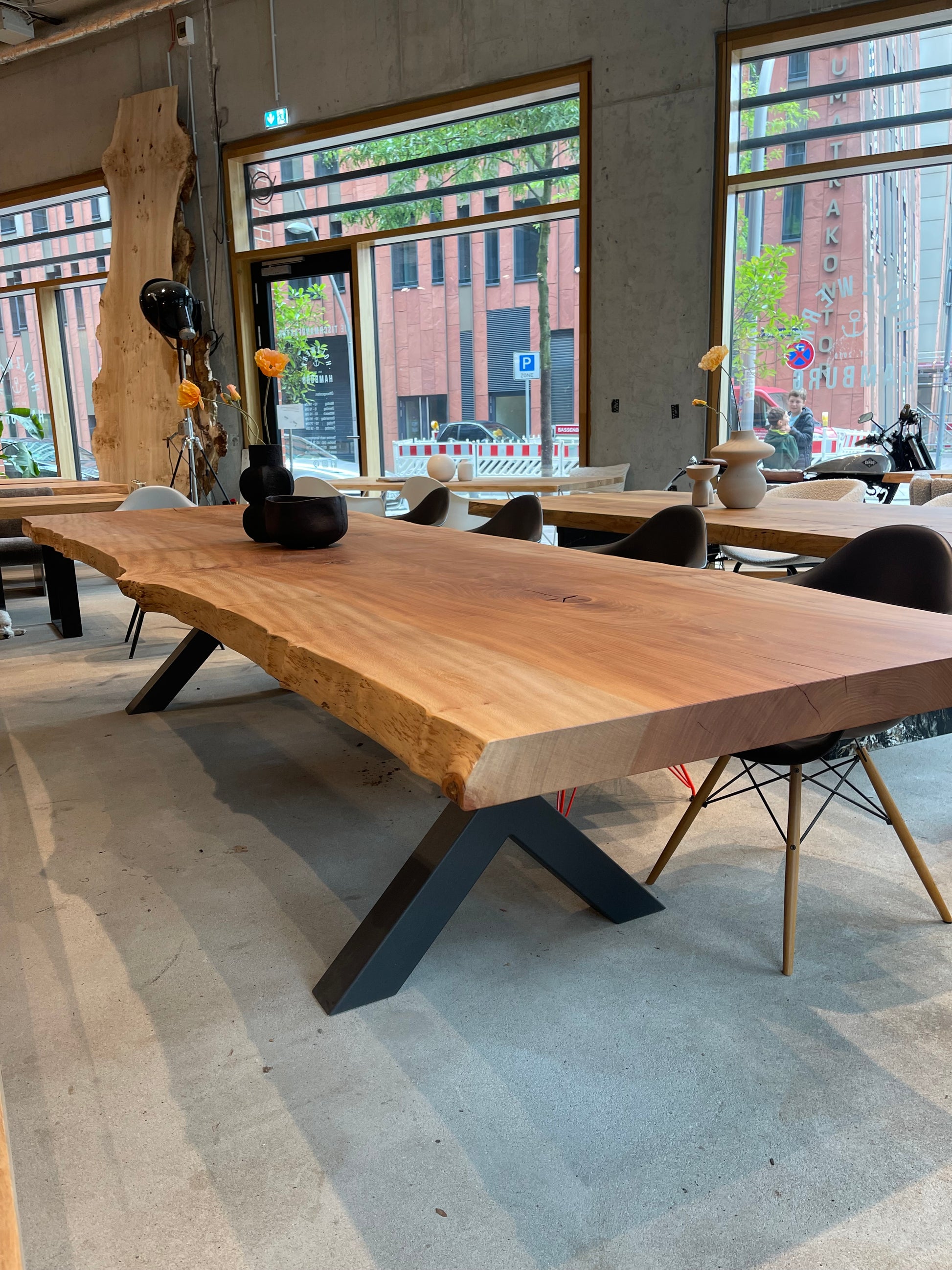 In der Hamburger HafenCity – voll mit Massivholztischen, Platten und persönlicher Beratung im Atelier-Flair. Live vor Ort oder per Video.
