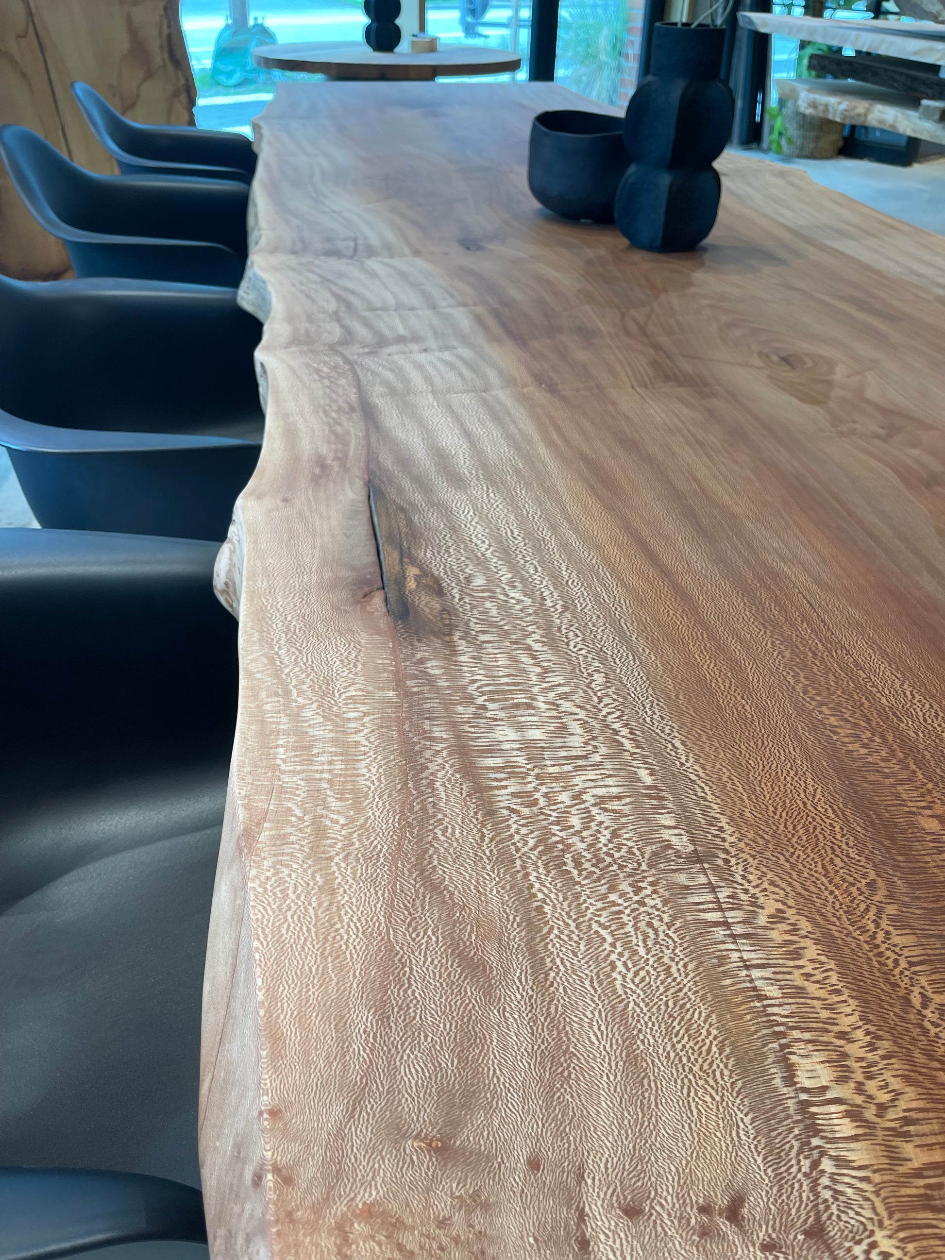 Dieser Esstisch aus Massivholz ist vorrätig und sofort lieferbar – ein echtes Naturkunstwerk, das sofort in Dein Zuhause einziehen kann.
