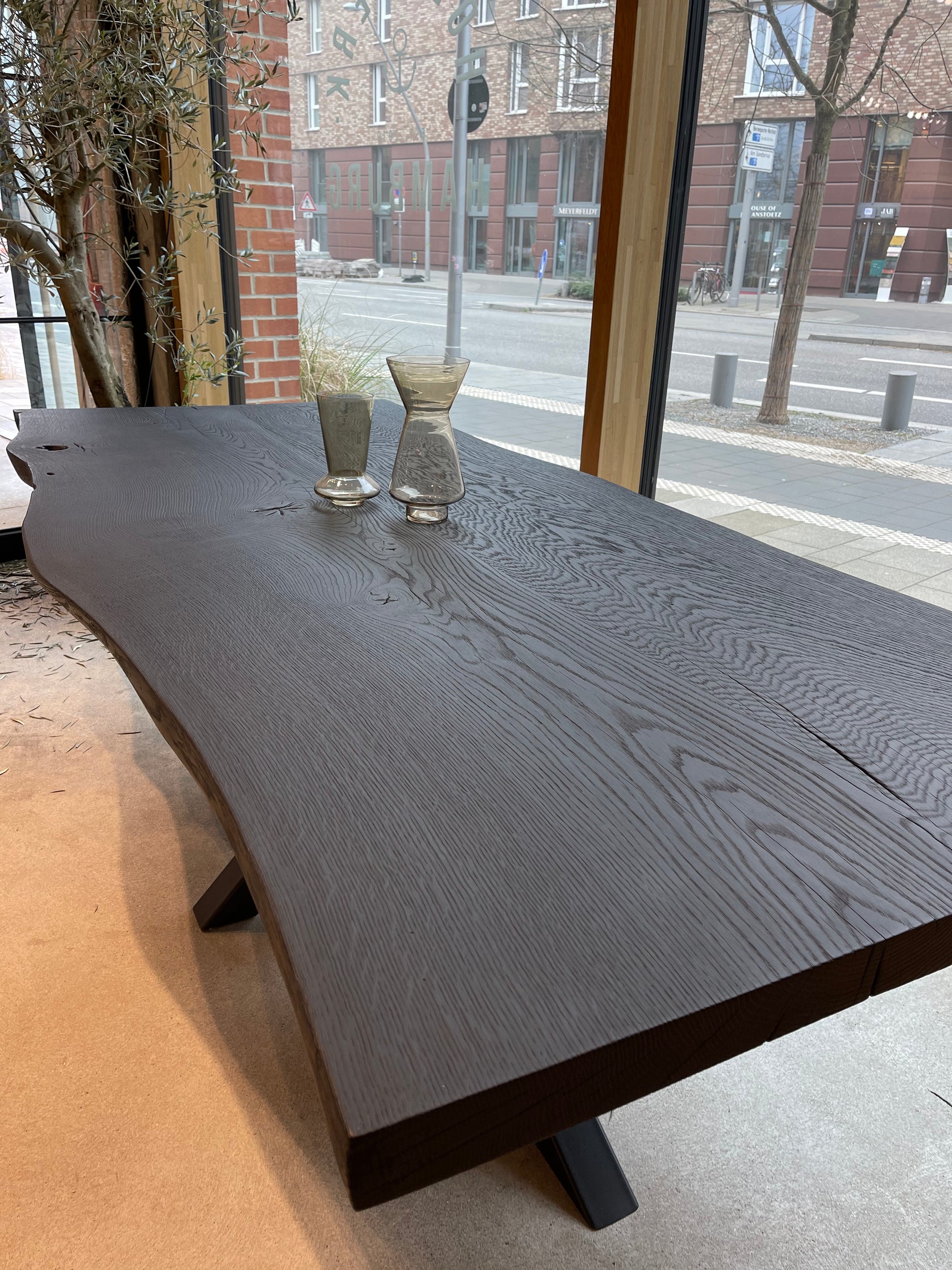 In der Hamburger HafenCity – voll mit Massivholztischen, Platten und persönlicher Beratung im Atelier-Flair. Live vor Ort oder per Video.