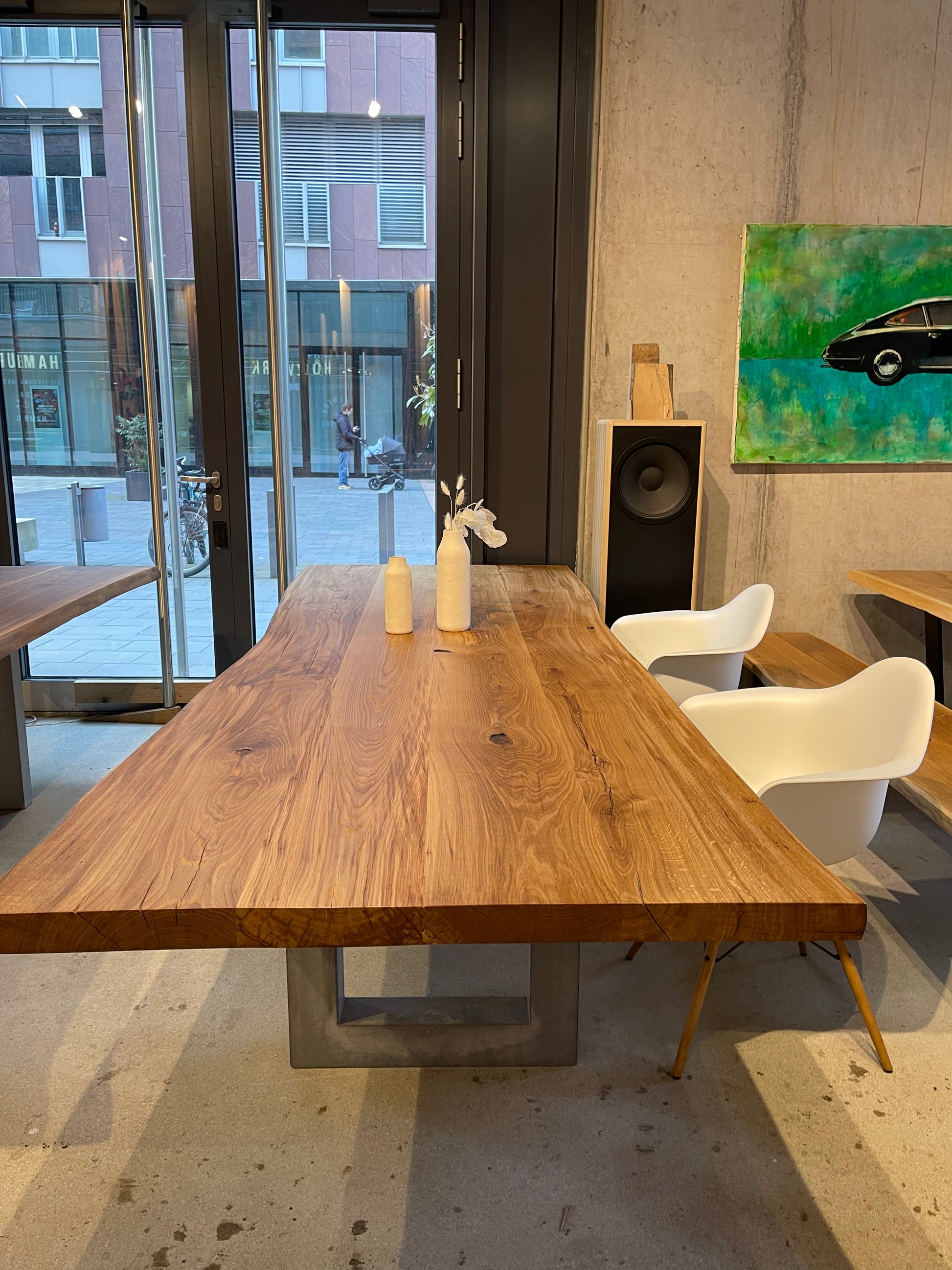 In der Hamburger HafenCity – voll mit Massivholztischen, Platten und persönlicher Beratung im Atelier-Flair. Live vor Ort oder per Video.