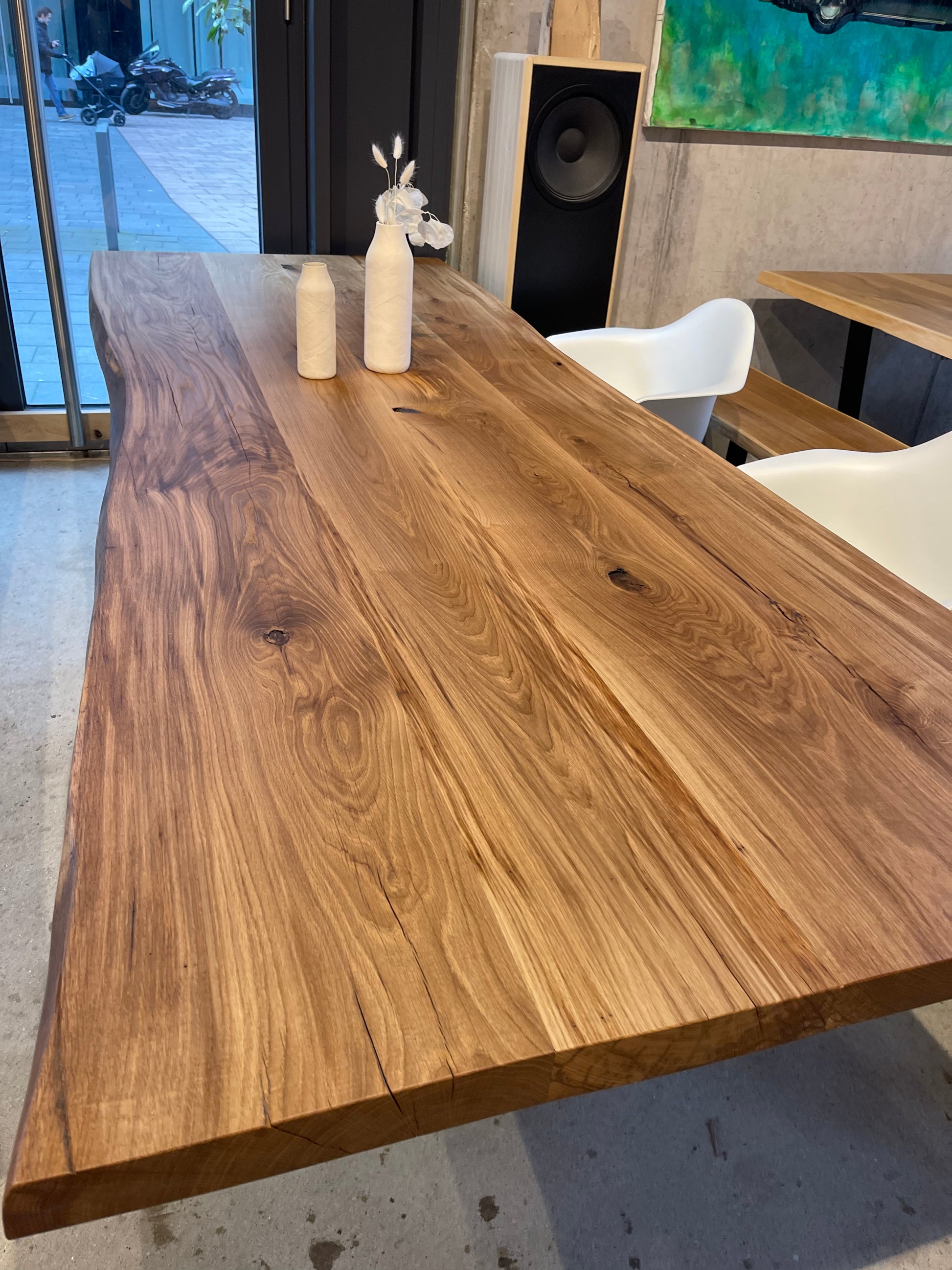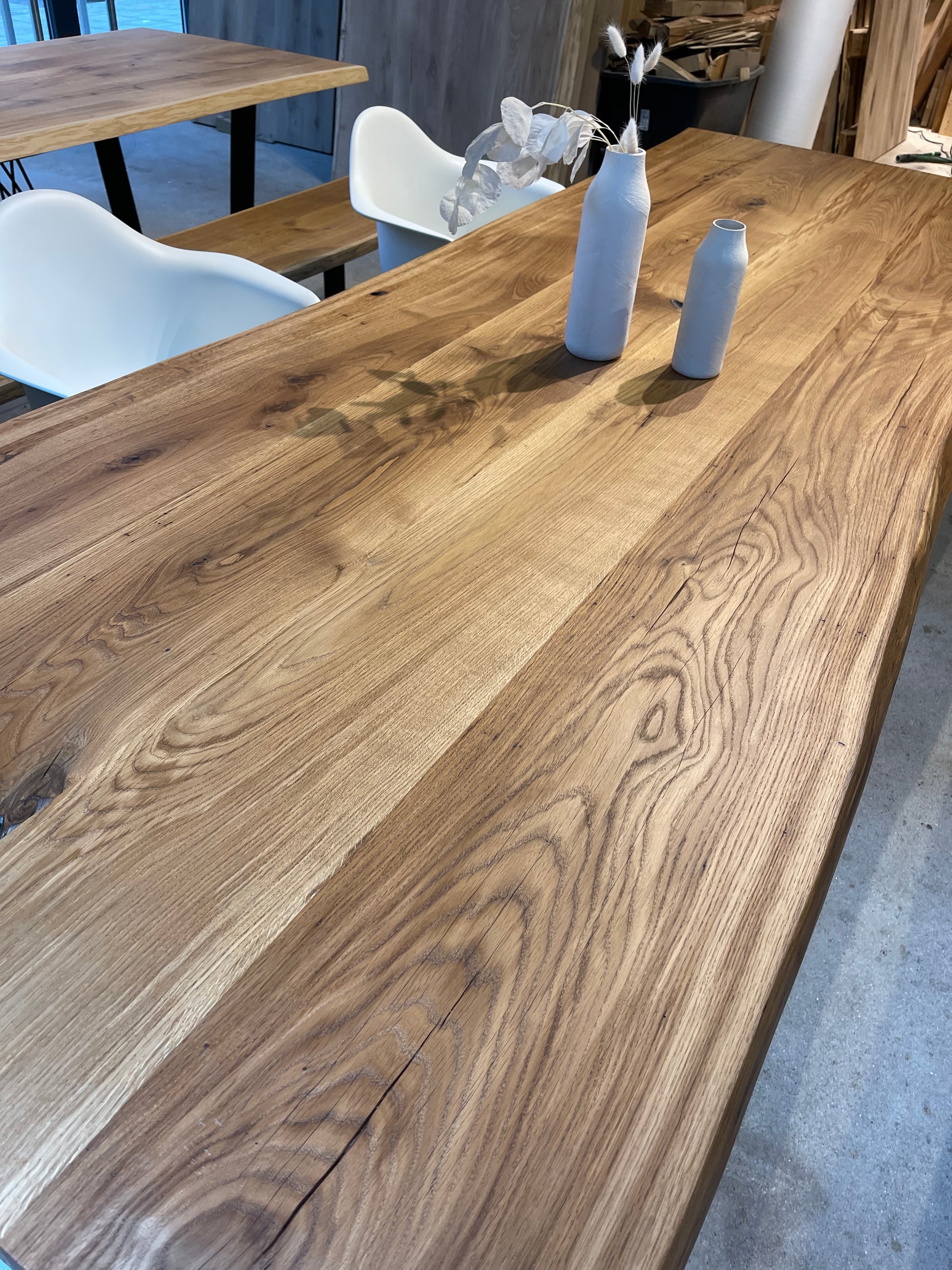 In unserer Ausstellung findest du über 50 sofort verfügbare Massivholztische sowie mehr als 200 Tischplatten zur Auswahl.