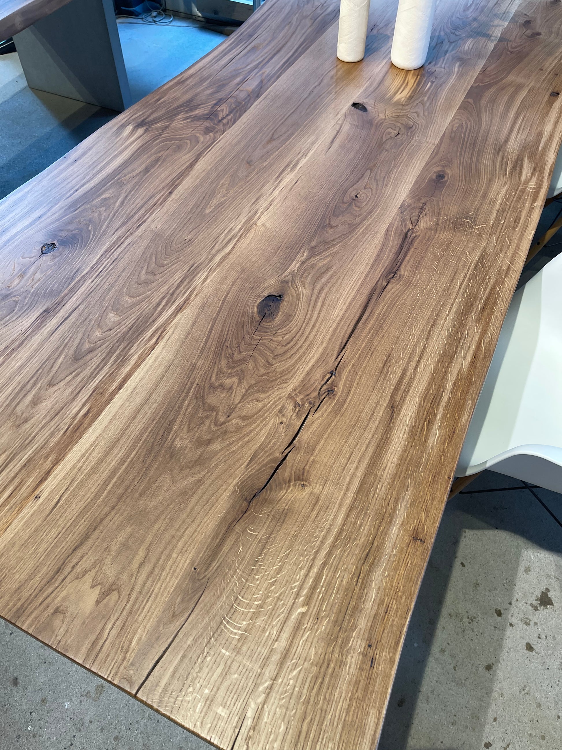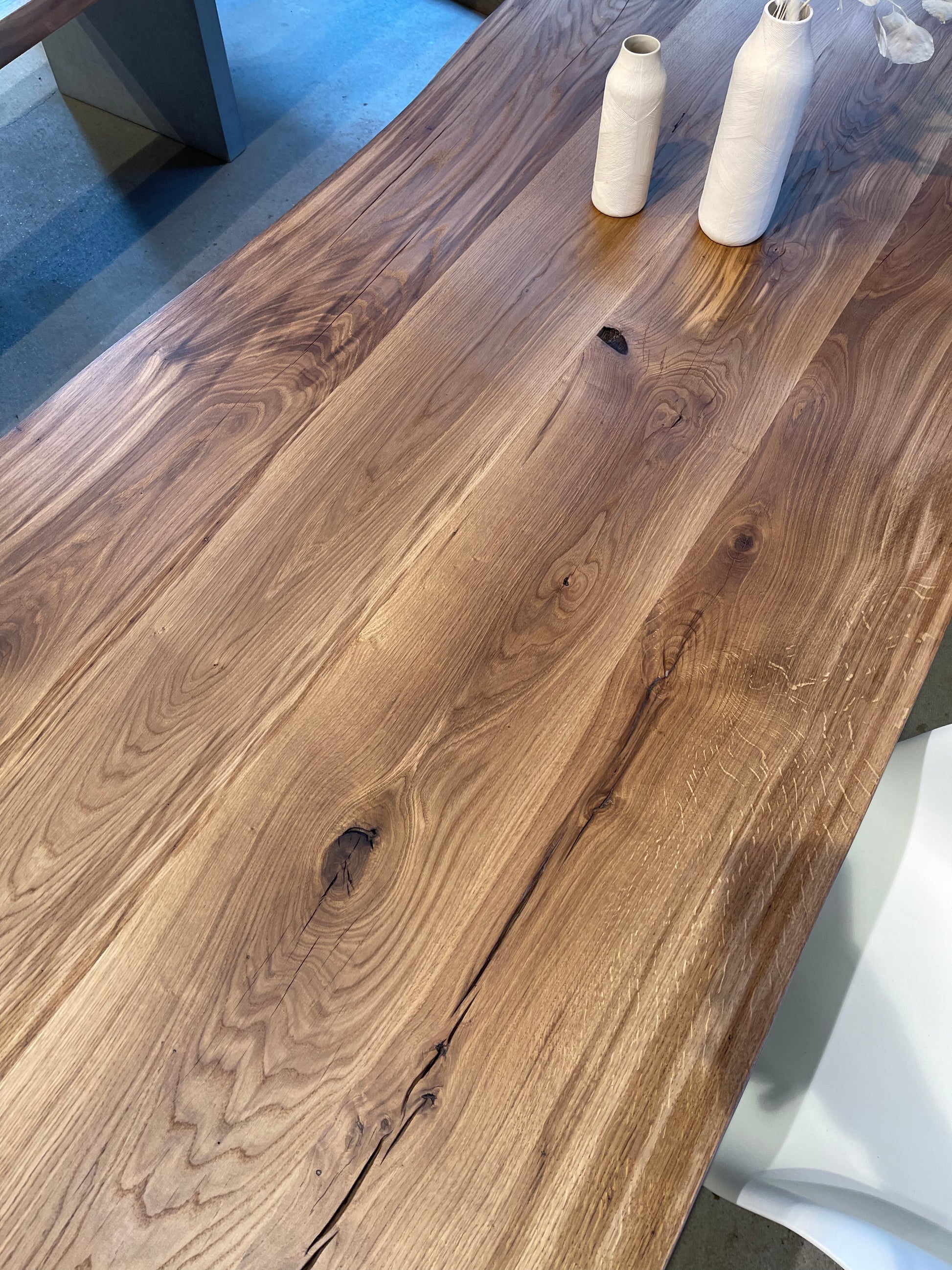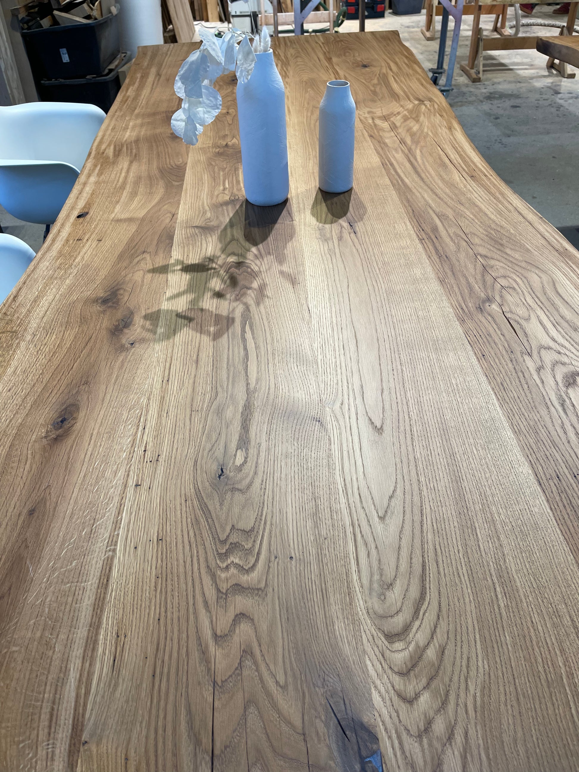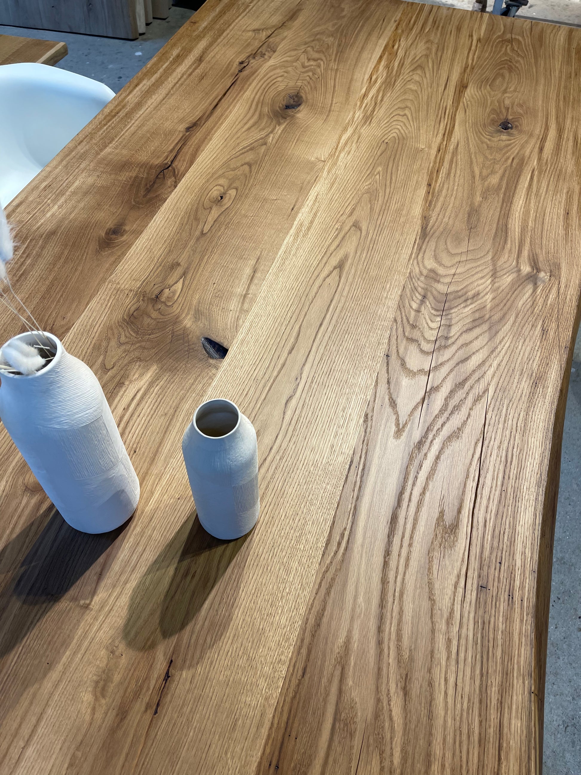 Massivholztisch aus Eichenholz mit natürlicher Baumkante