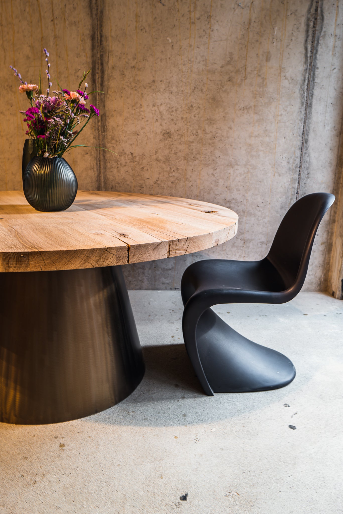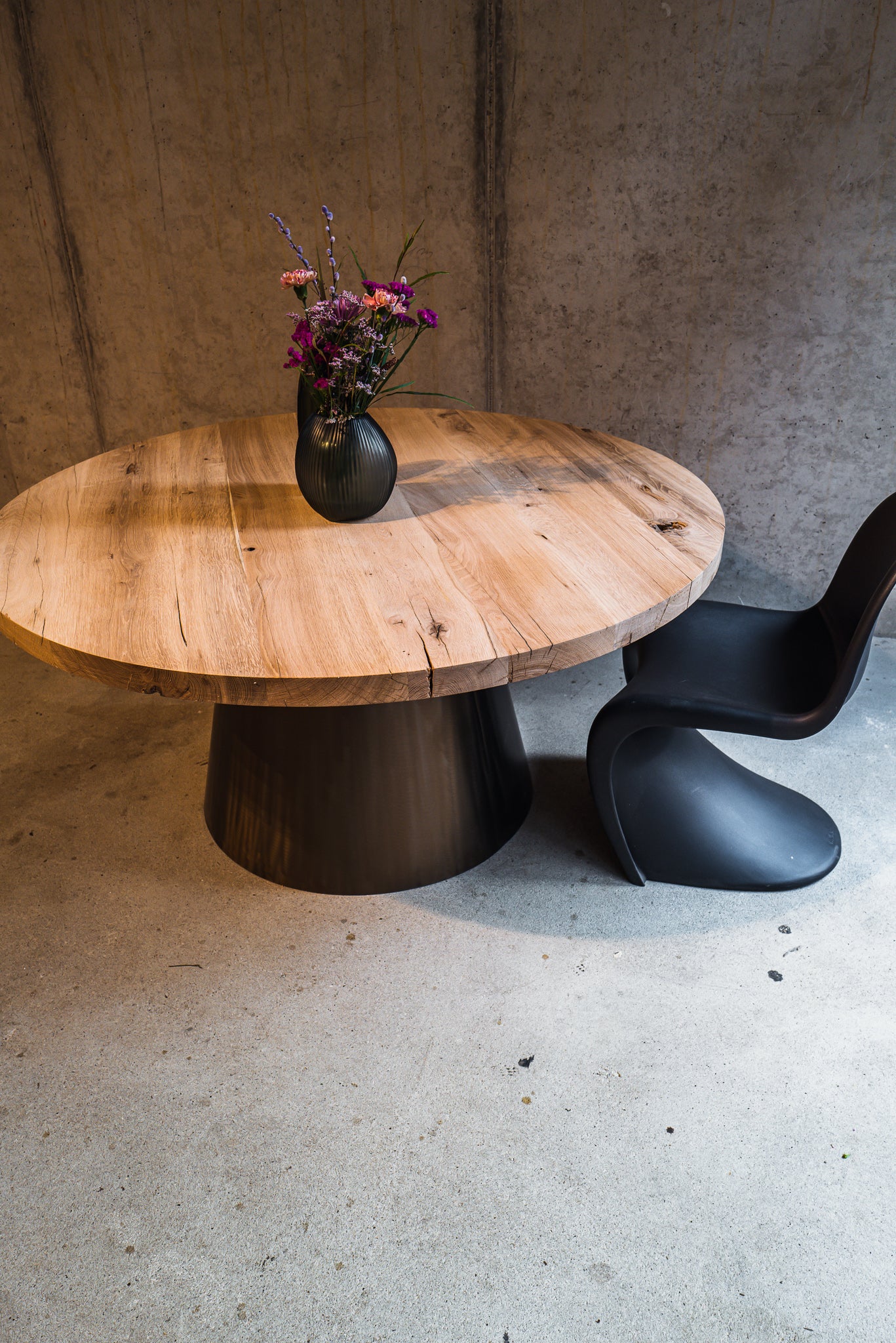 Esstisch rund Massivholz nach Maß mit Mittelfuss aus Stahl