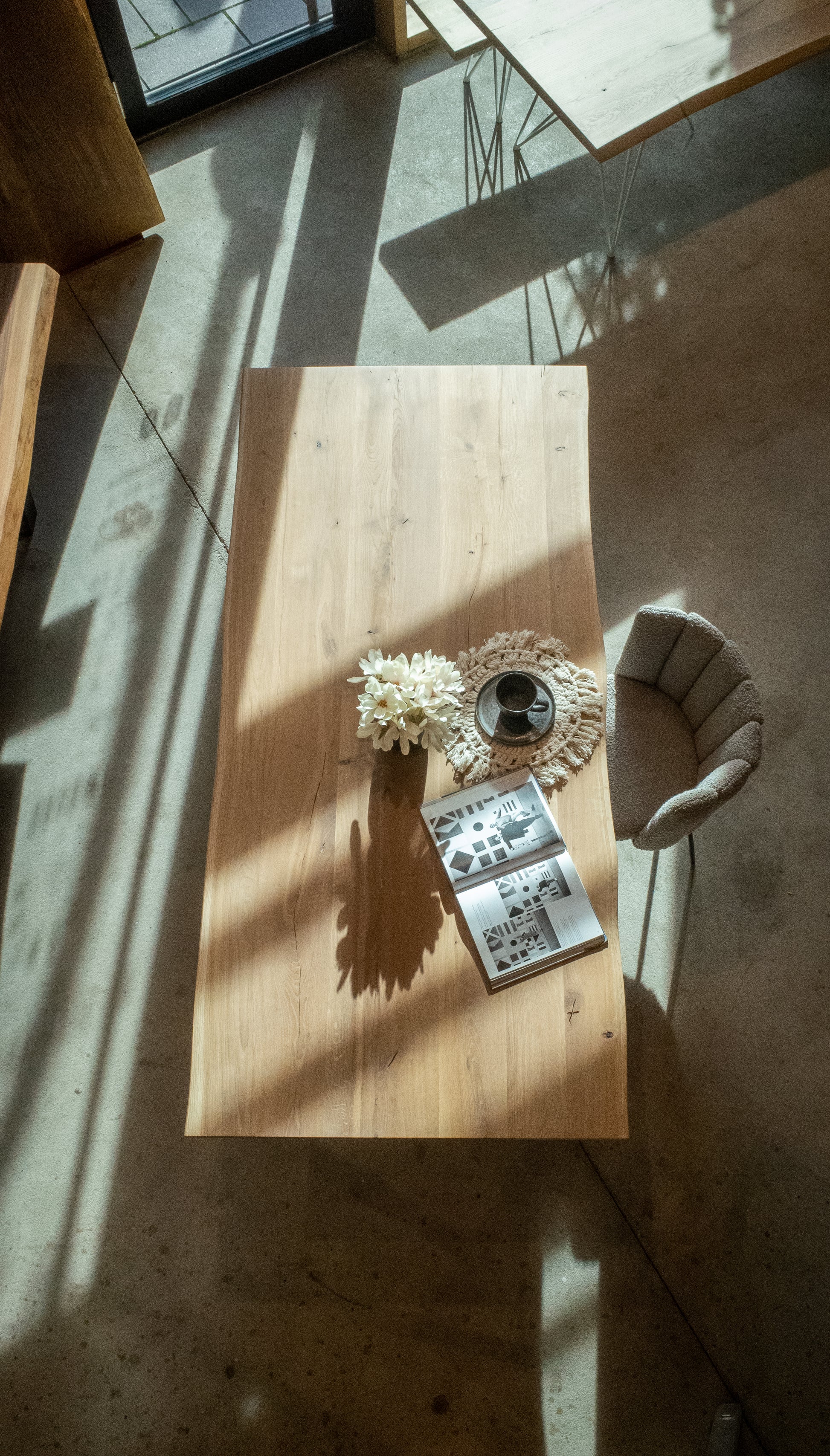 Unser Holz beziehen wir aus nachhaltiger Forstwirtschaft in Europa. Jede Tischplatte stammt aus einer massiven Stammbohle, wodurch jedes Stück ein Unikat mit eigener Geschichte ist.