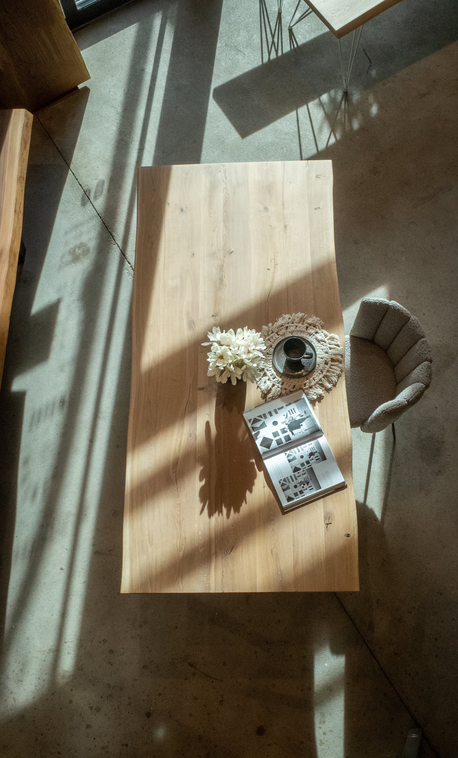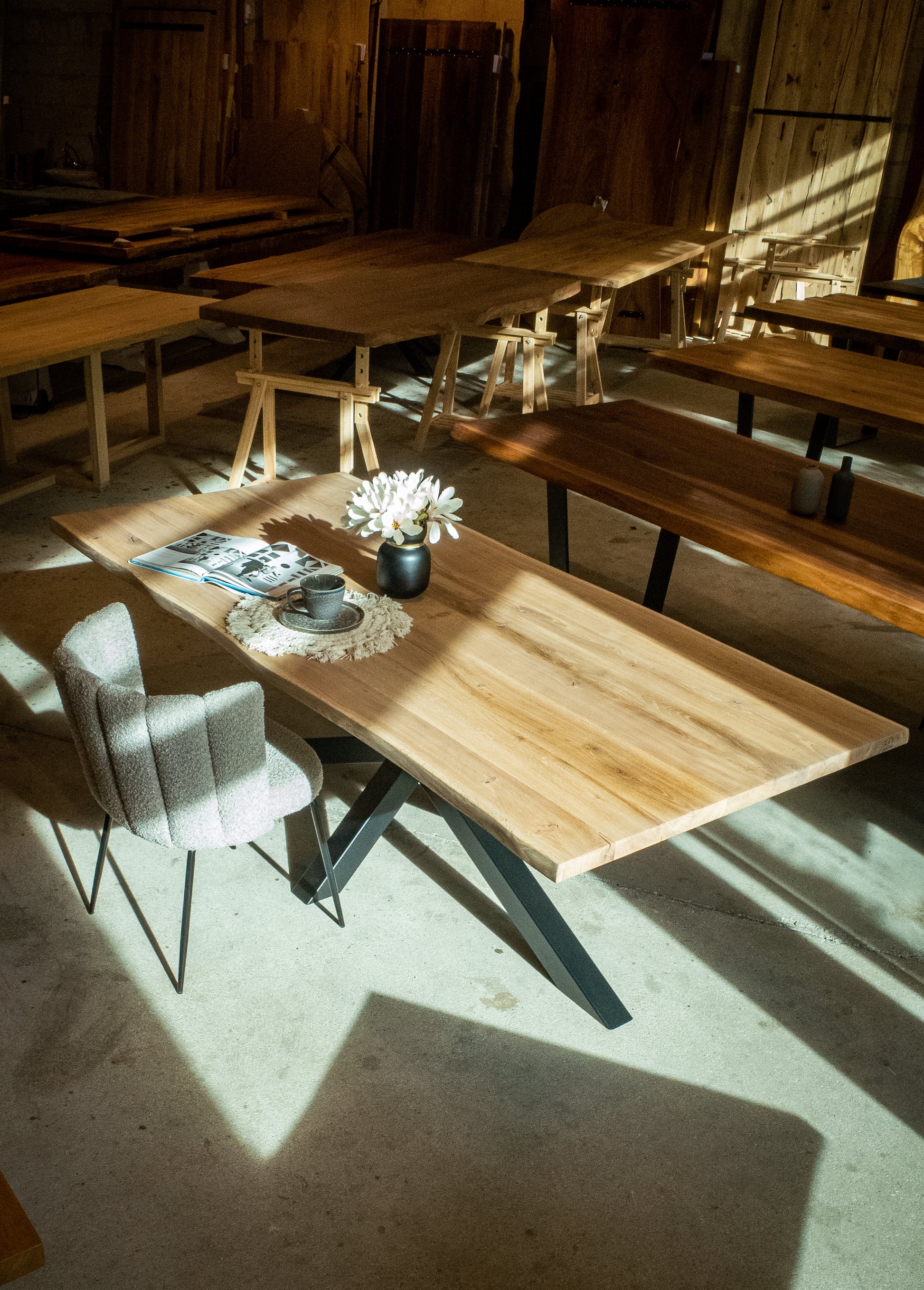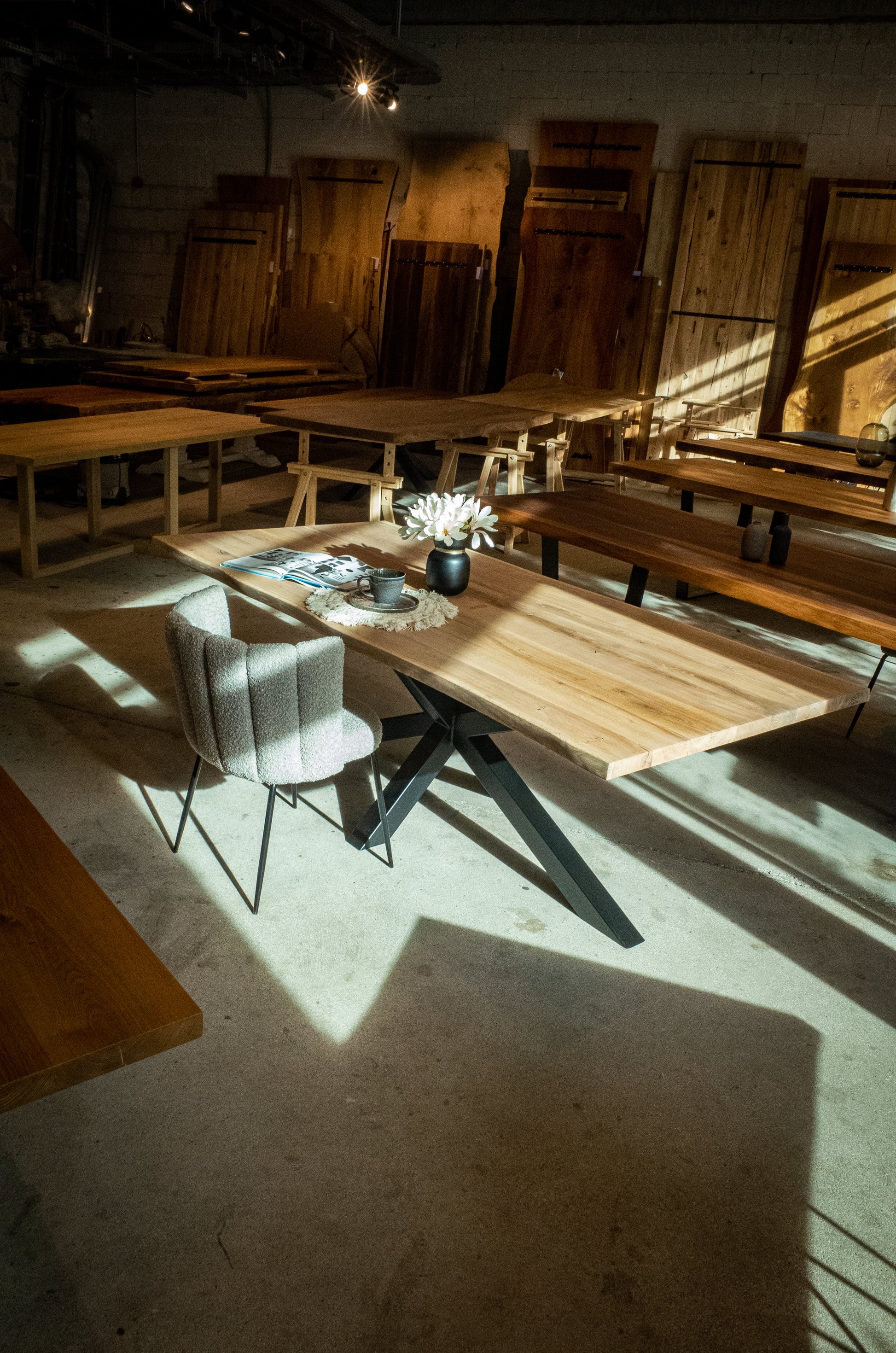 In unserer Ausstellung findest du über 50 sofort verfügbare Massivholztische sowie mehr als 200 Tischplatten zur Auswahl.