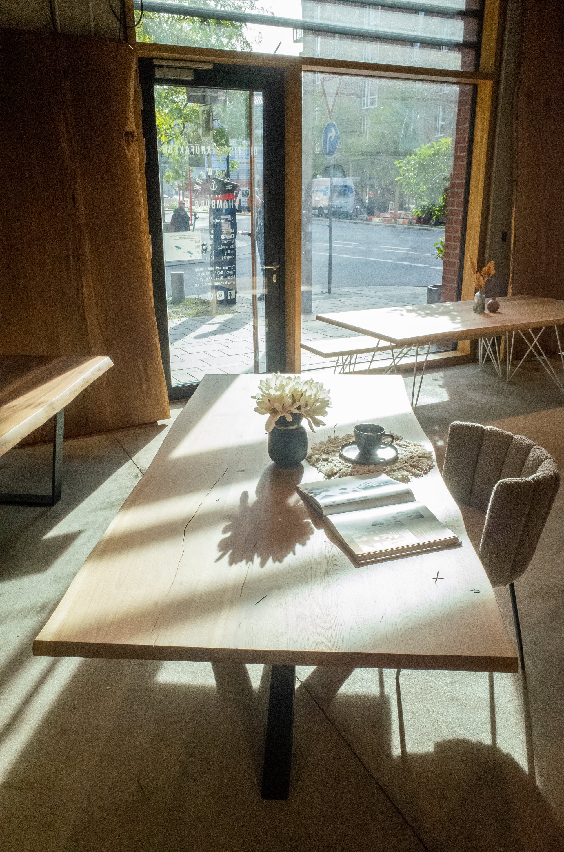 In der Hamburger HafenCity – voll mit Massivholztischen, Platten und persönlicher Beratung im Atelier-Flair. Live vor Ort oder per Video.