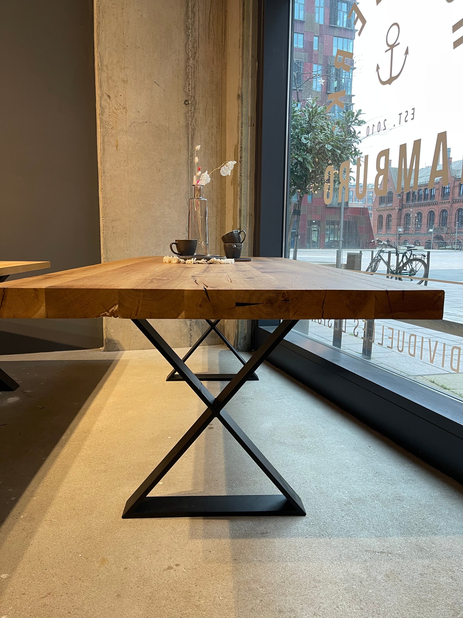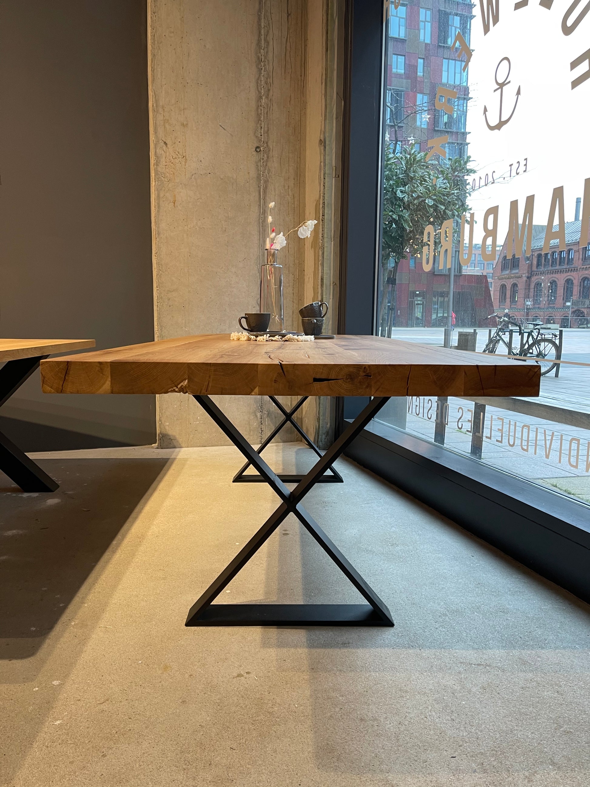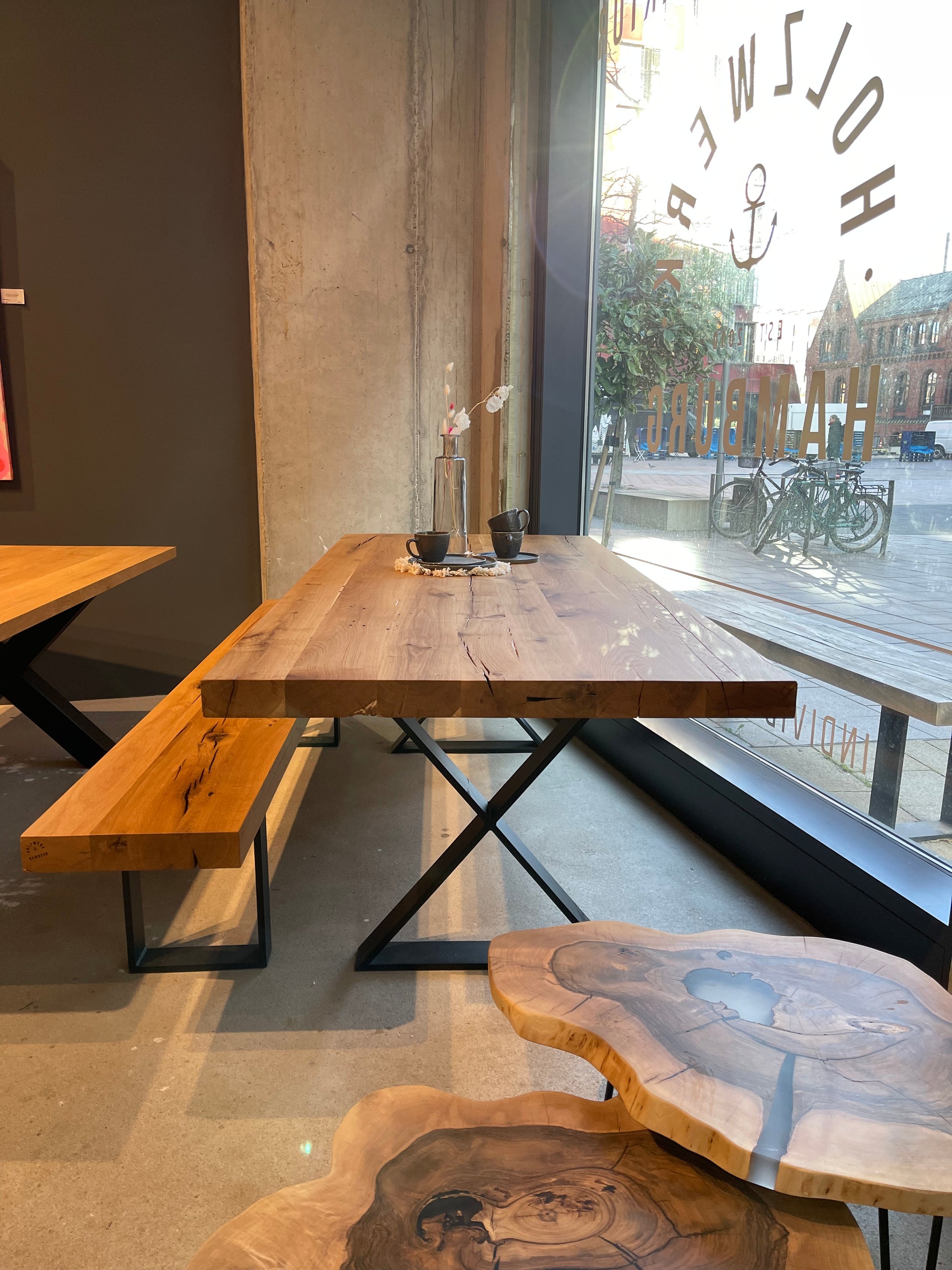 In der Hamburger HafenCity – voll mit Massivholztischen, Platten und persönlicher Beratung im Atelier-Flair. Live vor Ort oder per Video.