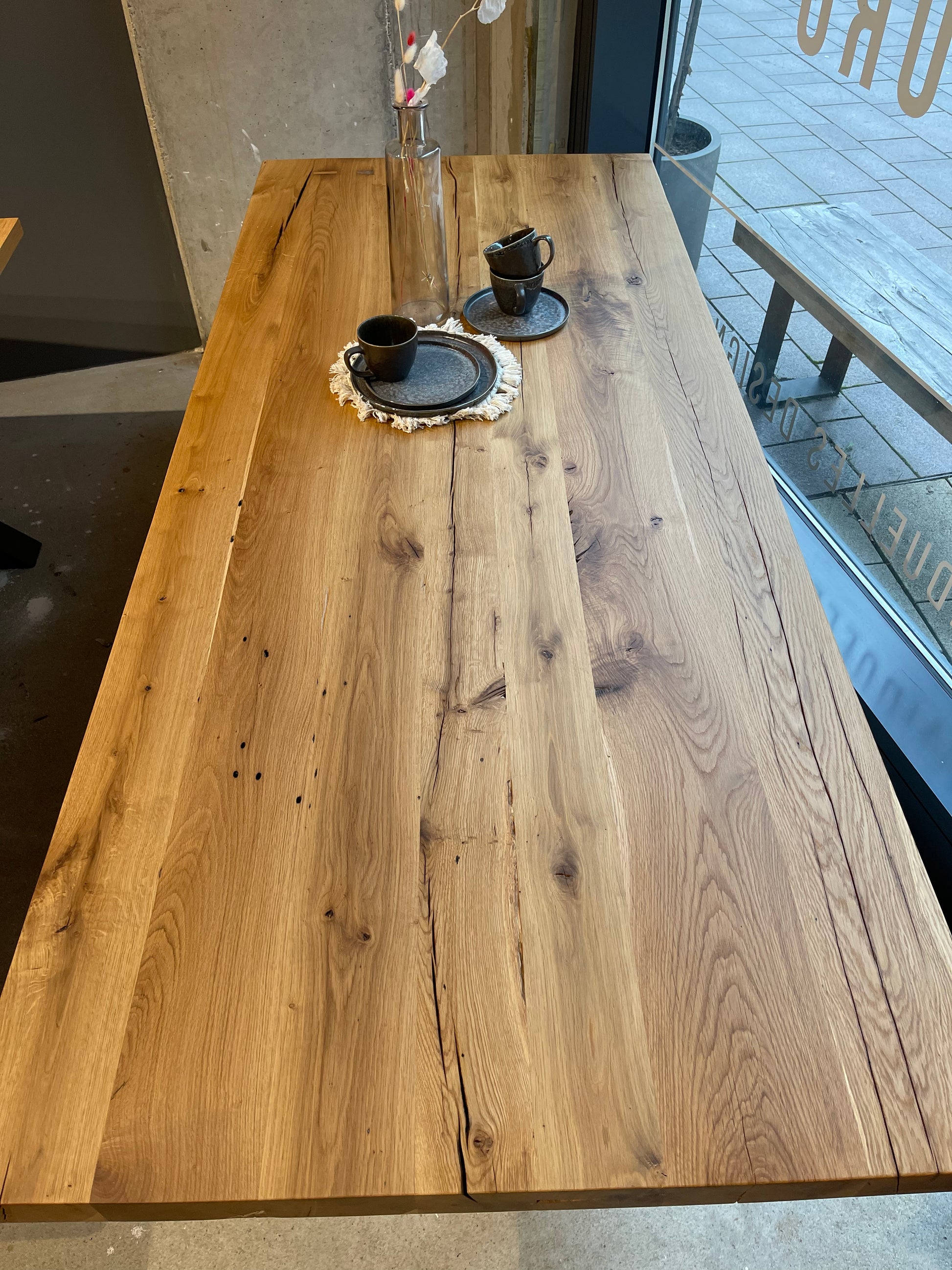 In unserer Ausstellung findest du über 50 sofort verfügbare Massivholztische sowie mehr als 200 Tischplatten zur Auswahl.