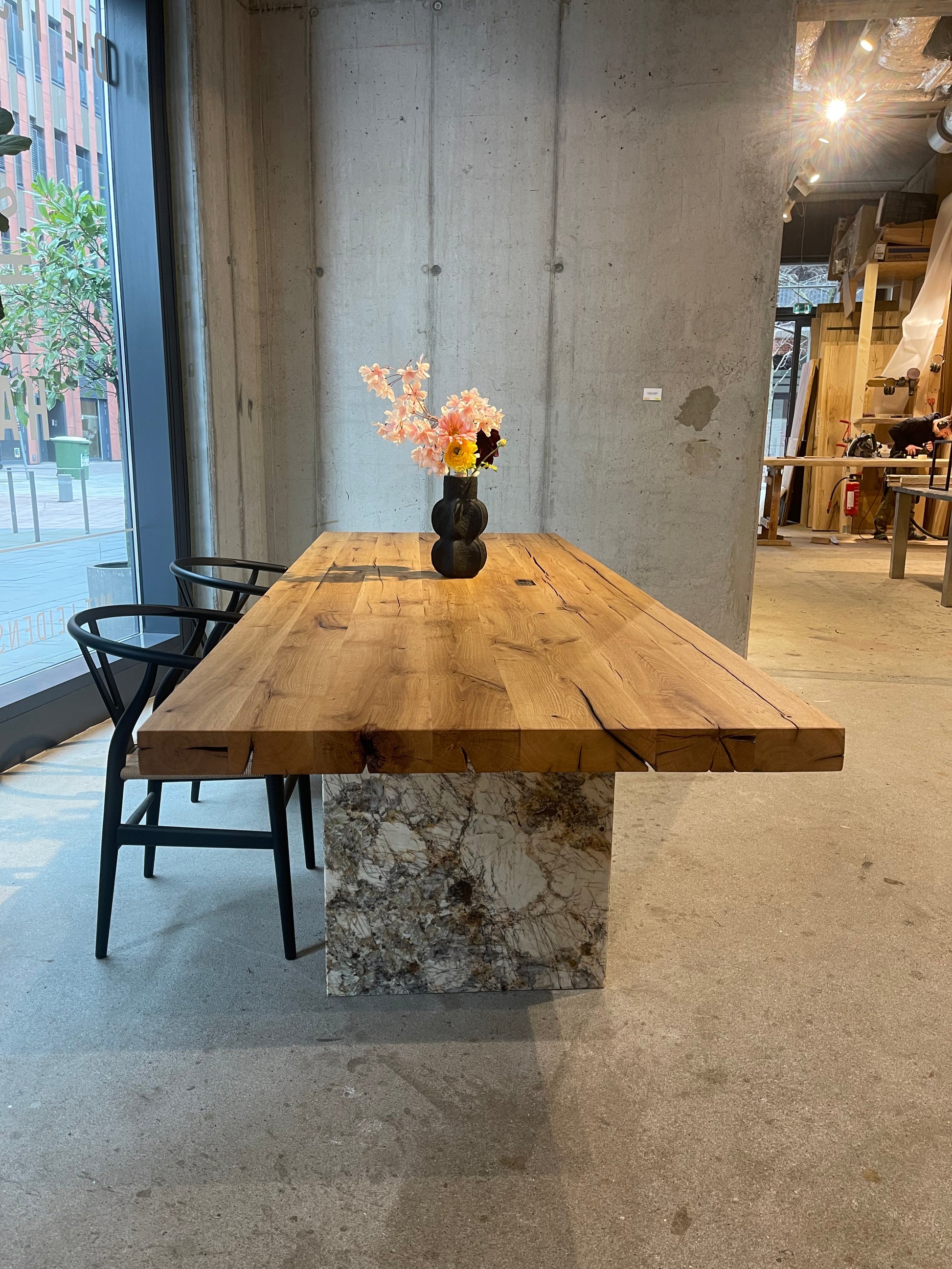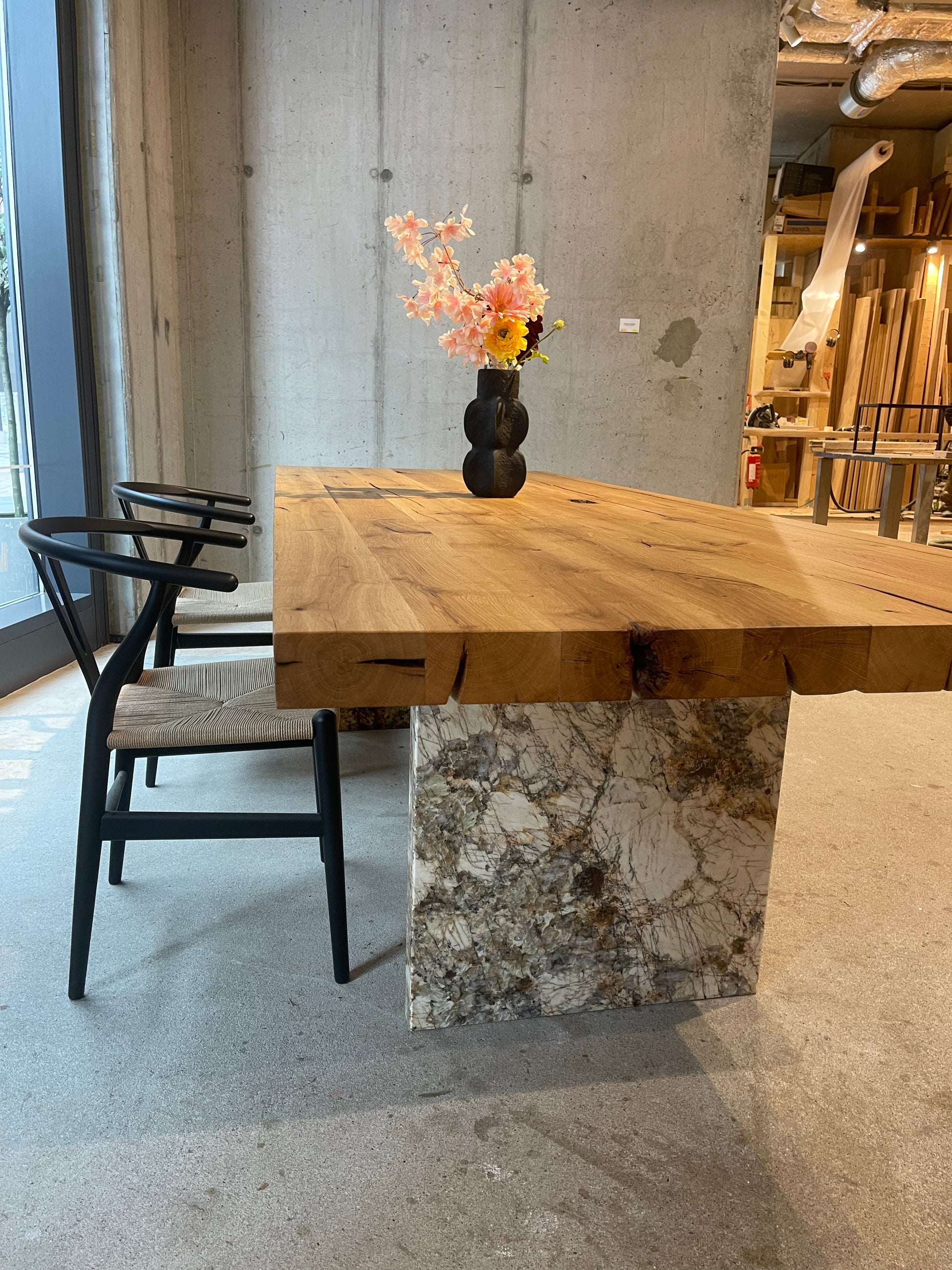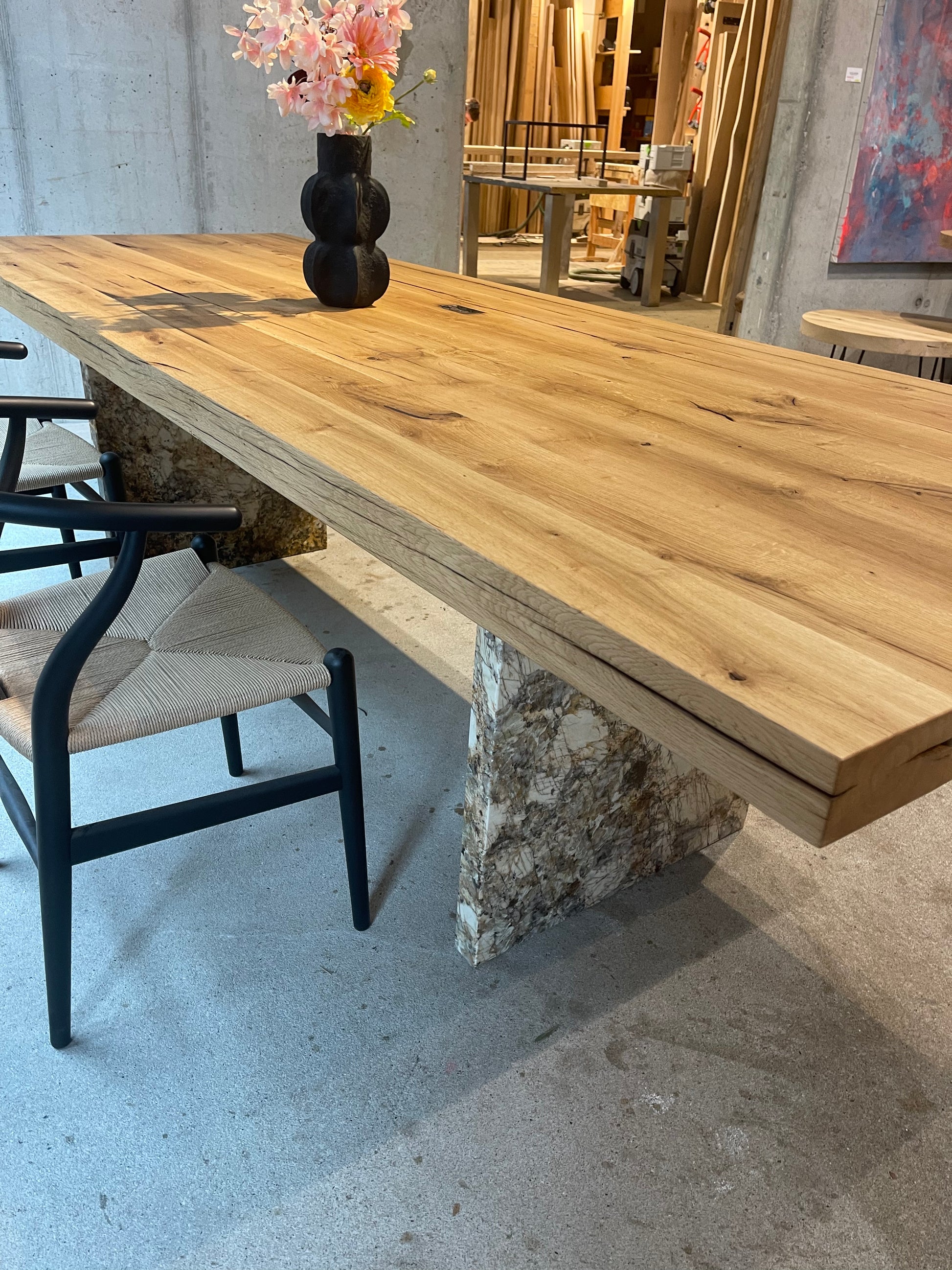 Esstisch aus massiver Eiche und hochwertigem Naturstein
